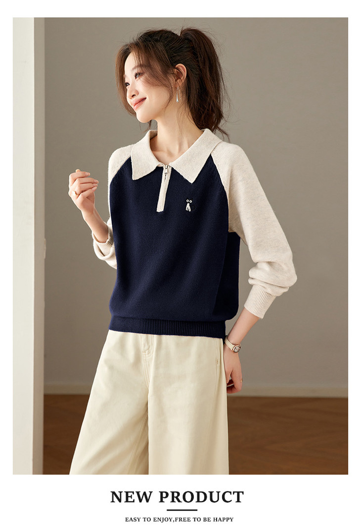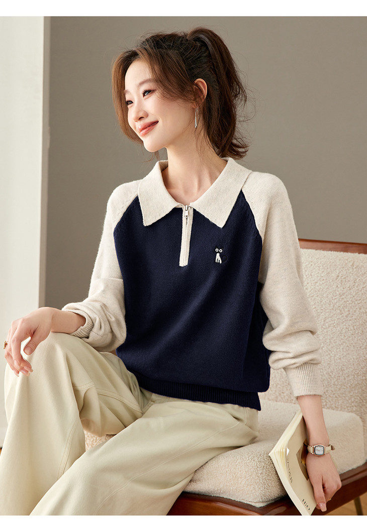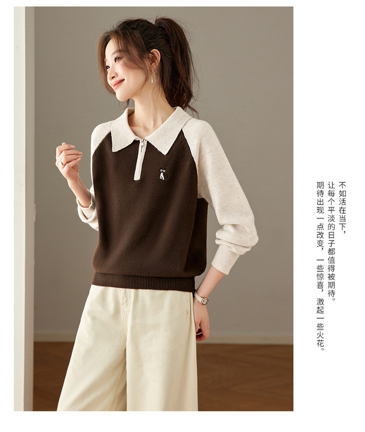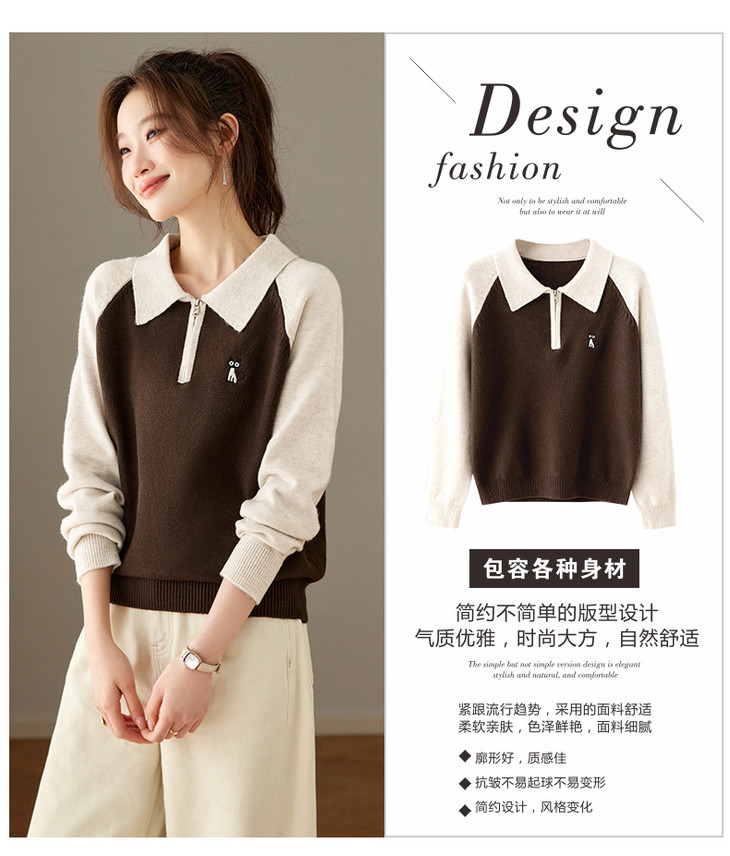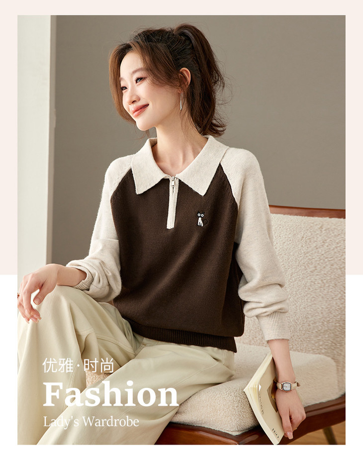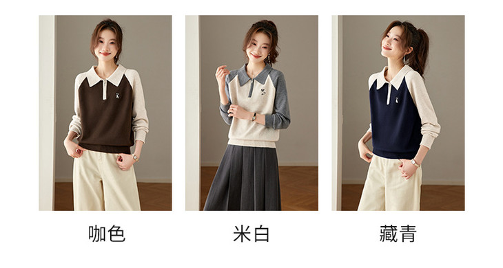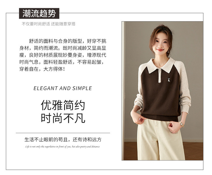 撞色POLO领针织毛衣,厚款职业气质妈妈保暖上衣CC-27-25270