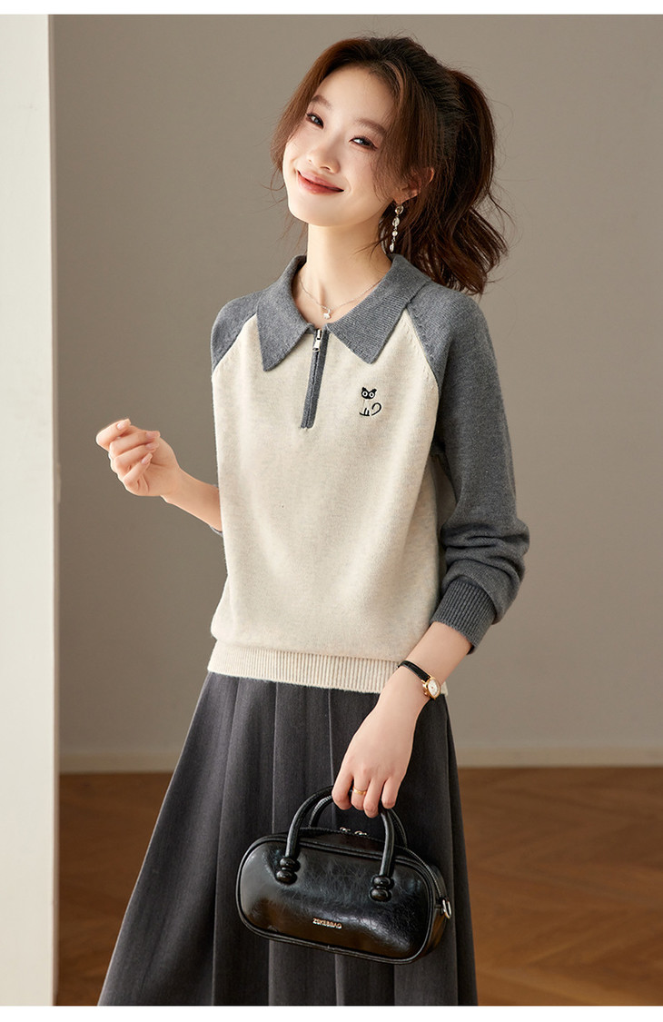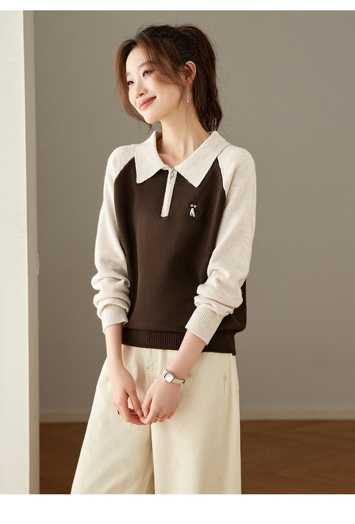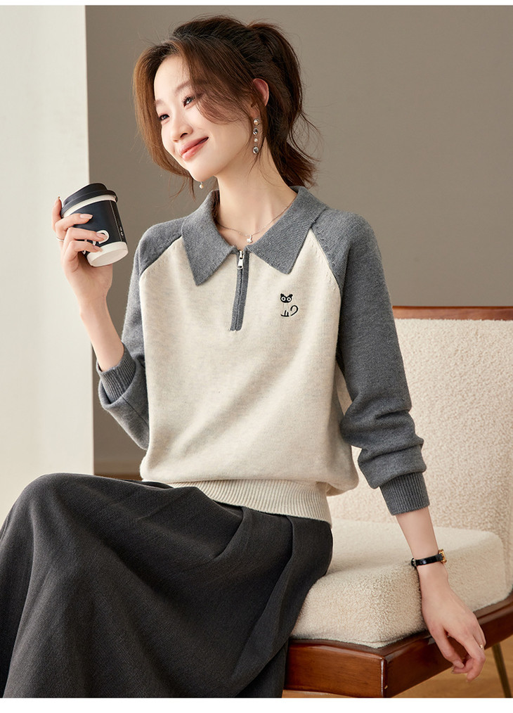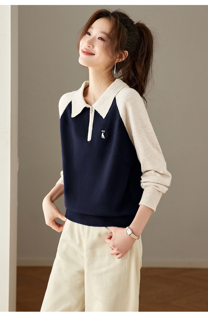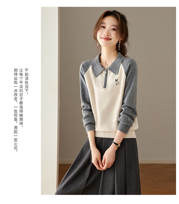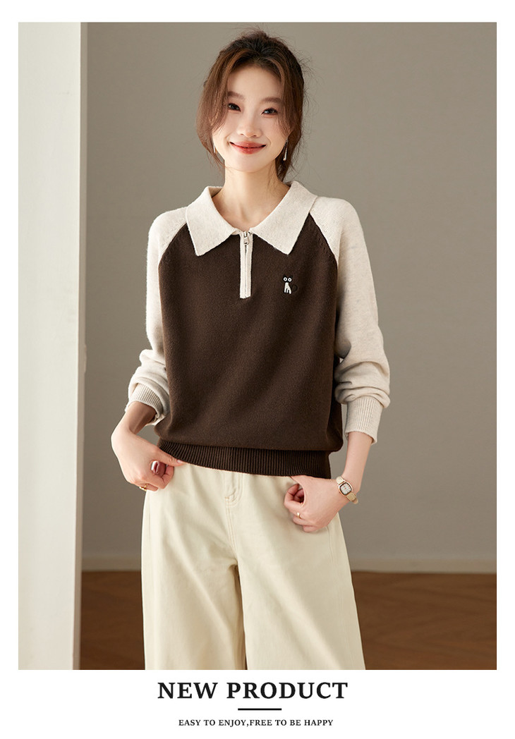 撞色POLO领针织毛衣,厚款职业气质妈妈保暖上衣CC-27-25270