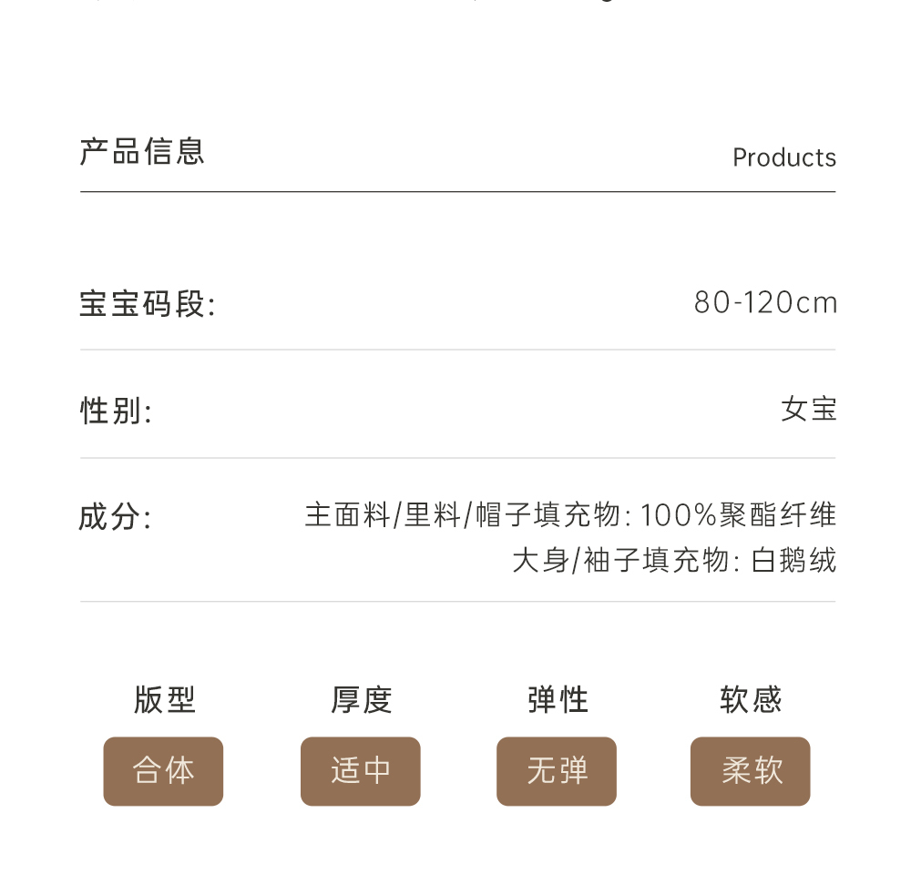 【商场同款】英氏儿童羽绒服三防保暖女童羽绒服外套秋冬新款