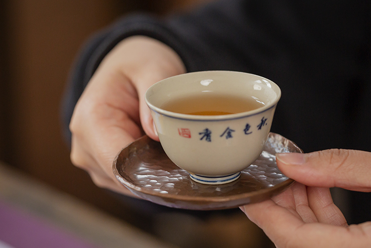 这两款杯托,居下而无华,整体色调古雅沉稳,