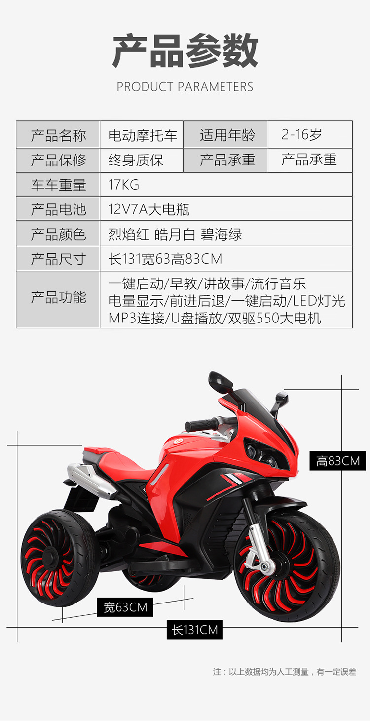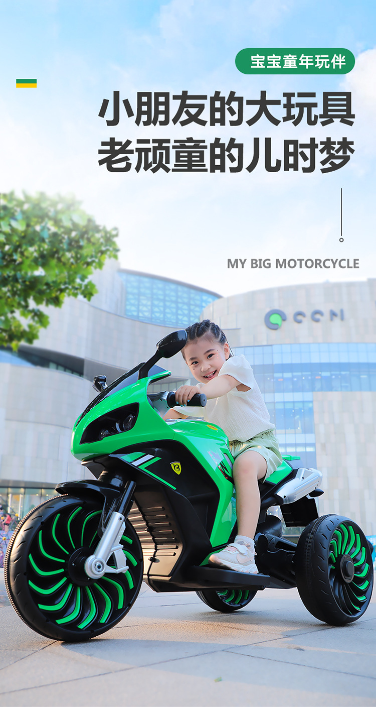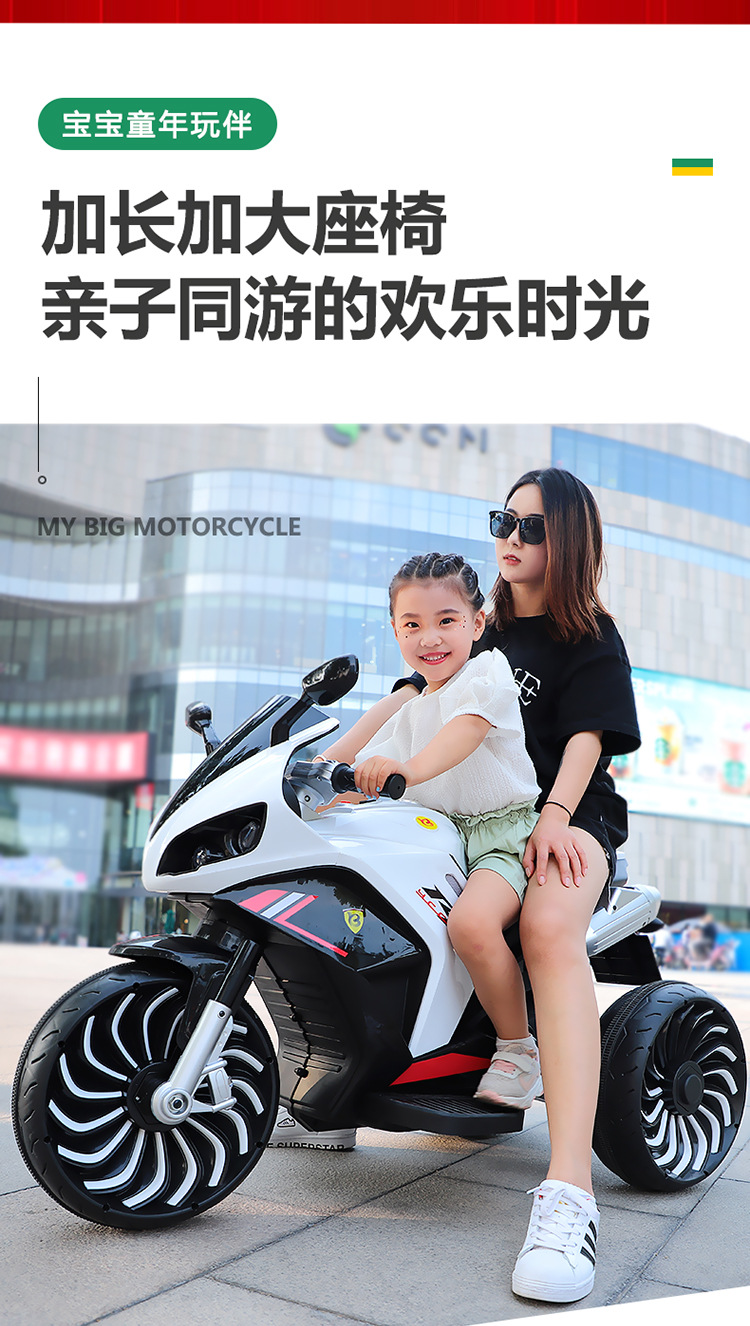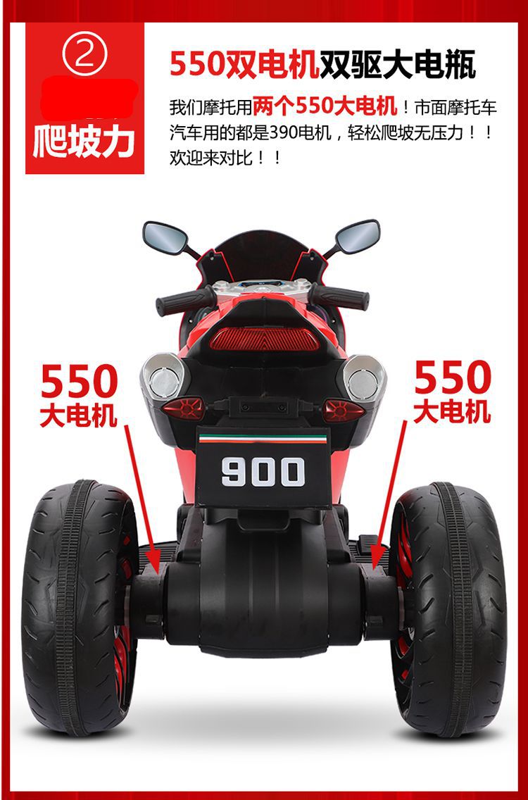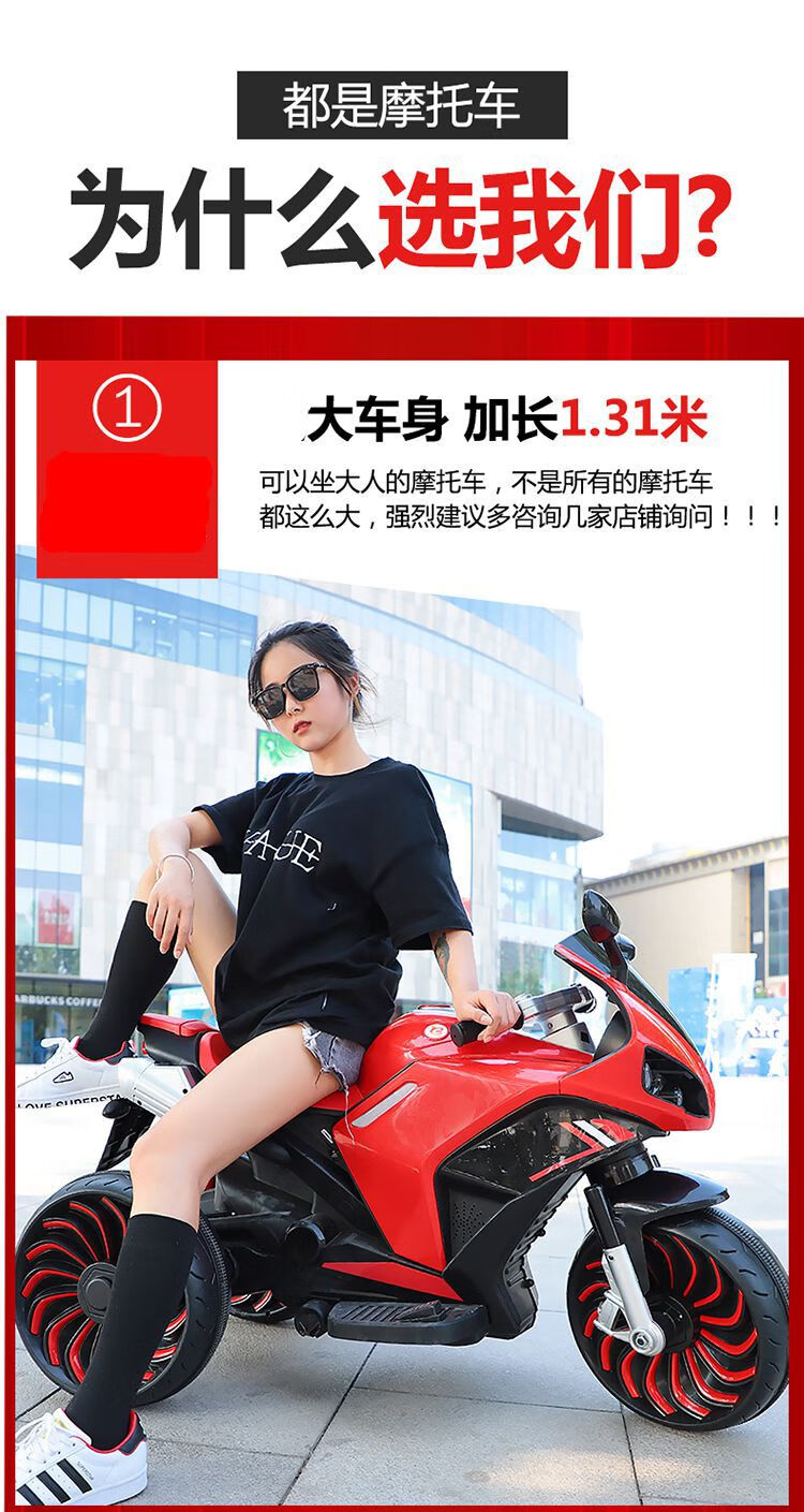 儿童电动摩托车可坐大人男女孩三轮车双人可充电大号玩具车2-10岁双驱动12V7大电瓶