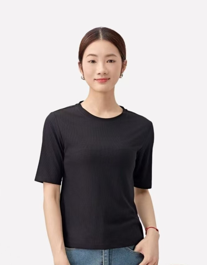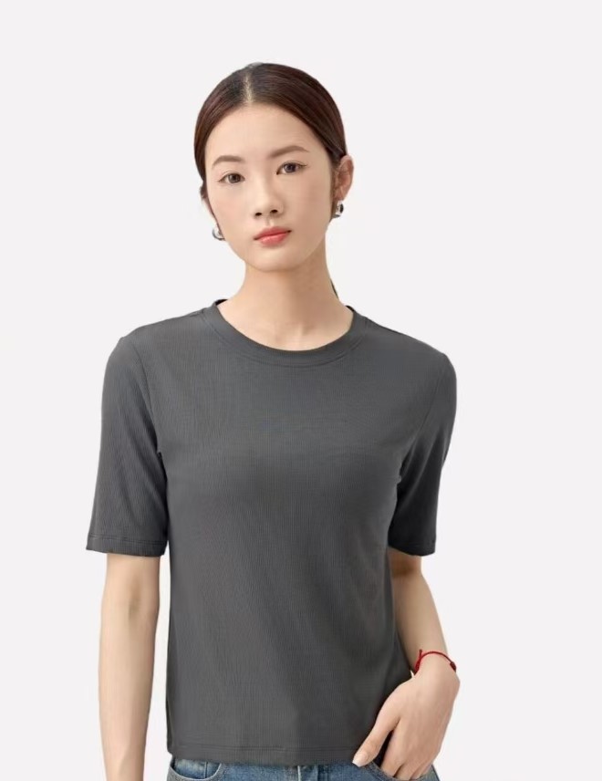 【品名】FF竹纤维女士简约圆领螺纹五分袖8070