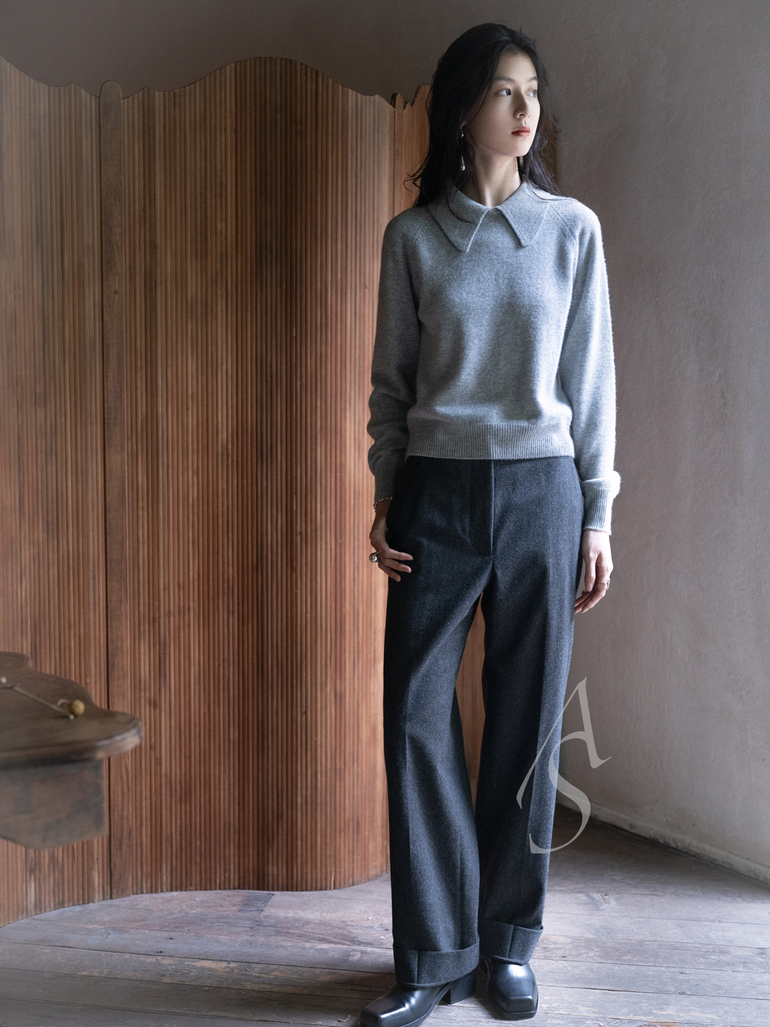 Margaret Howell 25AW 炭灰色fox brothers法兰绒意制直筒裤