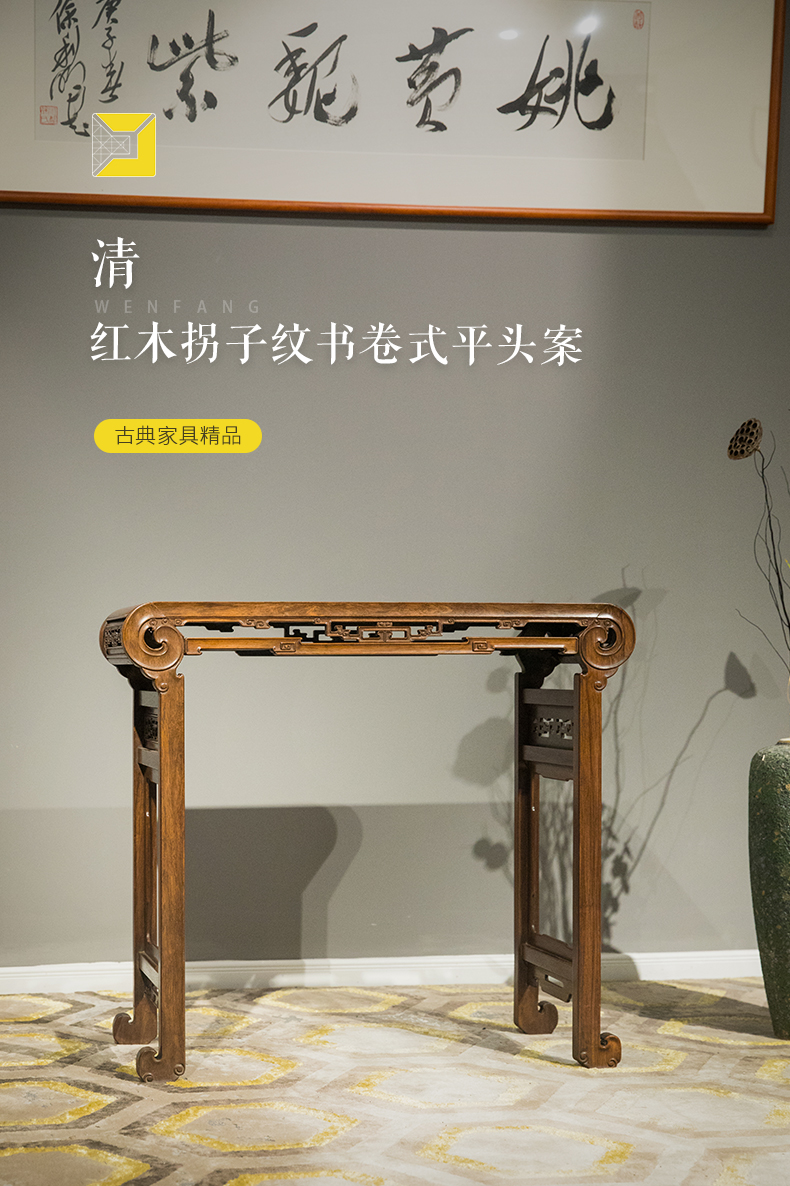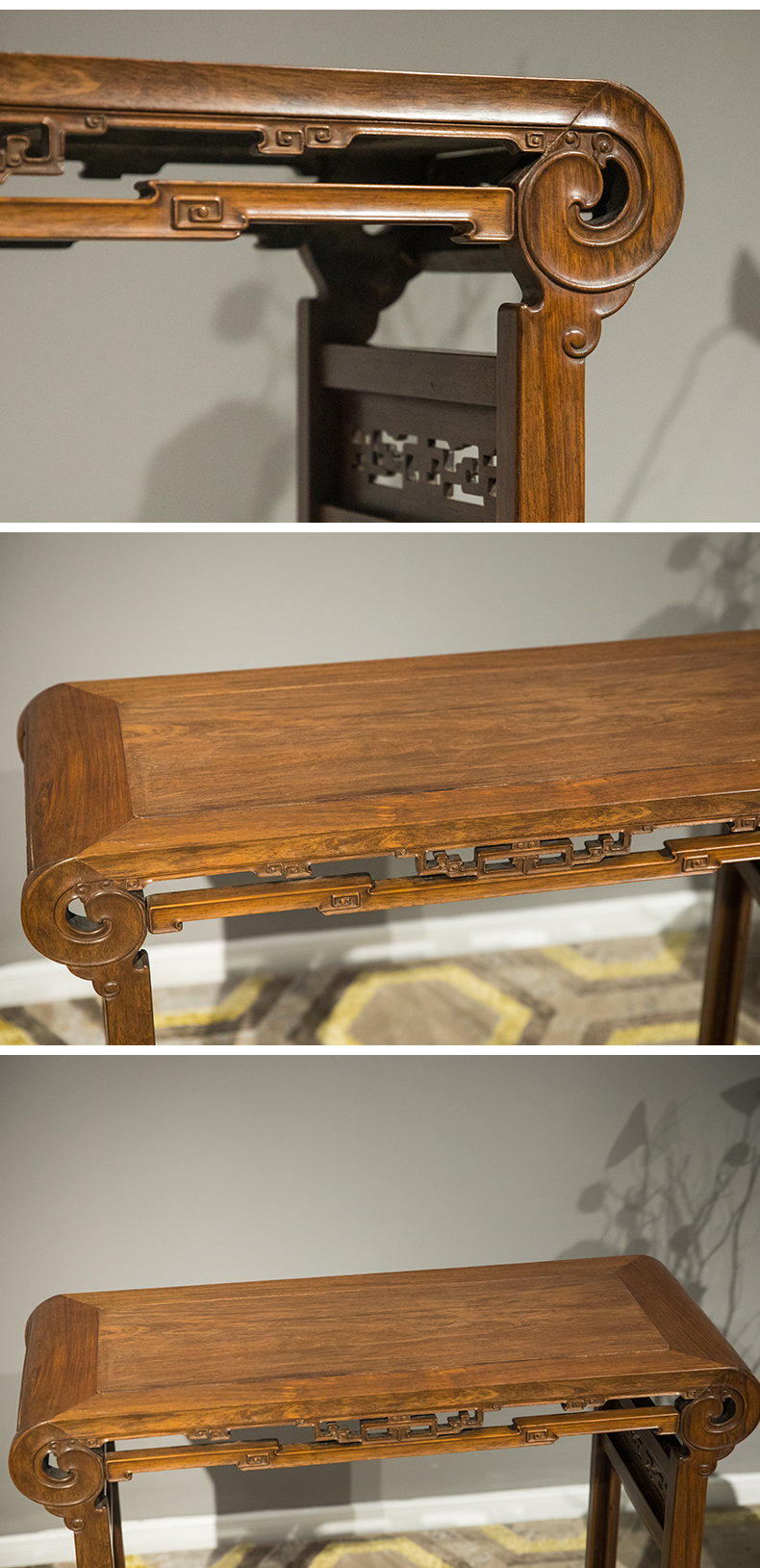 清 黄花梨束腰马蹄腿螭龙纹画桌