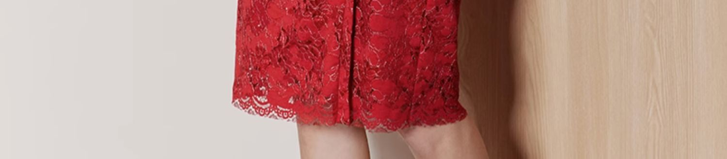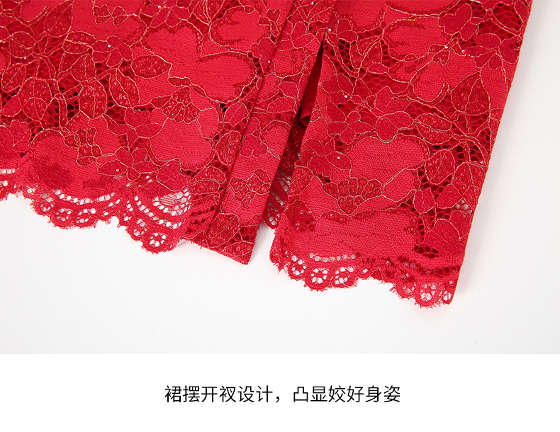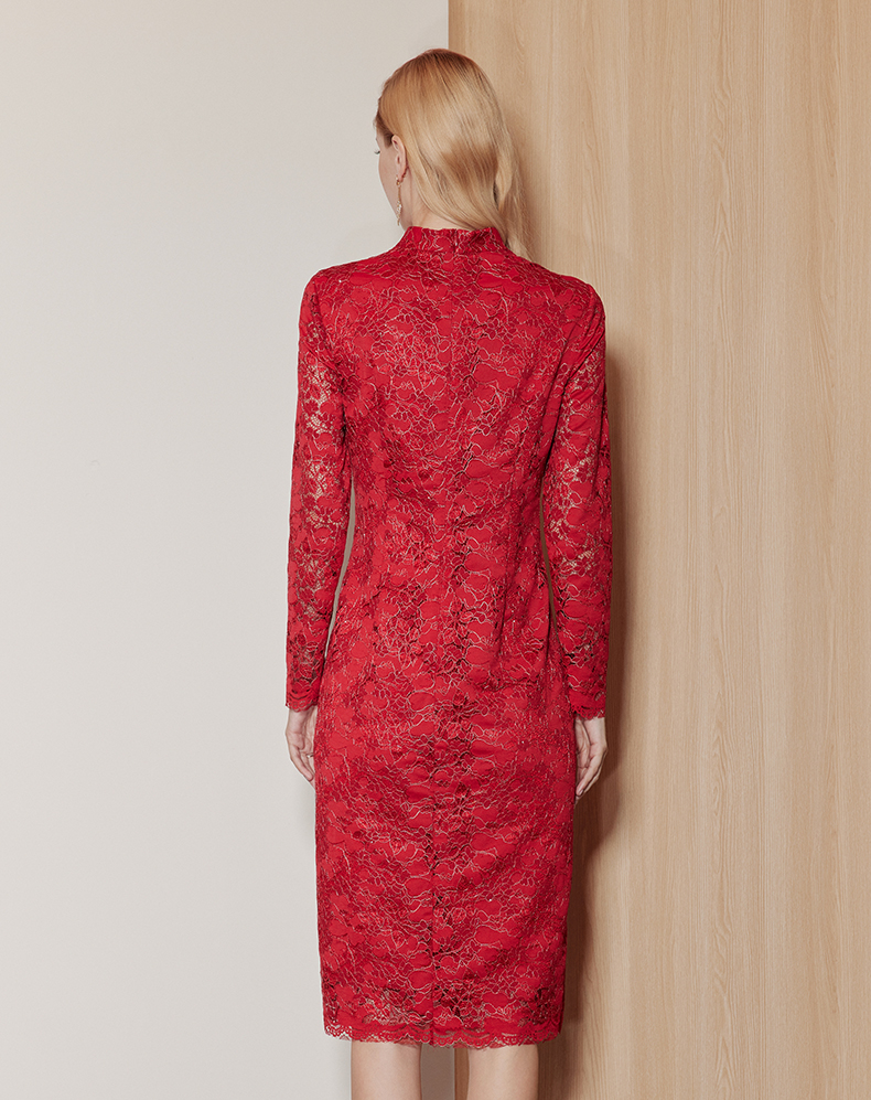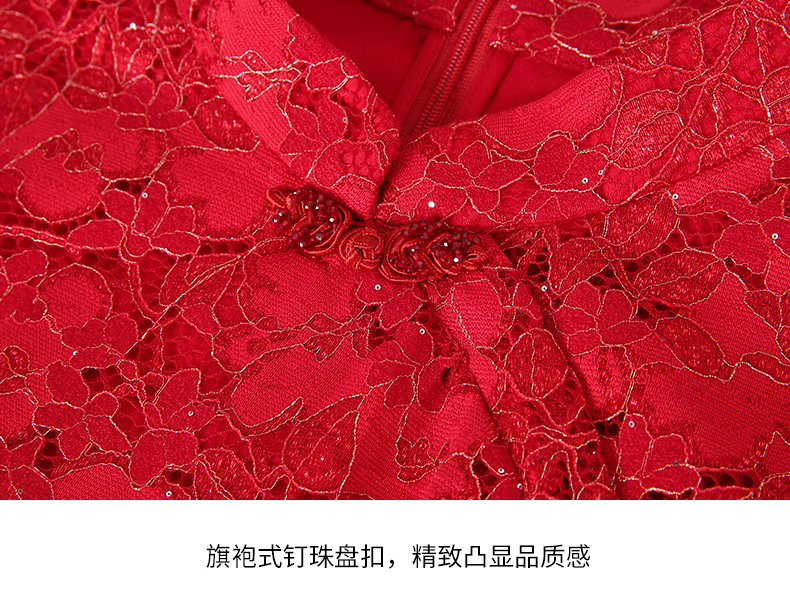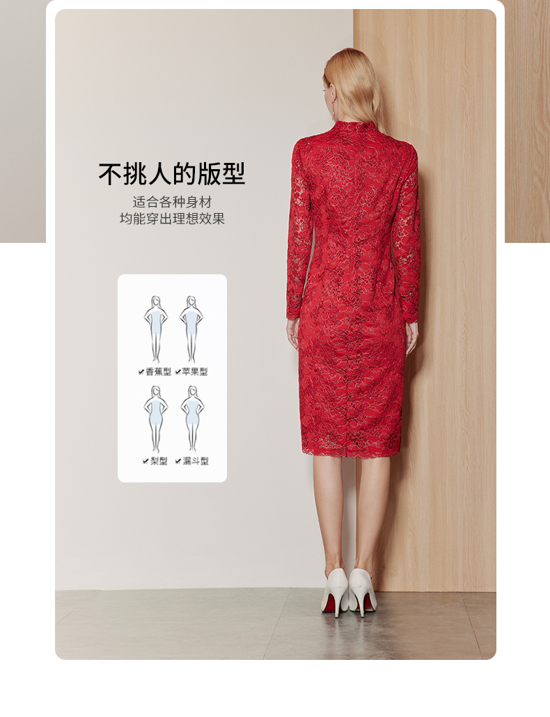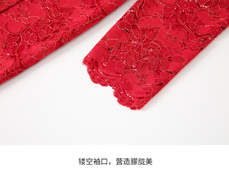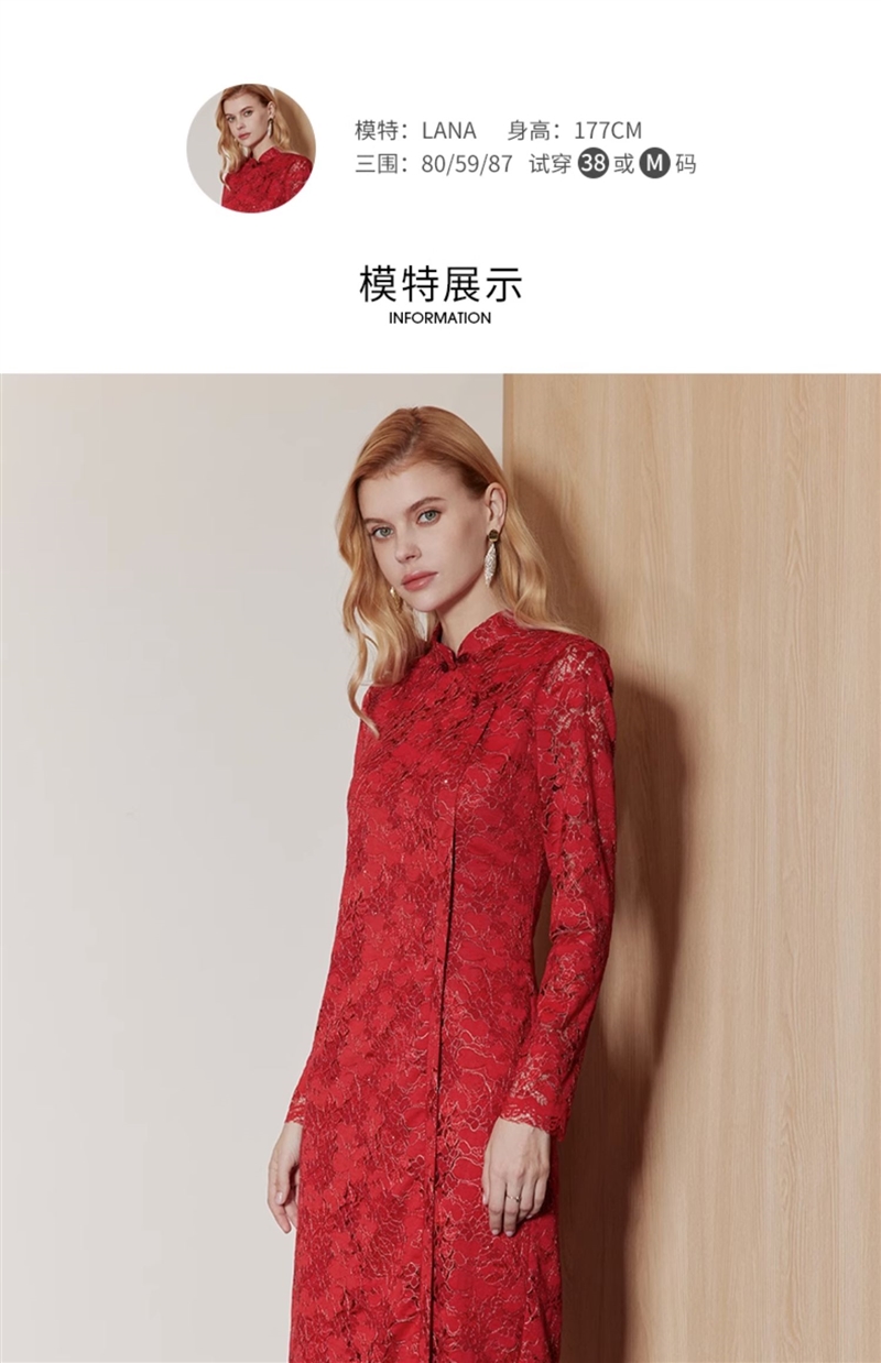 EITIE爱特爱复古中式立领盘扣改良旗袍红色蕾丝连衣裙秋季新款C07202