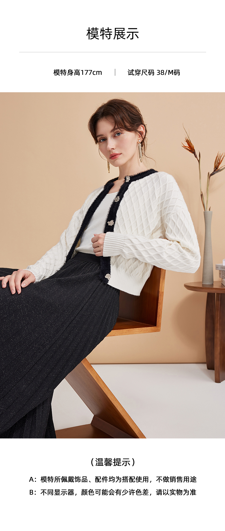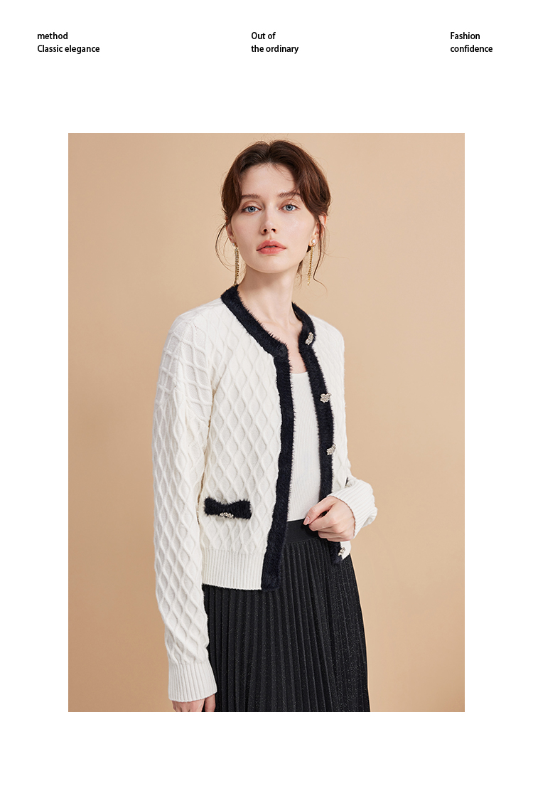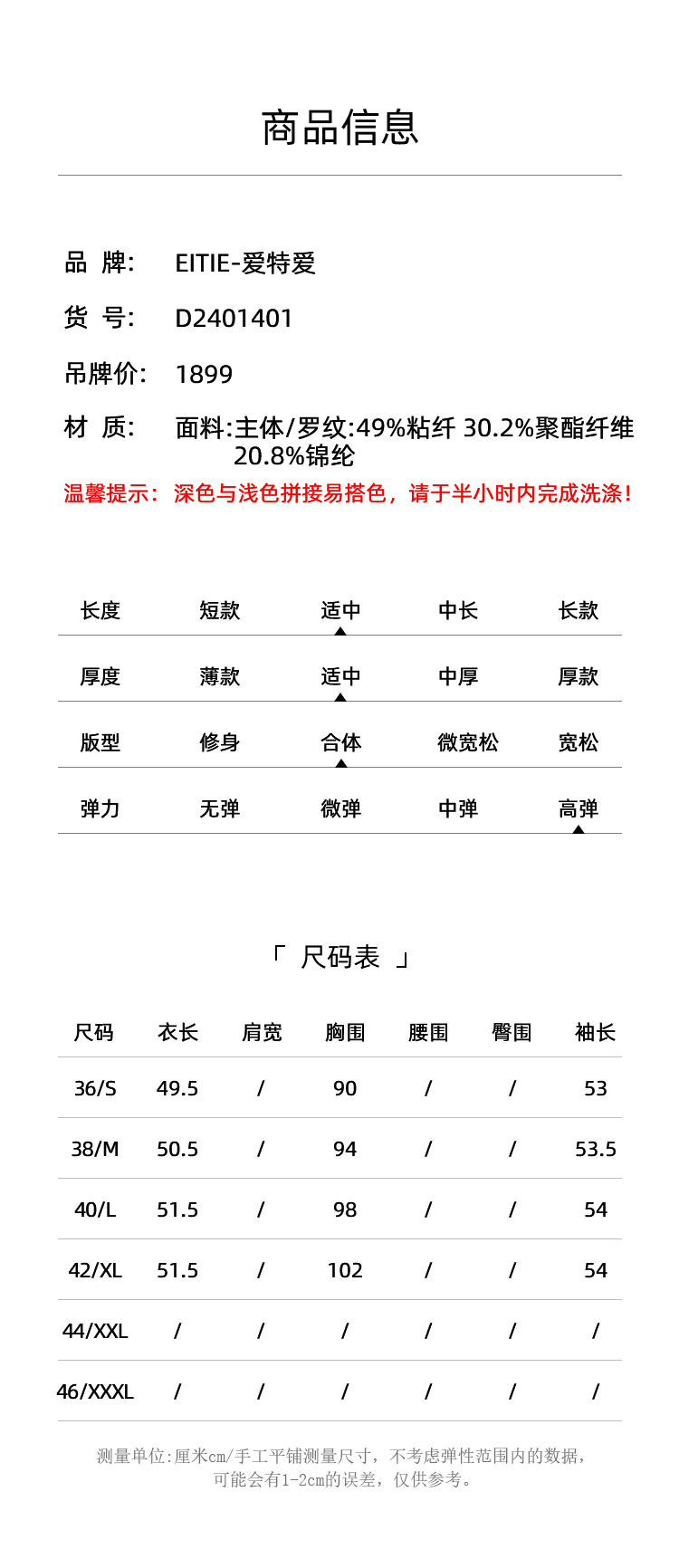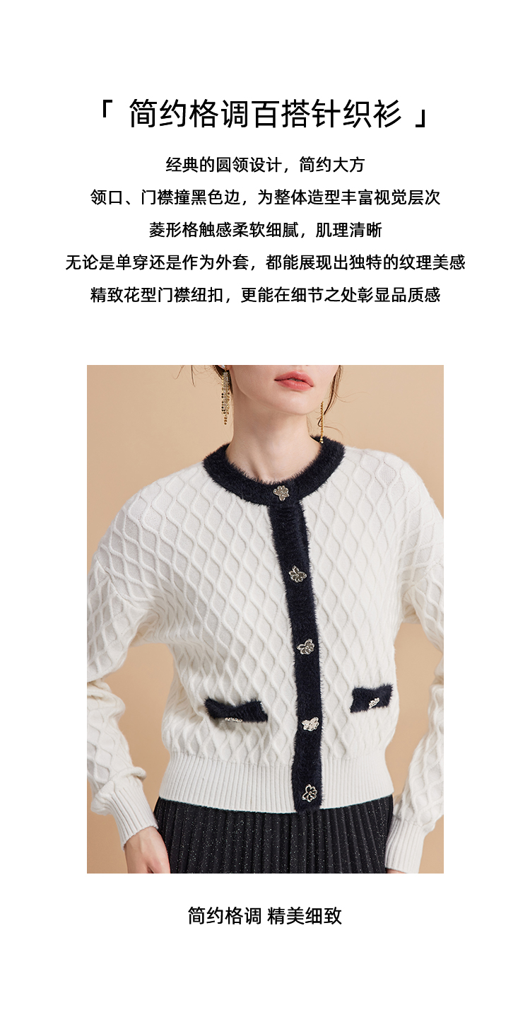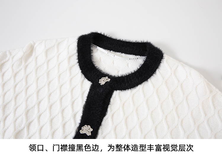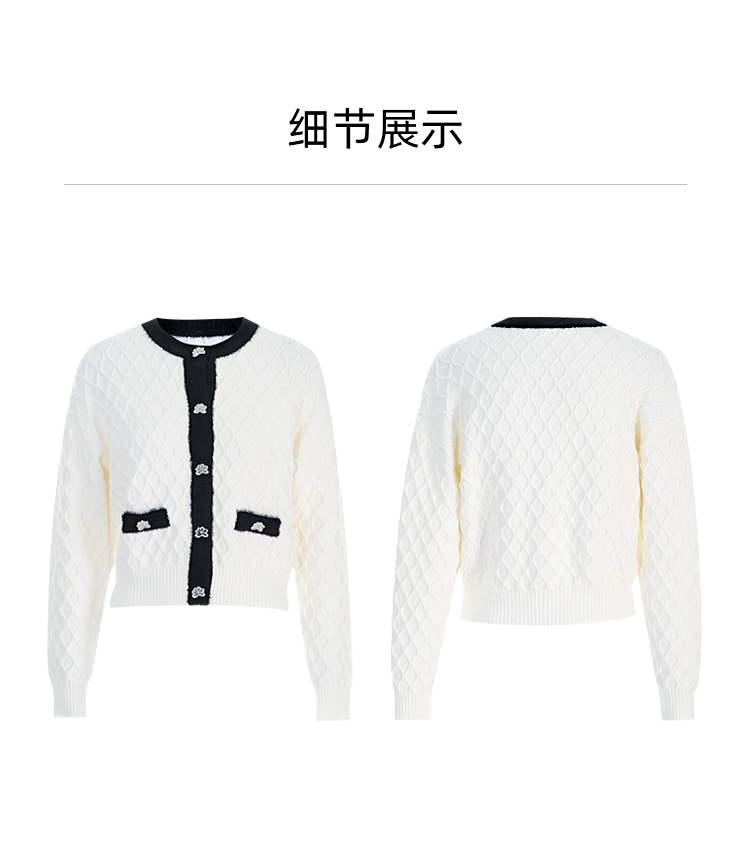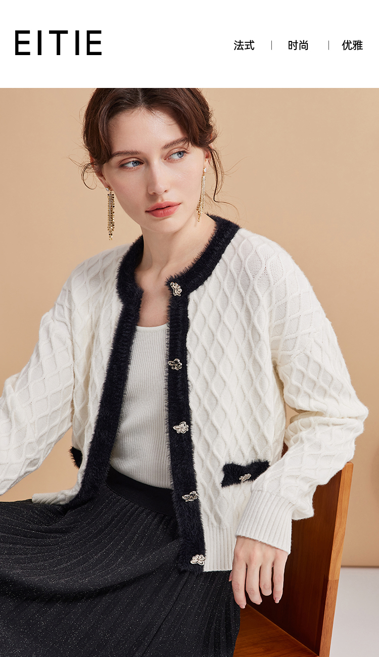 EITIE爱特爱时尚撞色圆领小香风百搭显瘦直筒针织开衫秋新款D2401401
