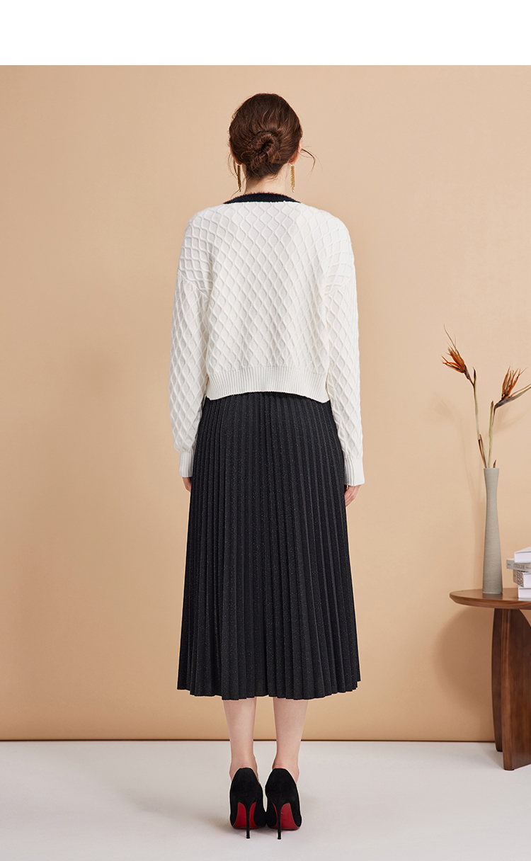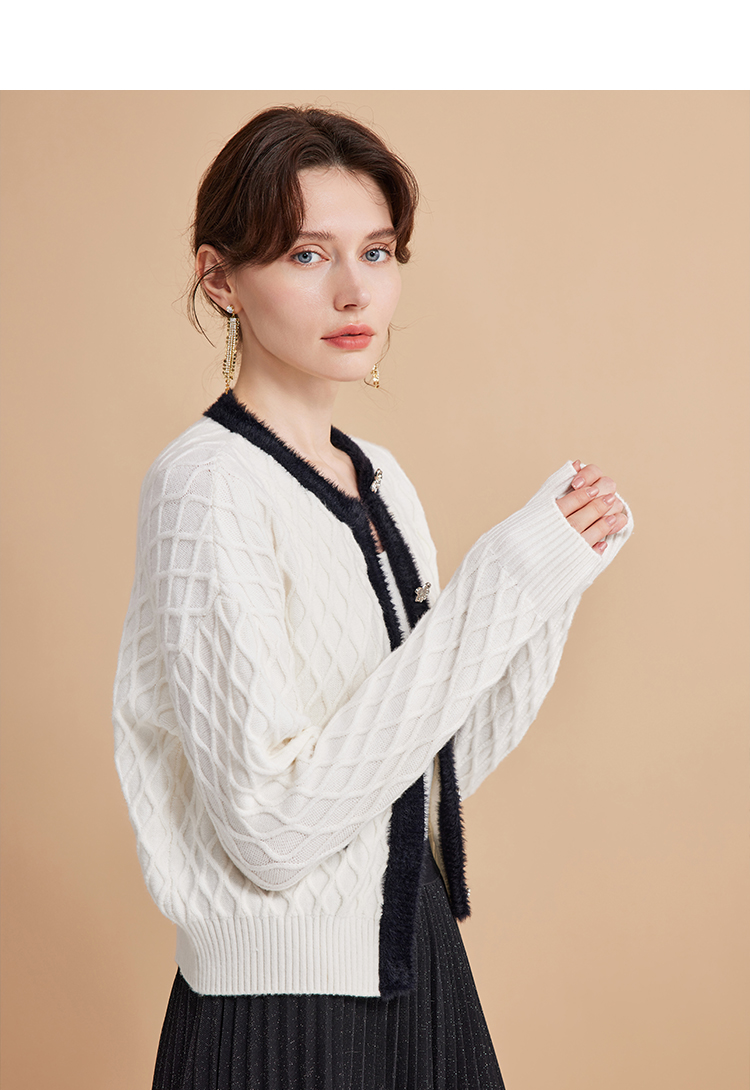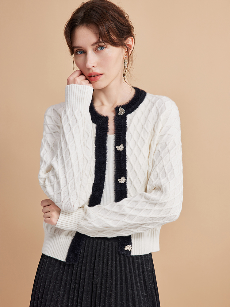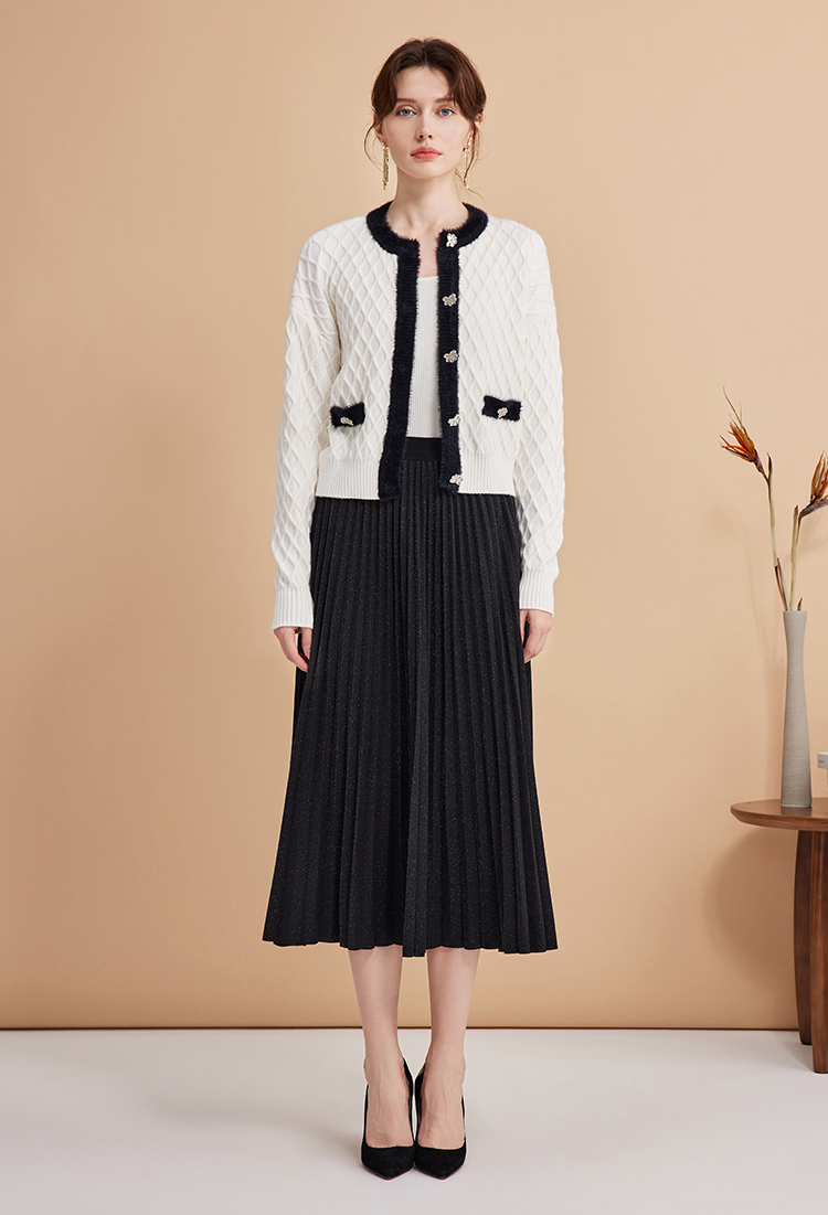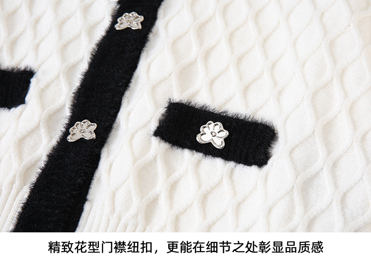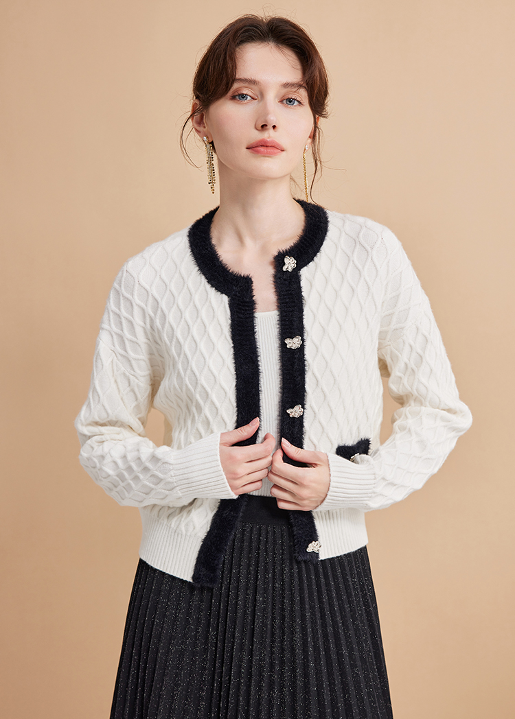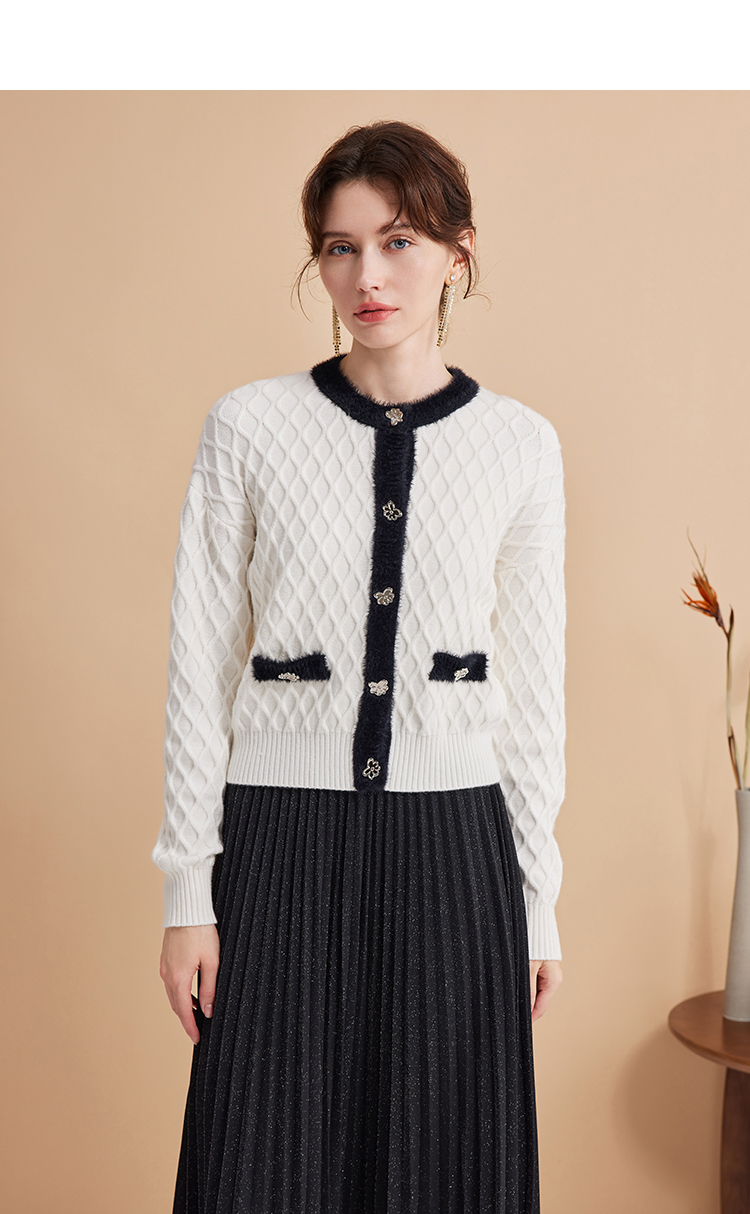 EITIE爱特爱时尚撞色圆领小香风百搭显瘦直筒针织开衫秋新款D2401401
