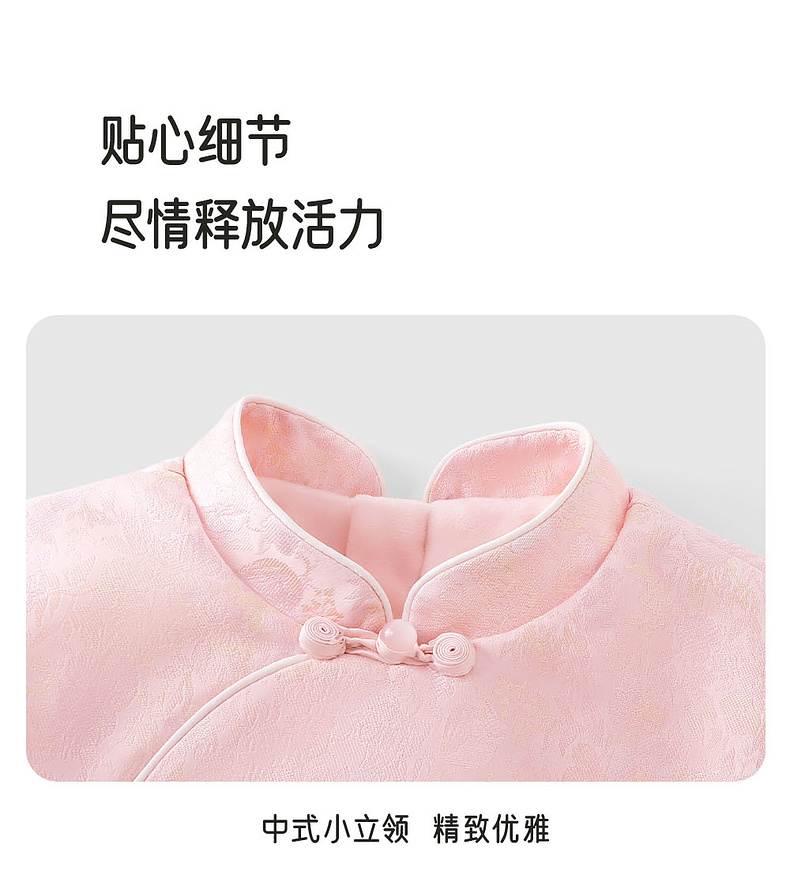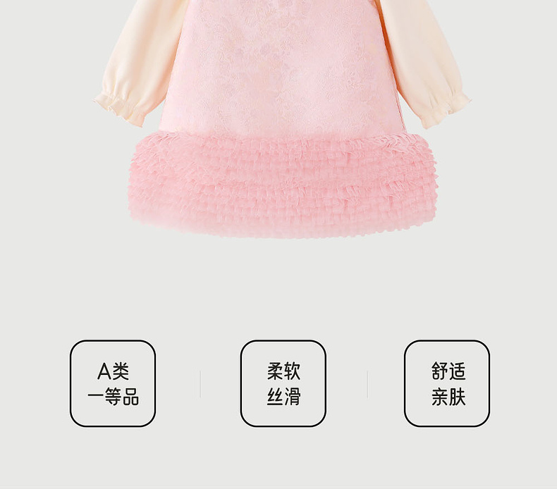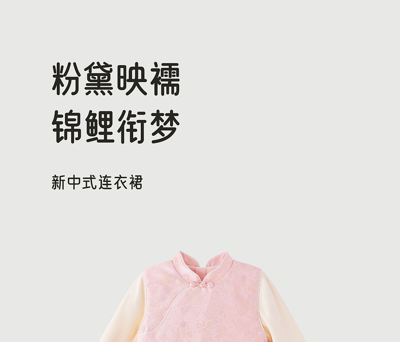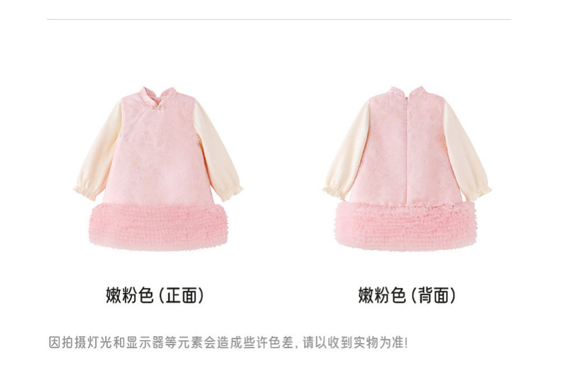 【商场同款】英氏儿童连衣裙女童秋冬新款长袖连衣裙浅粉色新中式公主裙拜年服