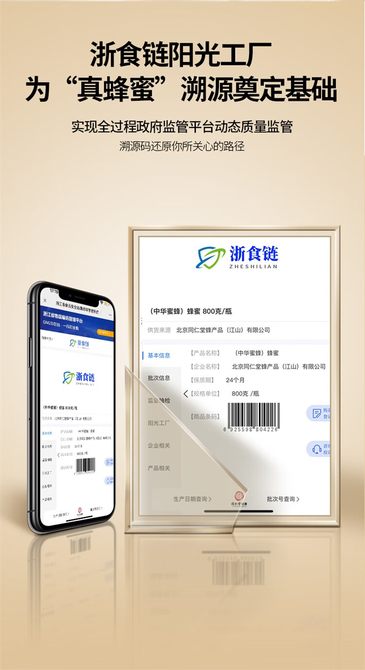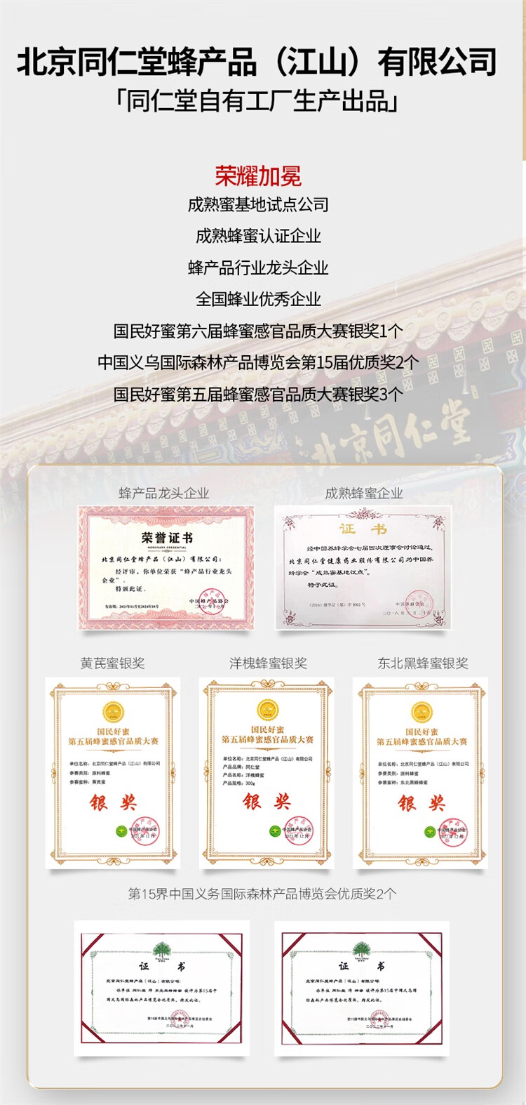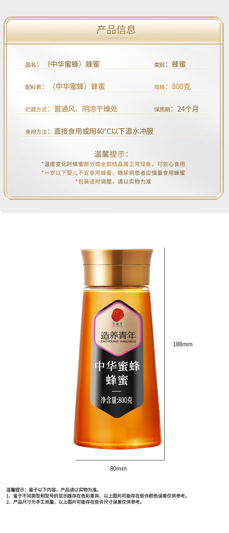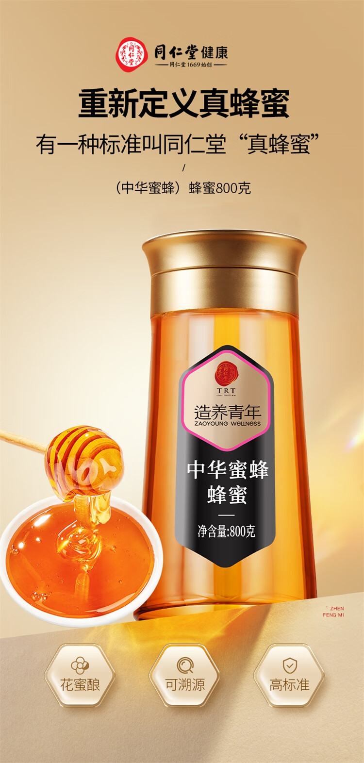 【正宗同仁堂品牌】北京同仁堂 中华蜂蜜800克 漏斗型瓶装 原料纯粹 拒绝添加 便携易使用SY