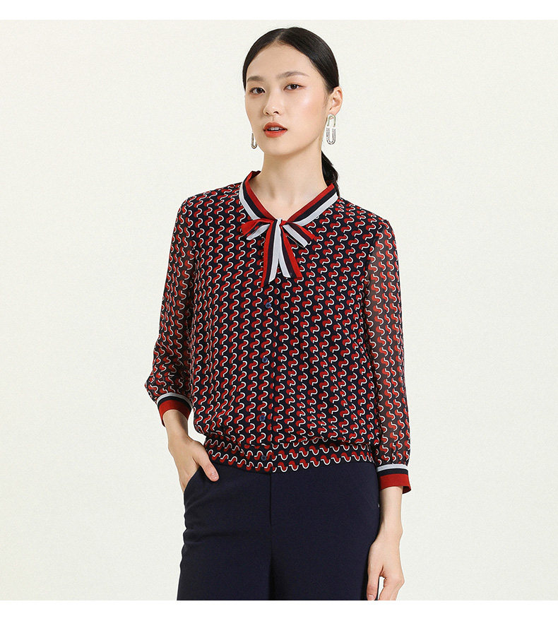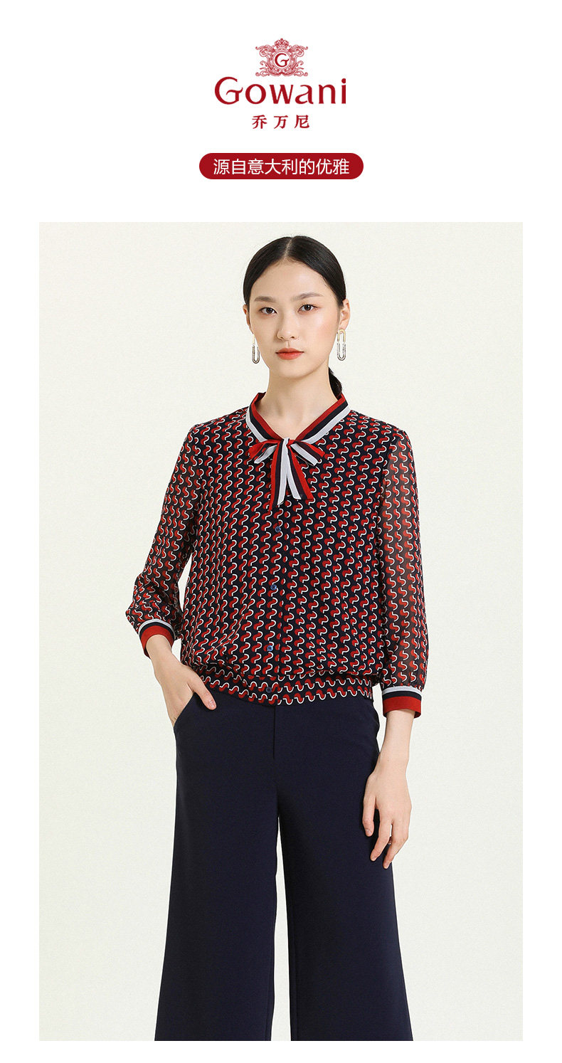 乔万尼秋新款时尚领结V领上衣设计感学院风套头衬衣ES3C533