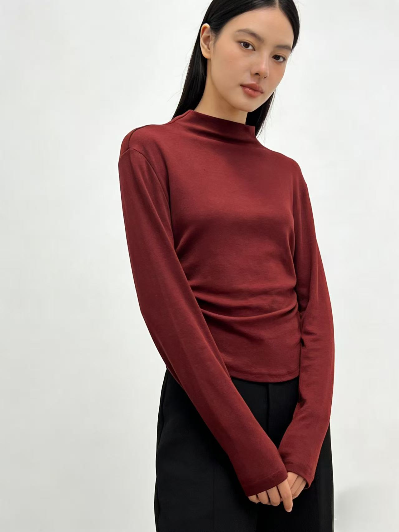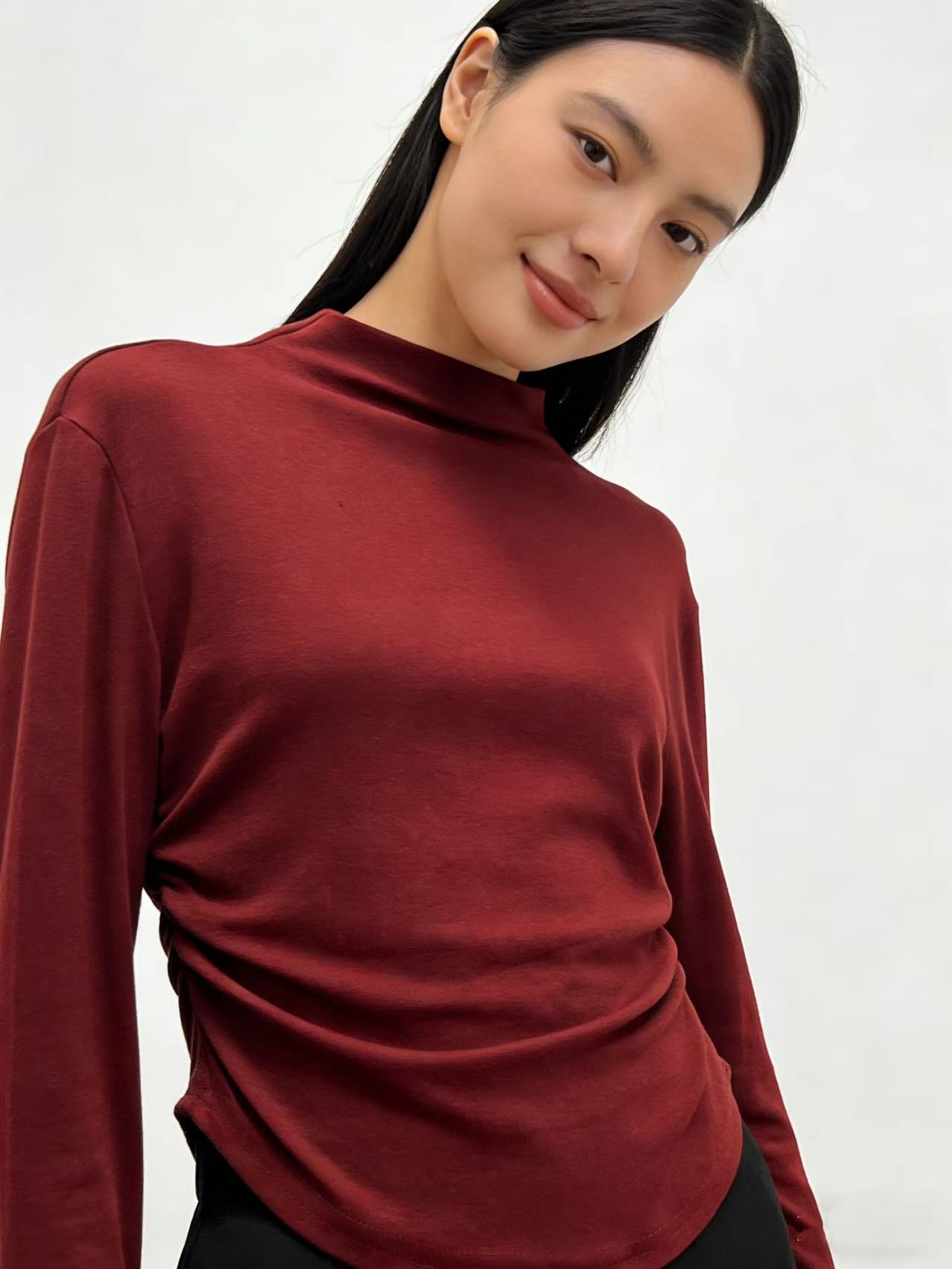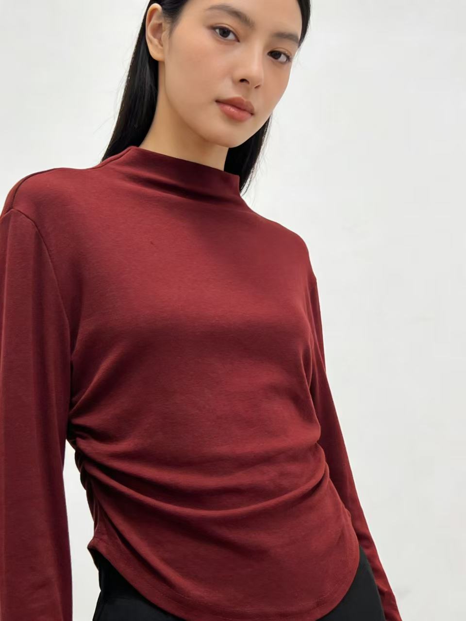 418良粉节|2026 活动爆款 超软糯【自营】很显白~衣周期 1030侧边抽褶高弹力打底衫上衣-喜出