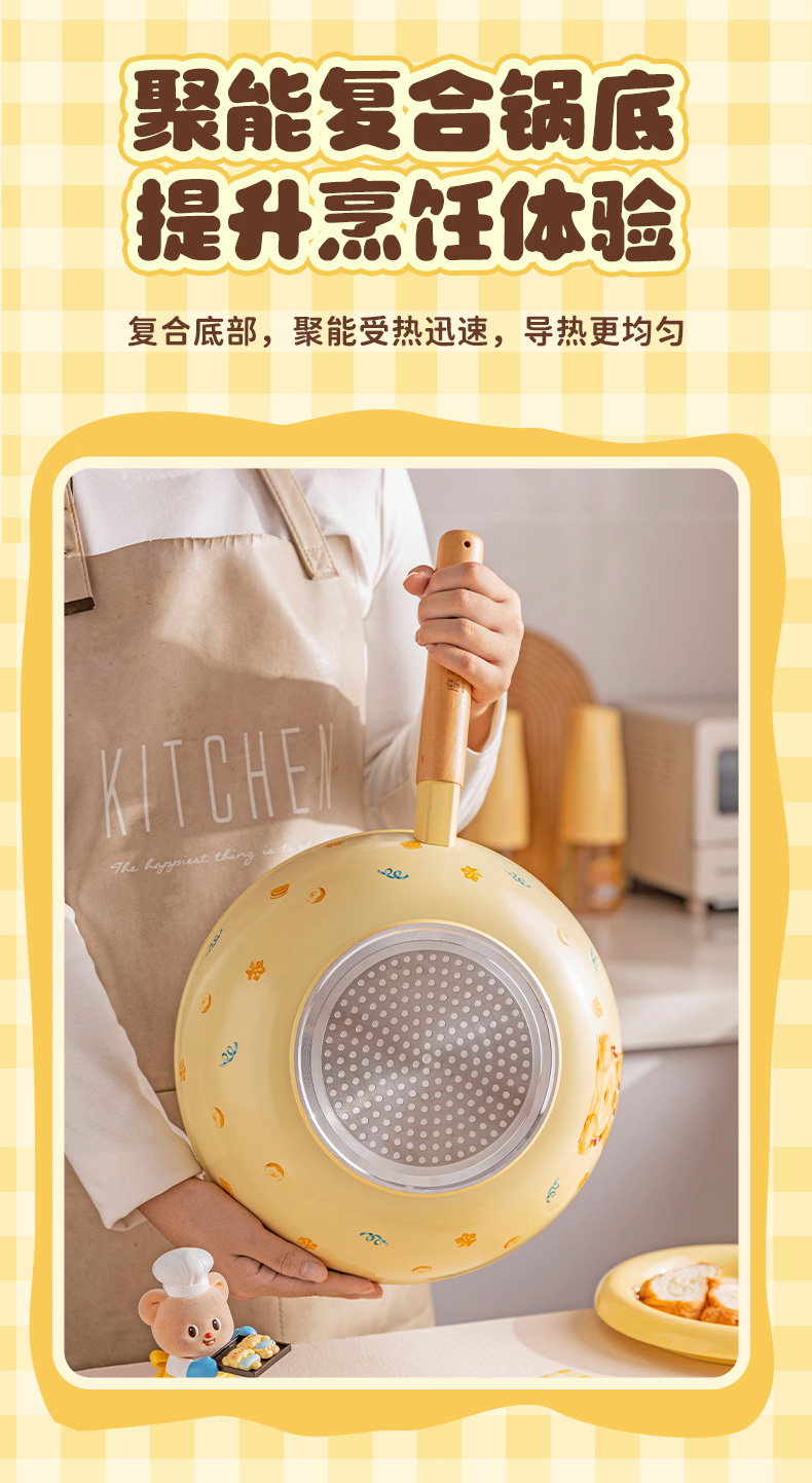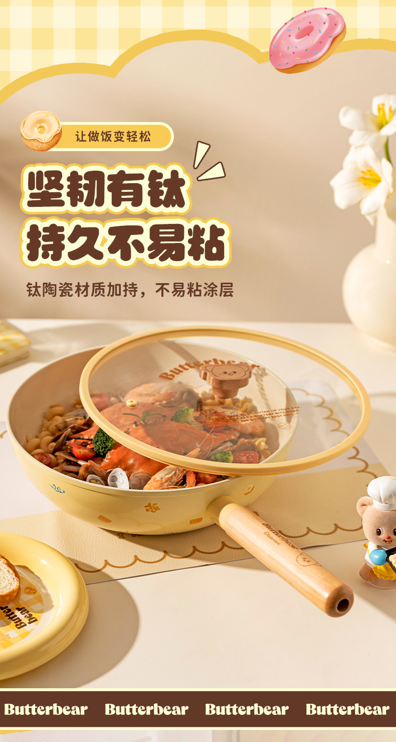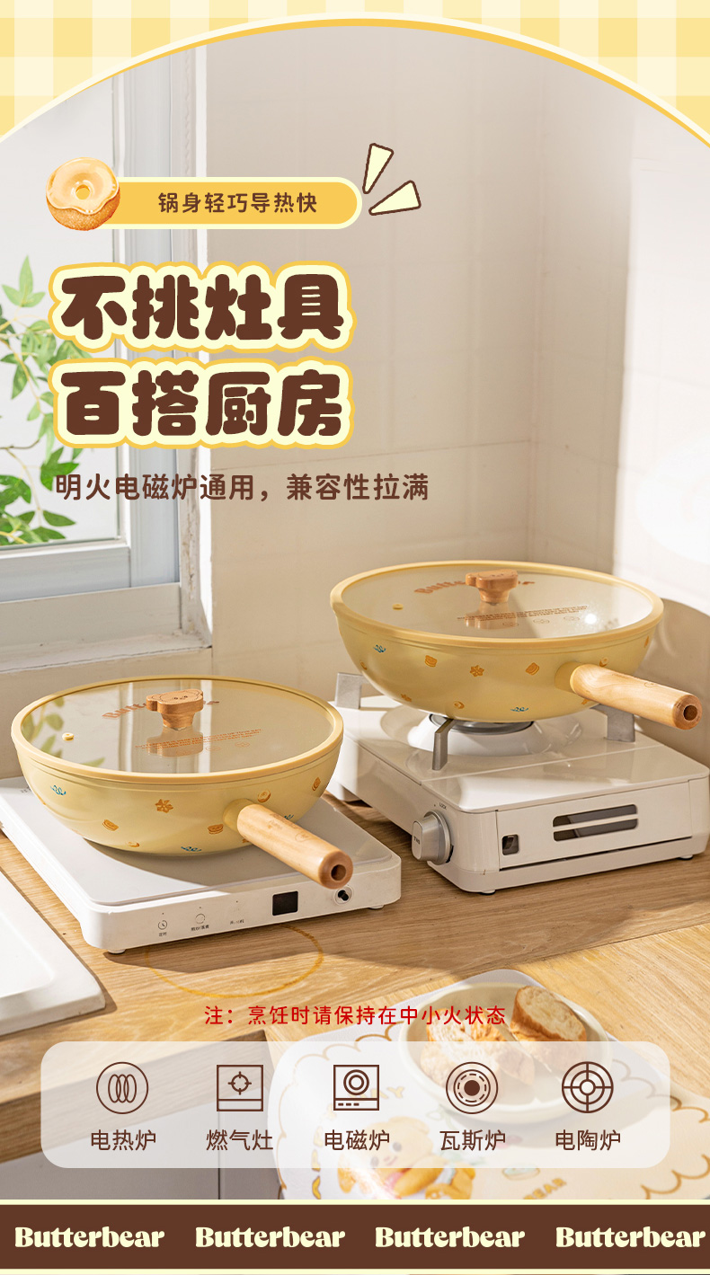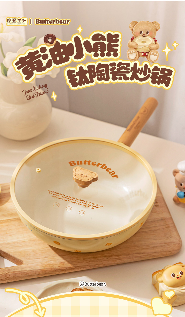 摩登主妇黄油小熊钛陶瓷炒菜锅具家用电磁炉专用不粘平底锅