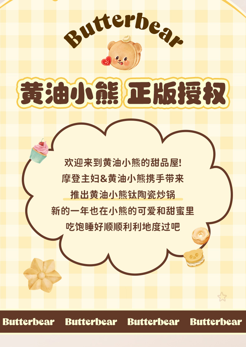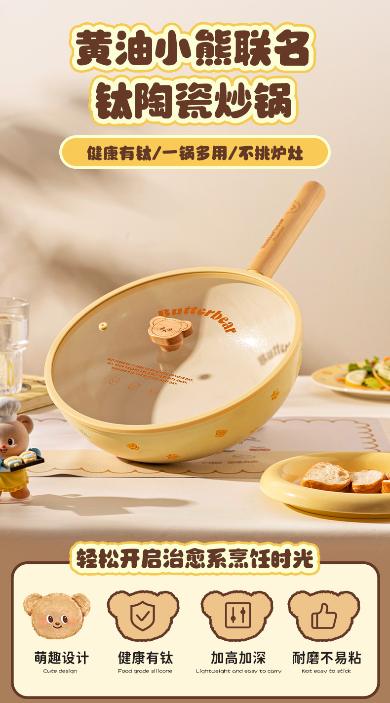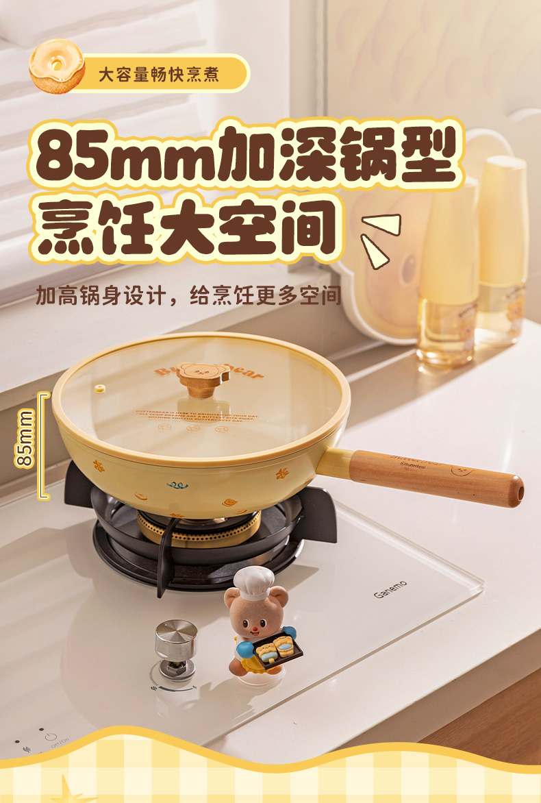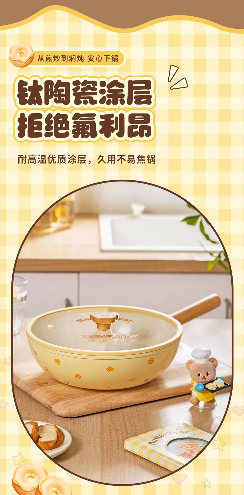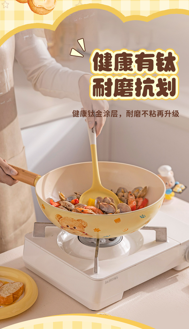 摩登主妇黄油小熊钛陶瓷炒菜锅具家用电磁炉专用不粘平底锅