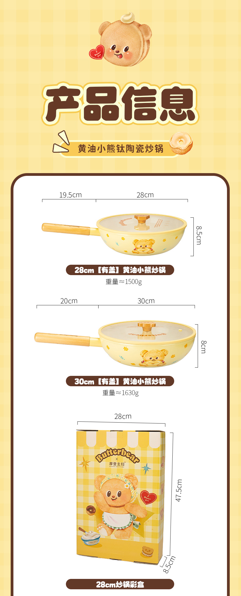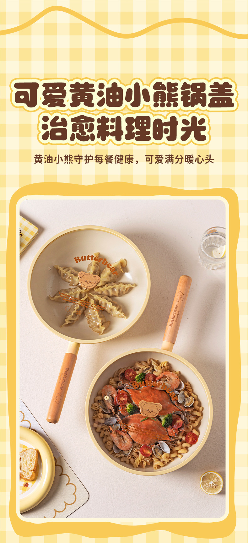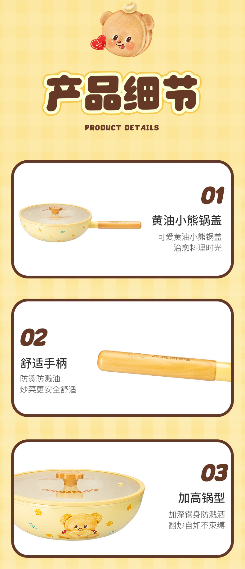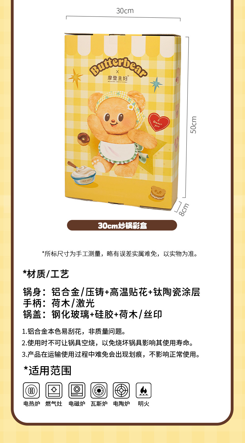 摩登主妇黄油小熊钛陶瓷炒菜锅具家用电磁炉专用不粘平底锅