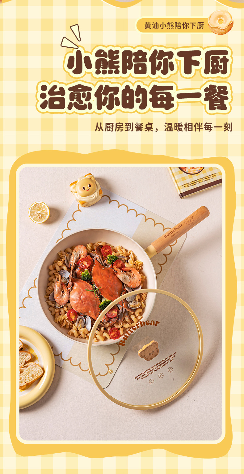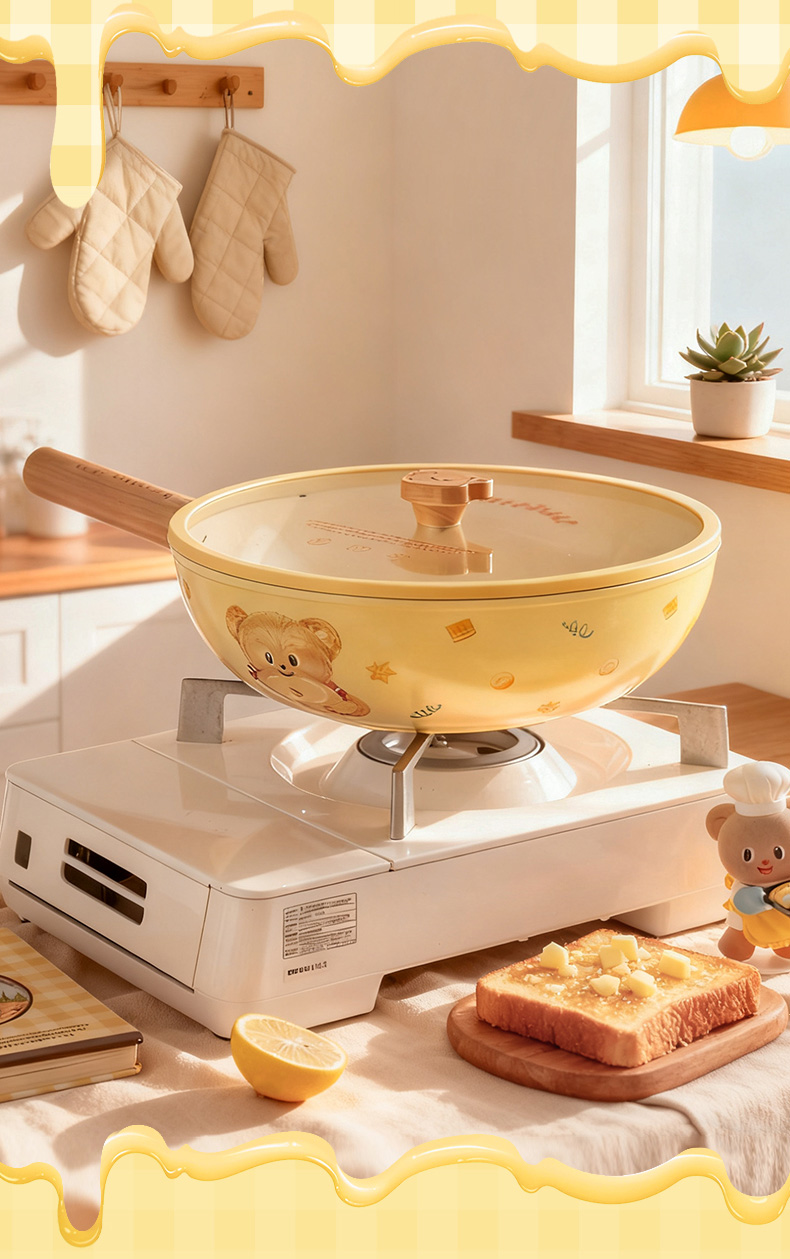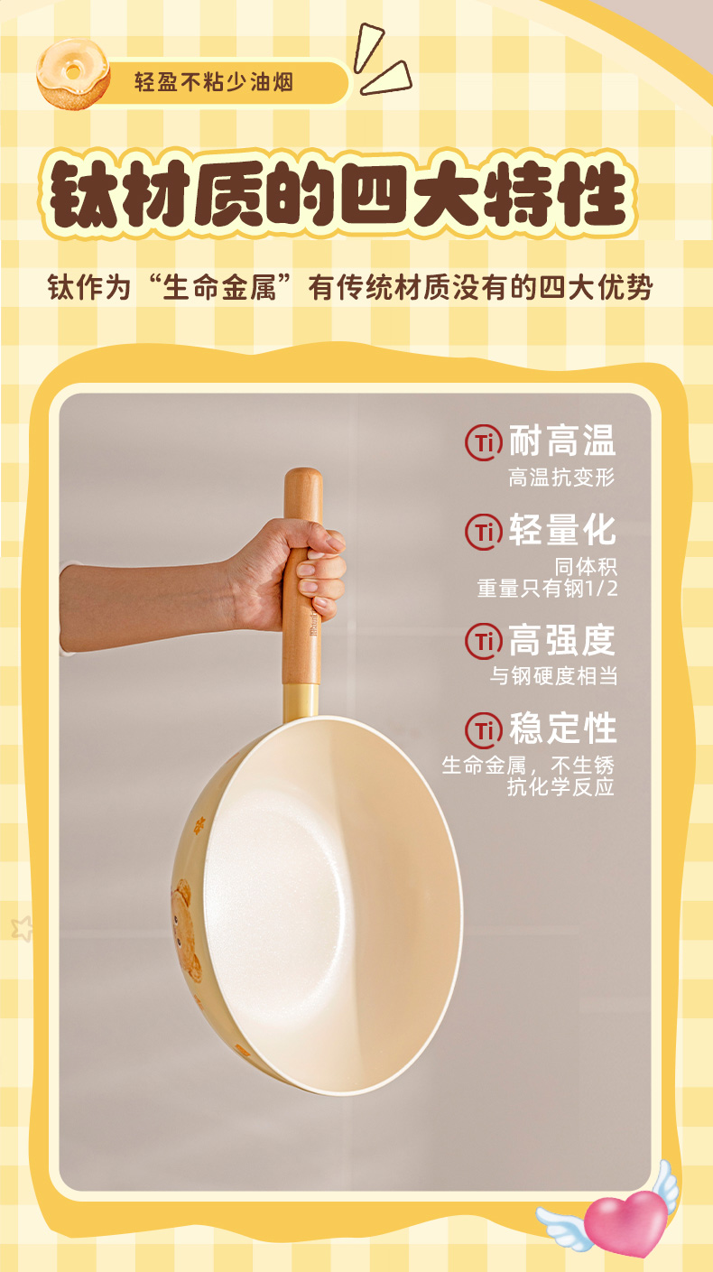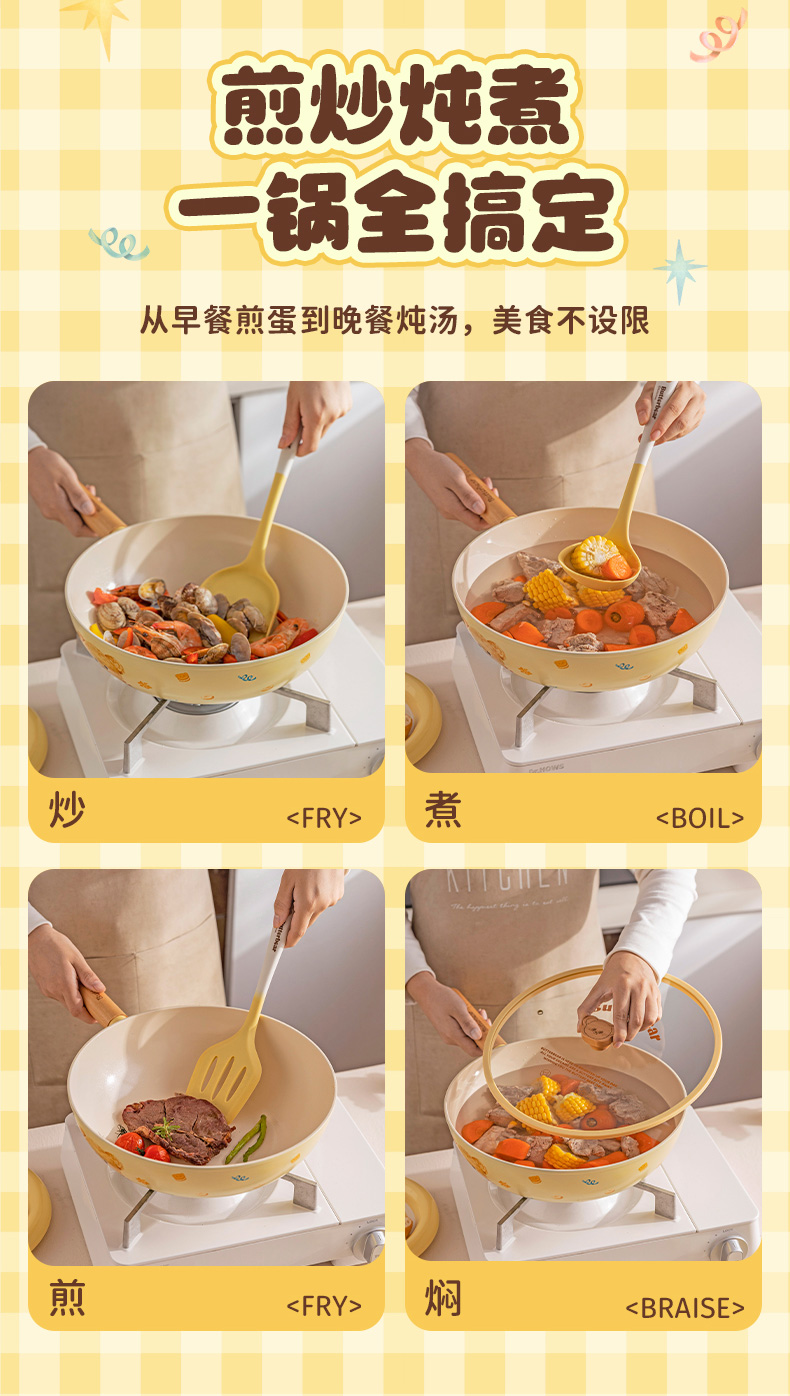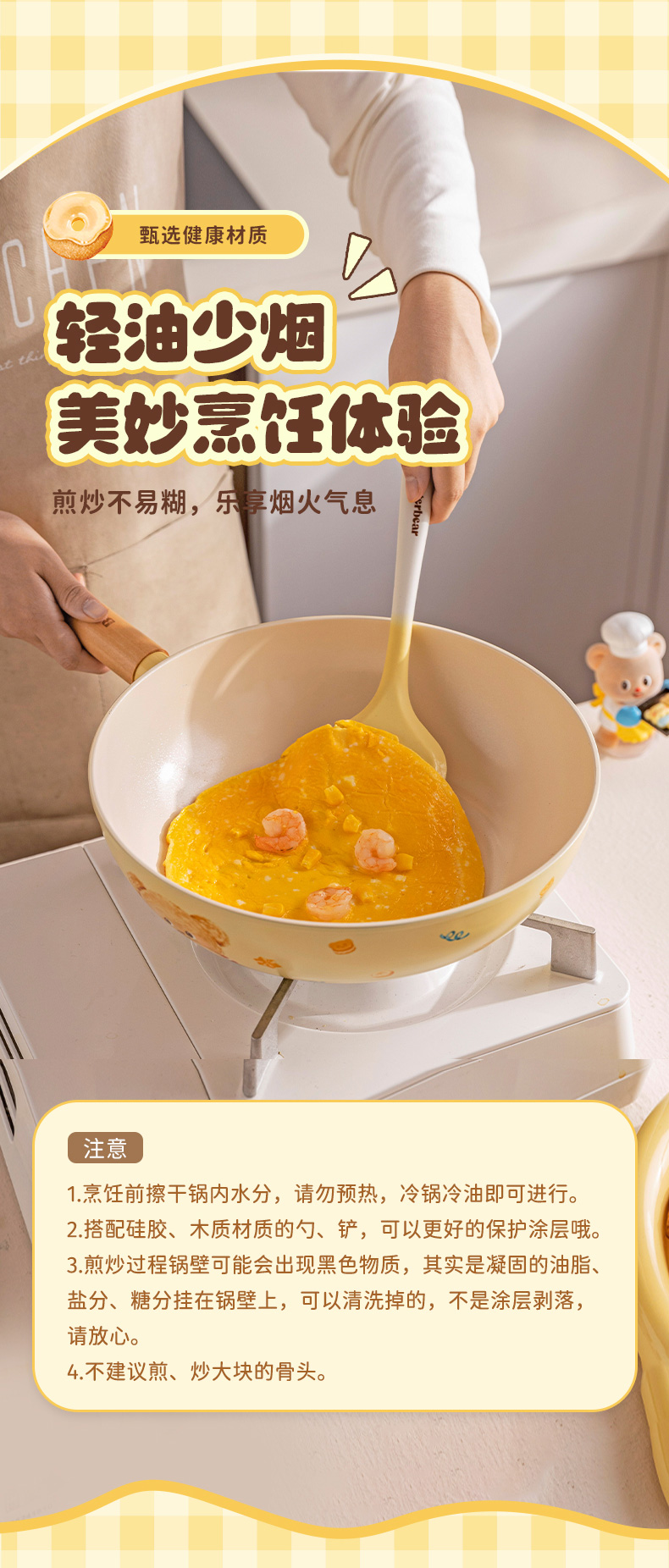 摩登主妇黄油小熊钛陶瓷炒菜锅具家用电磁炉专用不粘平底锅