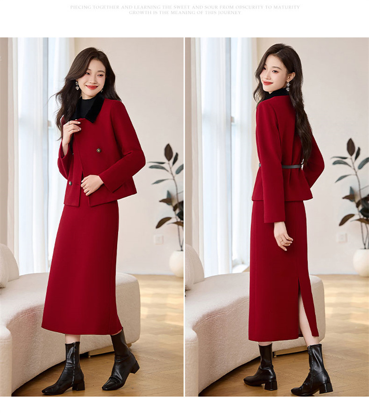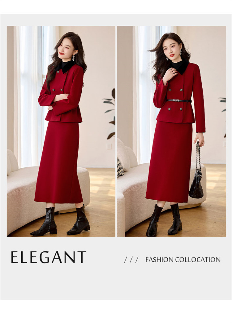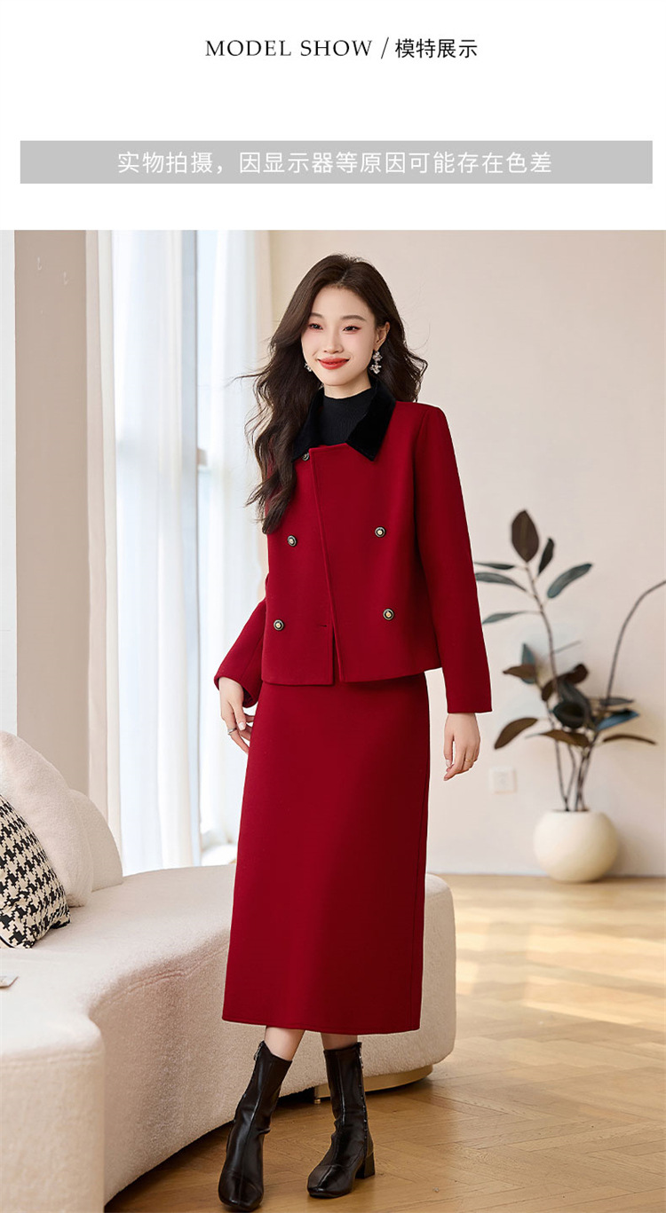 HR LSNY2471加厚毛呢外套半身裙两件套 商品图4
