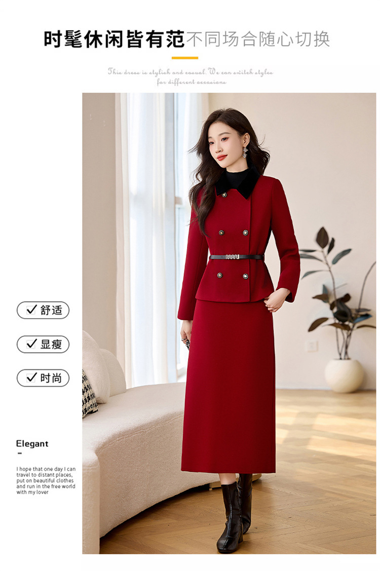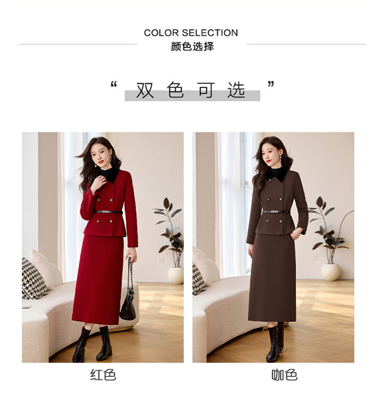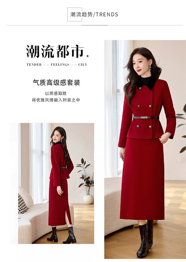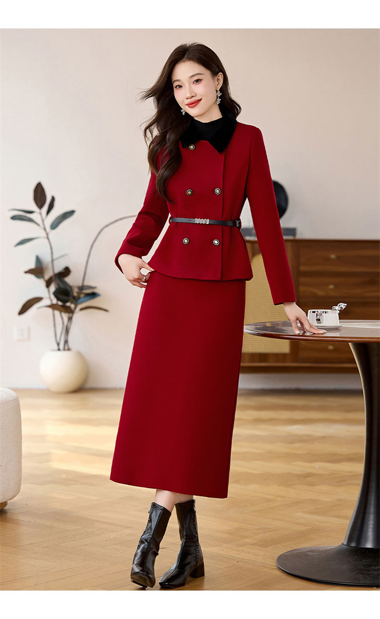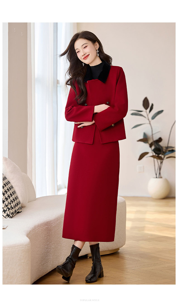 HR LSNY2471加厚毛呢外套半身裙两件套 商品图1