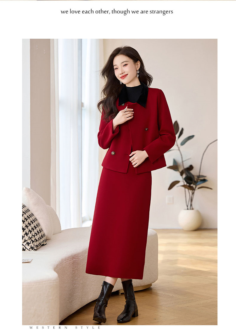 HR LSNY2471加厚毛呢外套半身裙两件套 商品图3