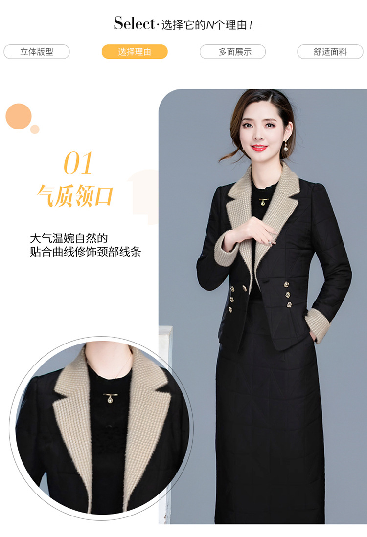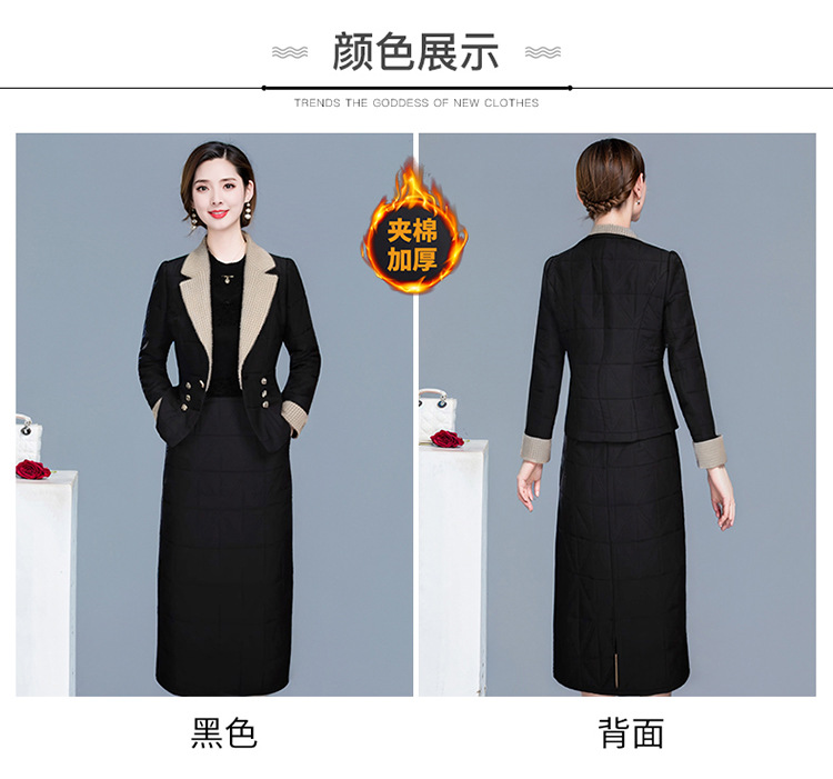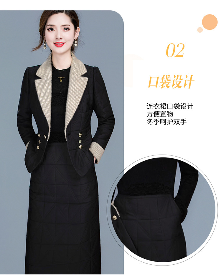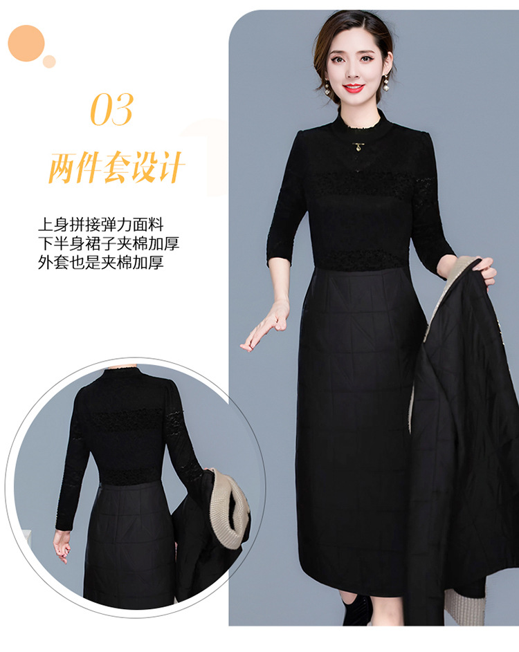 QYM 99H254-Y夹棉两件套连衣裙夹棉短款外套+长袖假两件厚款连衣裙 商品图3