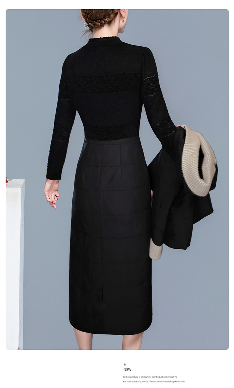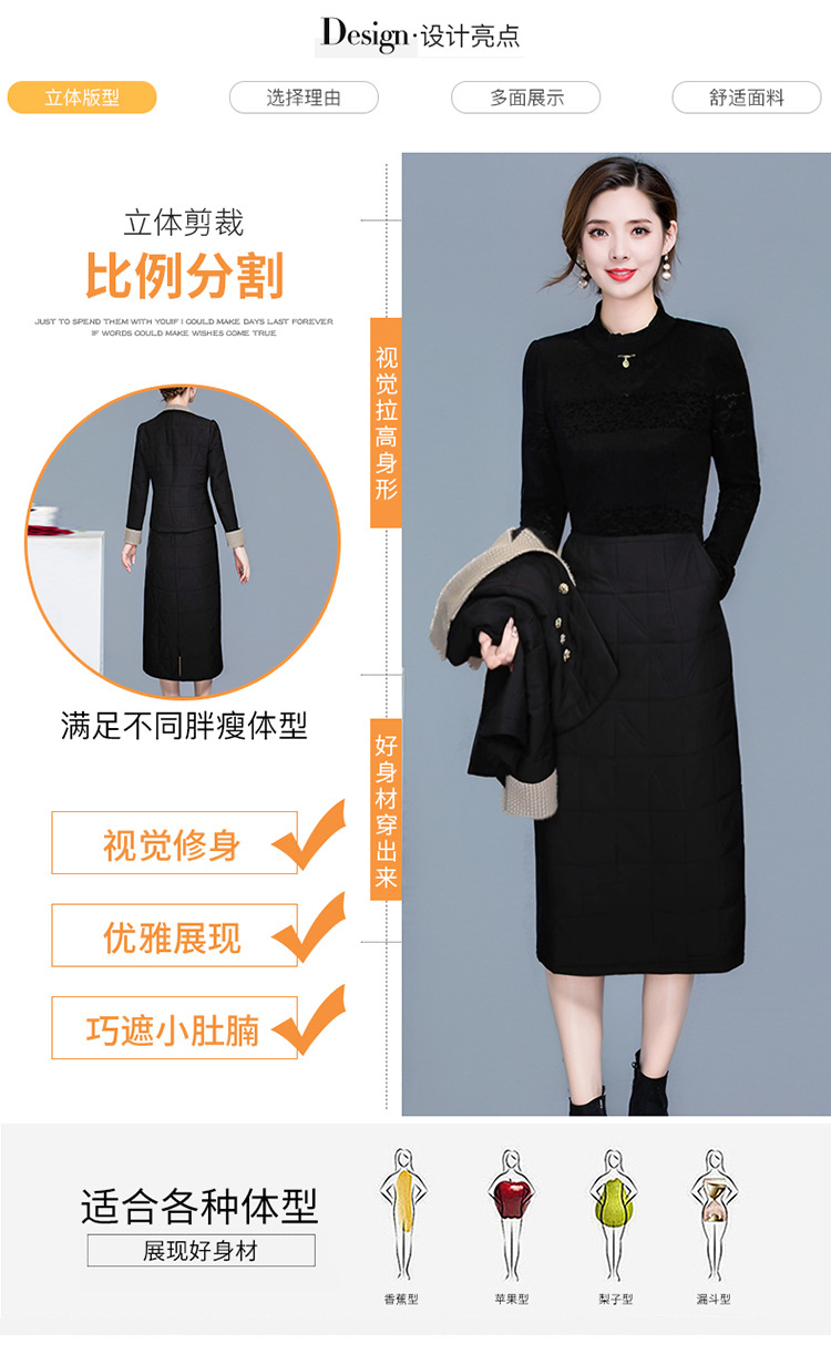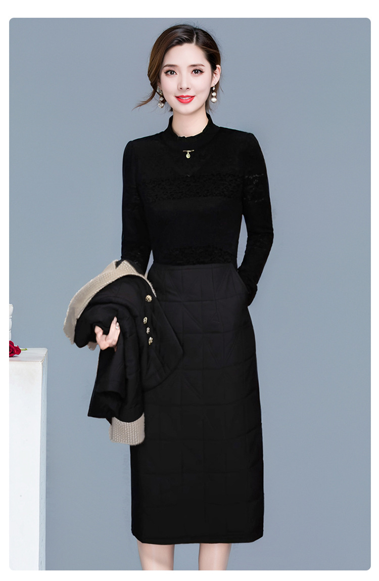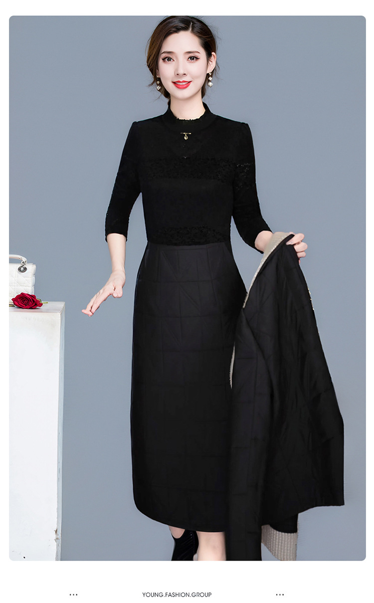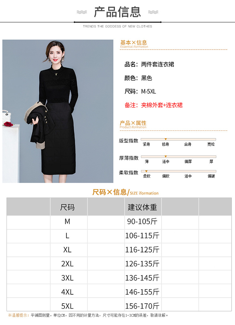 QYM 99H254-Y夹棉两件套连衣裙夹棉短款外套+长袖假两件厚款连衣裙 商品图4