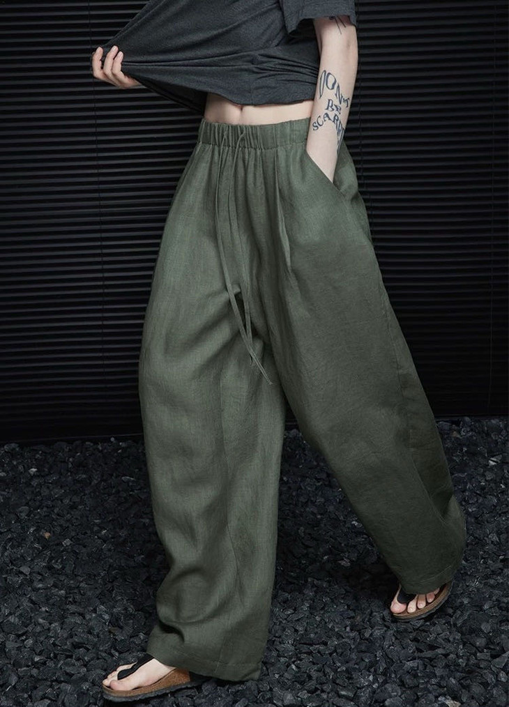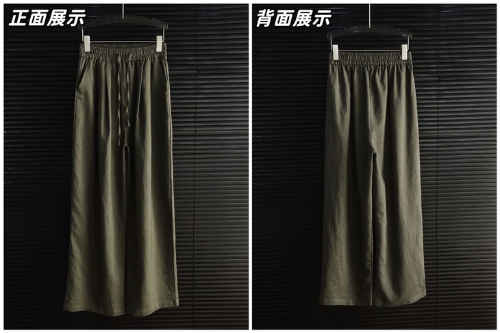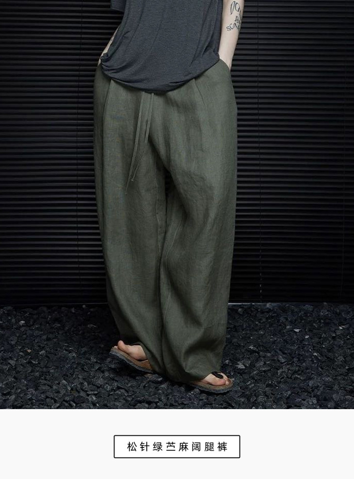 老钱风松针绿阔腿裤 天然苎麻纤维 轻薄透气显瘦 宽松阔腿裤版型