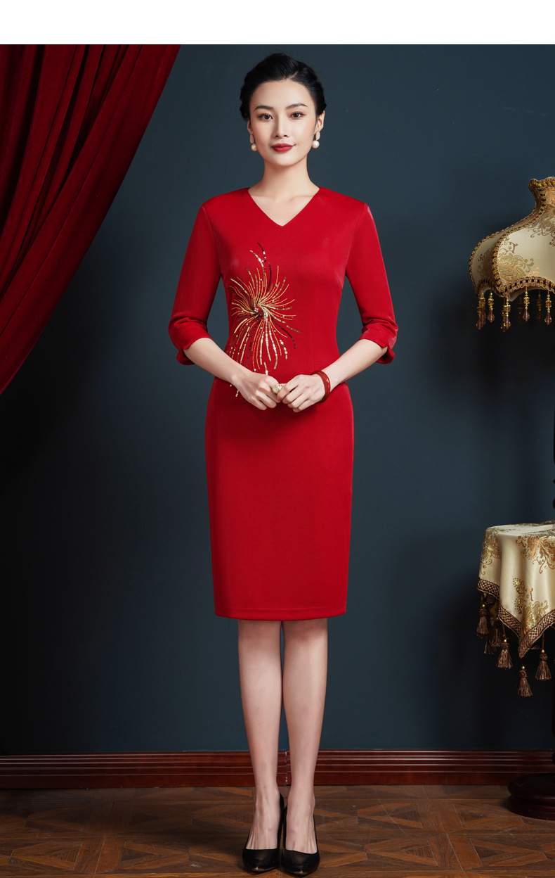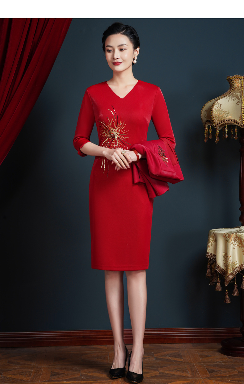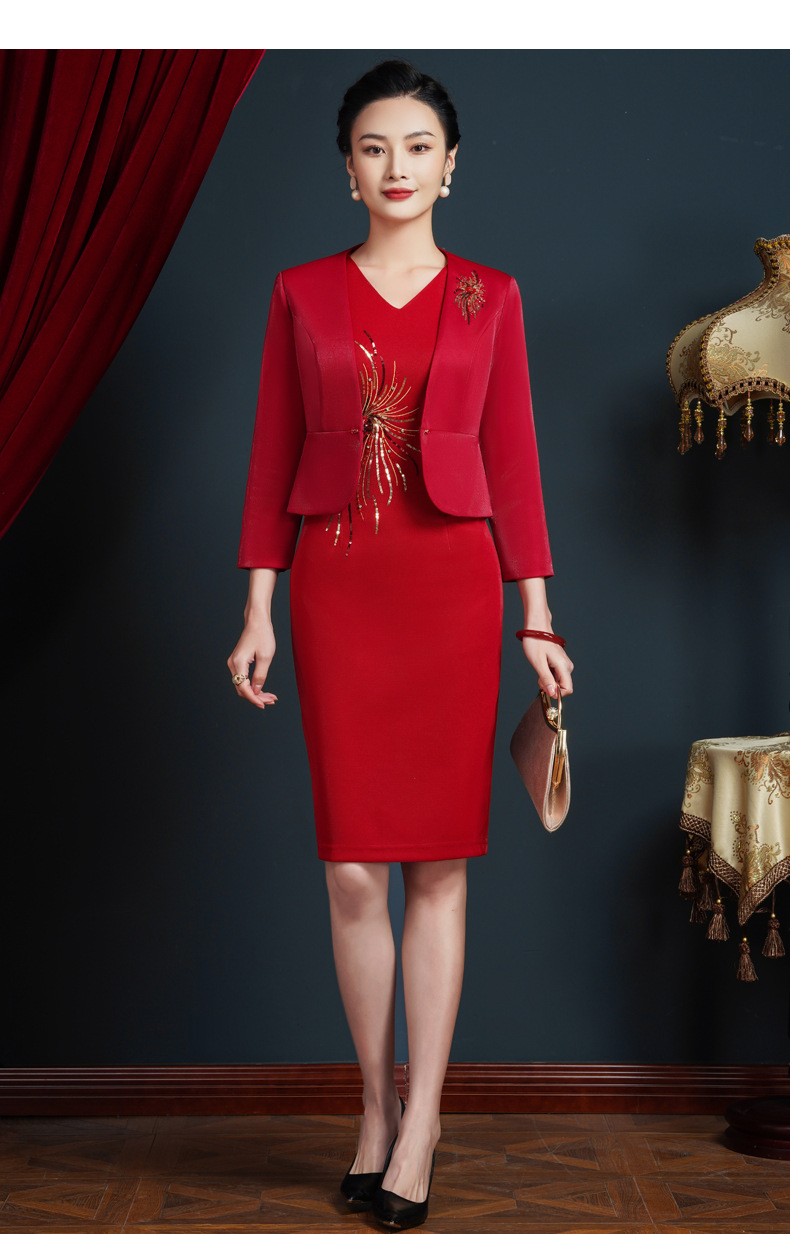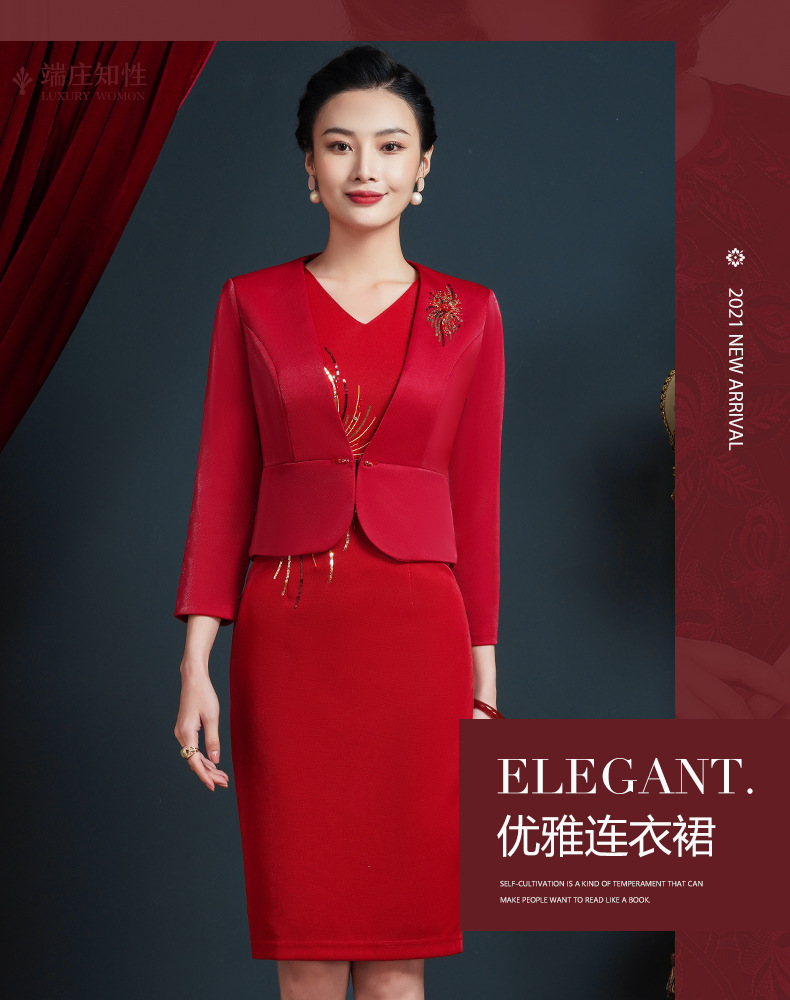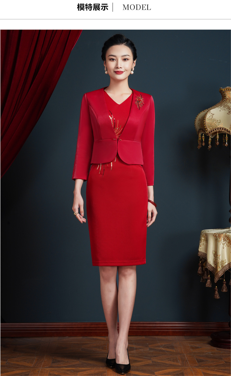 上海旗袍厂JC-JY5092参加婚礼服秋冬套装连衣裙时尚气质两件套裙子喜庆