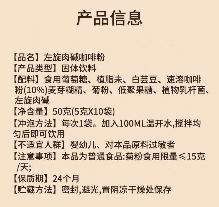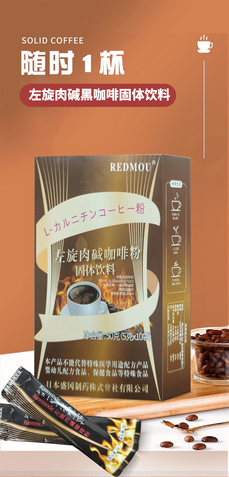 REDMOU左旋肉碱咖啡50g(5g×10袋)5盒