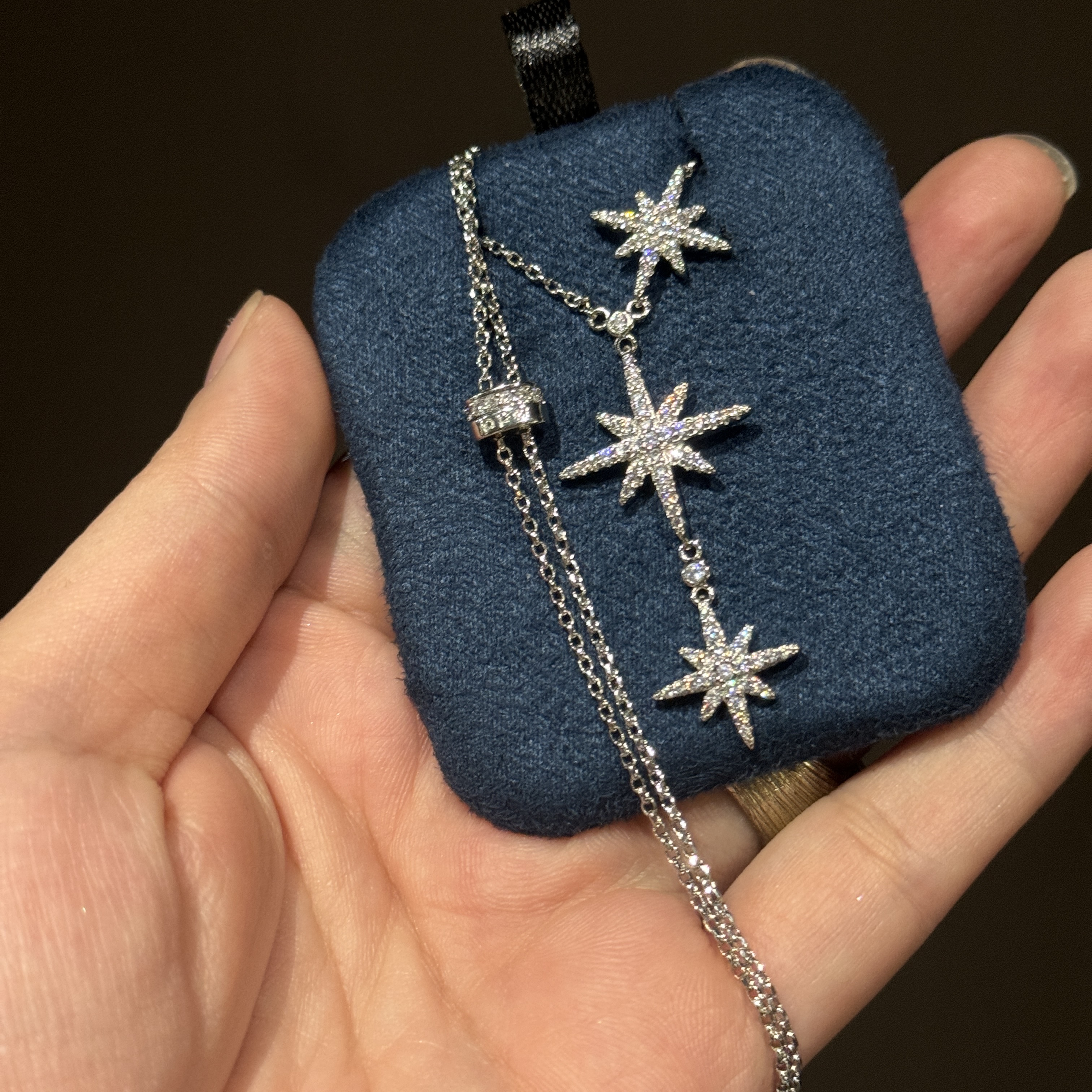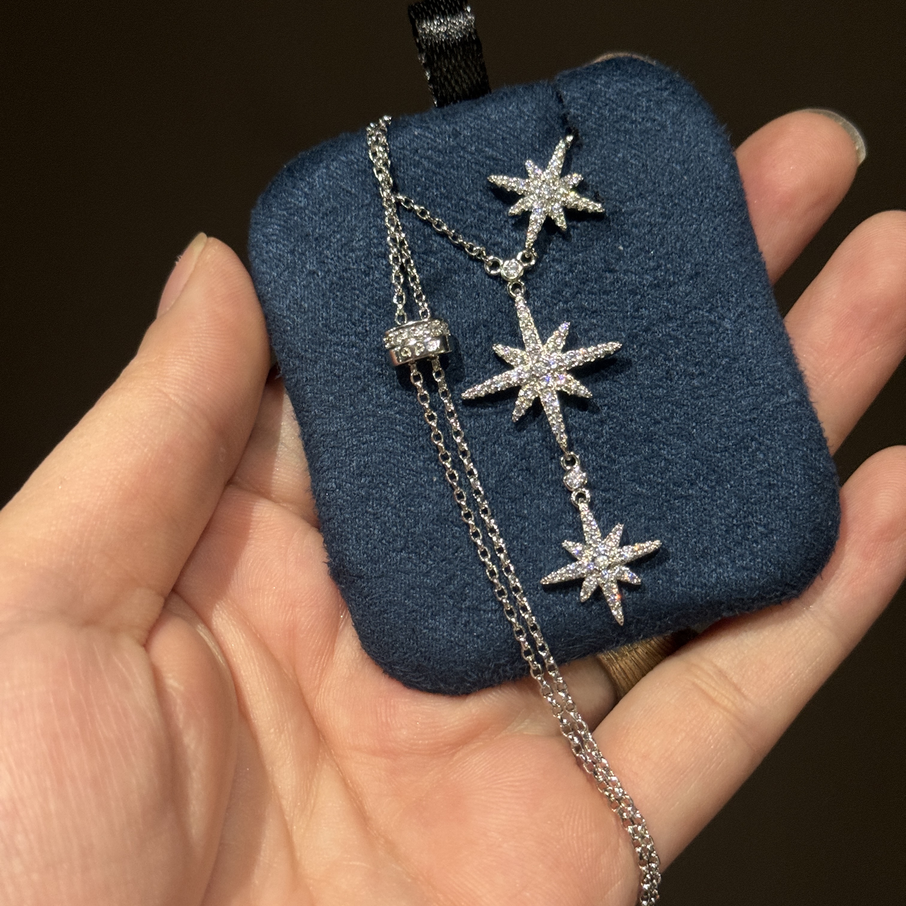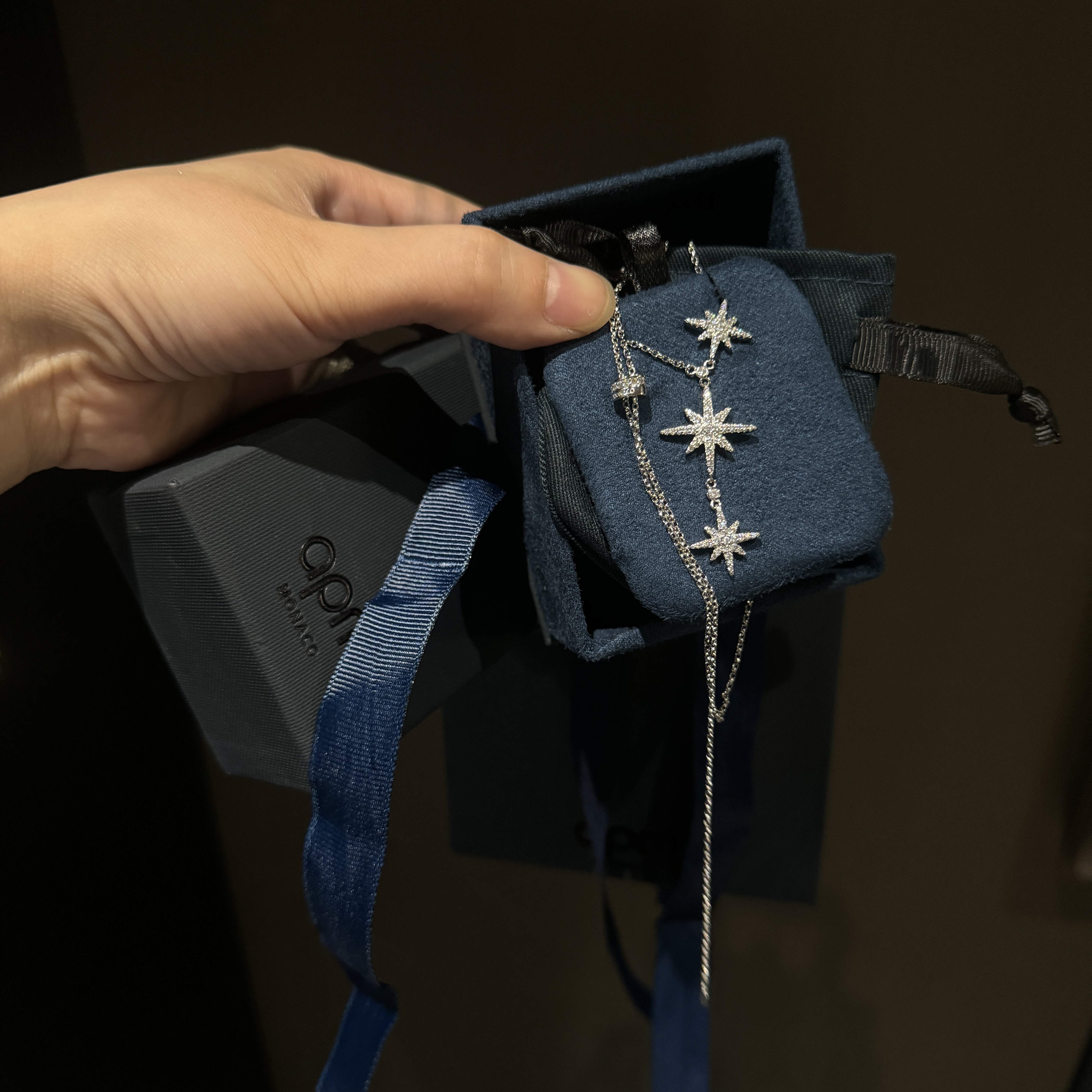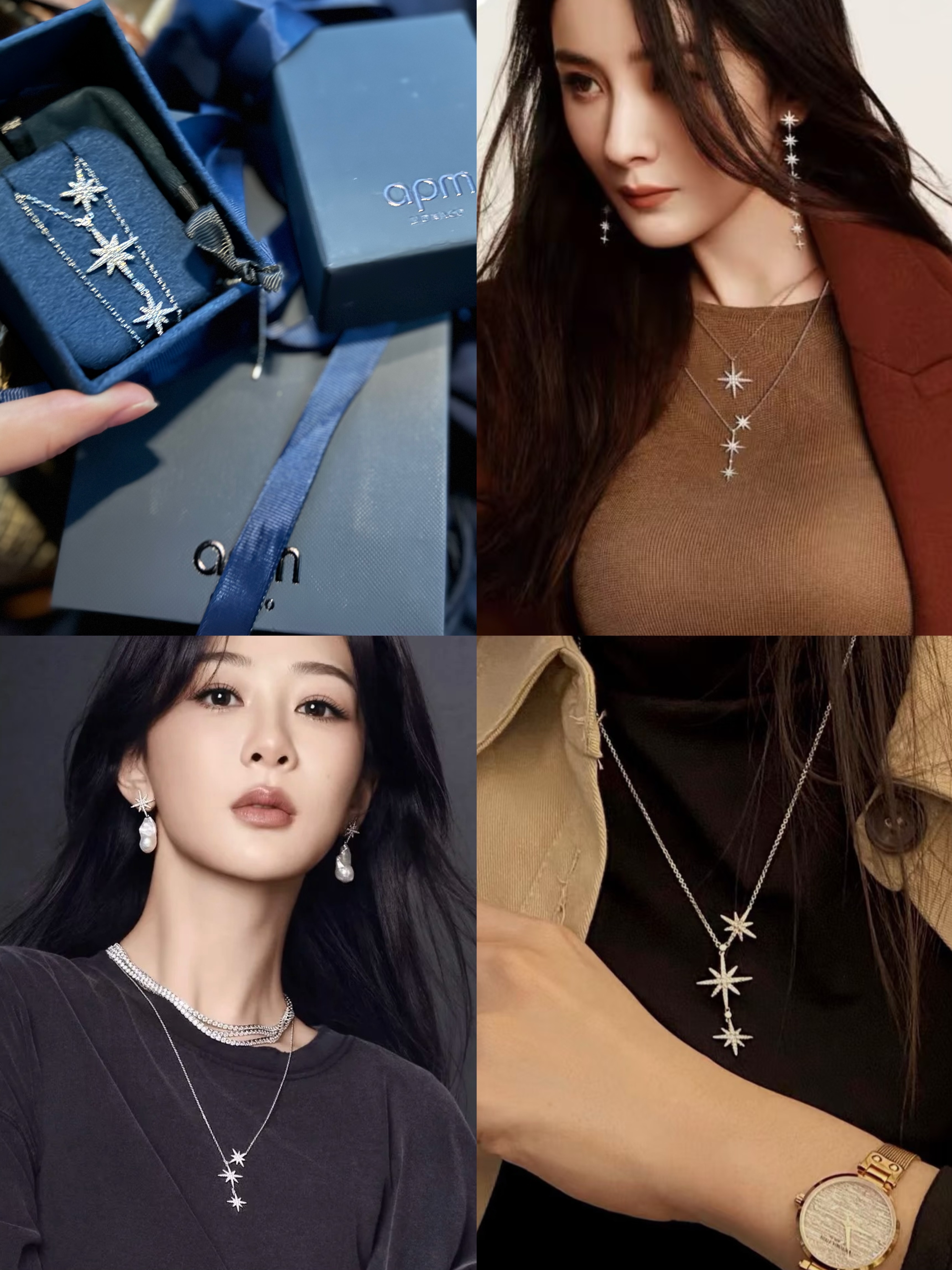 多年代工渠道订单‼️ 工厂库存清 几年了价钱降到没朋友了!最经典就是它了!配全套礼盒!!老渠道代工厂出品!⚠️ AP&M经典三星六芒星项链杨紫 baby幂姐同款 这条真的是最火的经典款!实物真的超美 闪瞎所有人长度也可以随意调节!夏天当锁骨链, 冬天可以当毛衣链!小仙女必须要入!项链封神的好看 经典永不过时怎么搭配都好精致好显白!纯银材质 长短可按需调节质感超棒!全套礼盒包装 精致的工艺s925 银 克重约6.9g 不褪色 可以当项链可以当毛衣链 超级好看,可伸缩调节!六芒星的设计, 完全不用担 心过敏和掉色。手工微镶的施hua洛水晶。真的巨闪,阳光下直接闪瞎眼,低调又不失高级感。