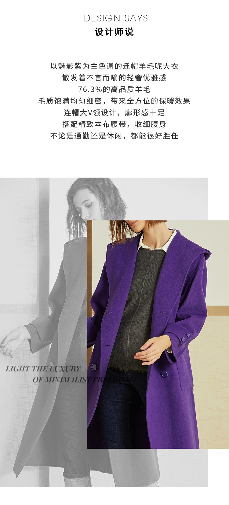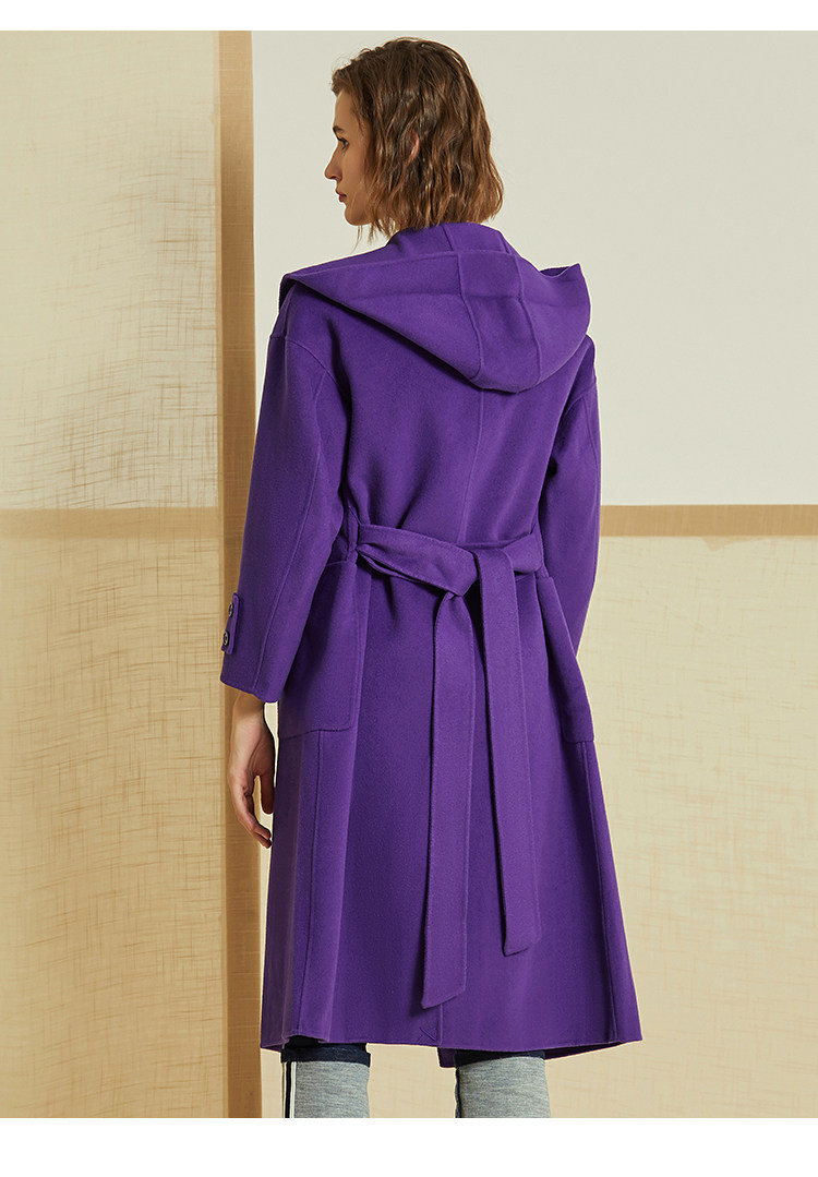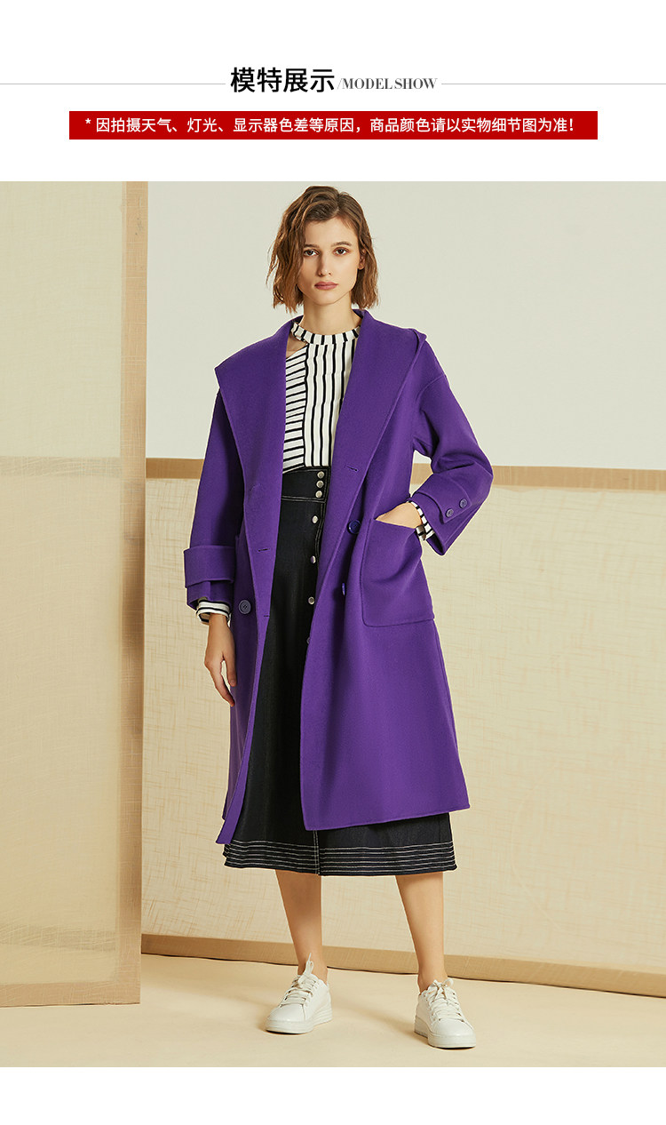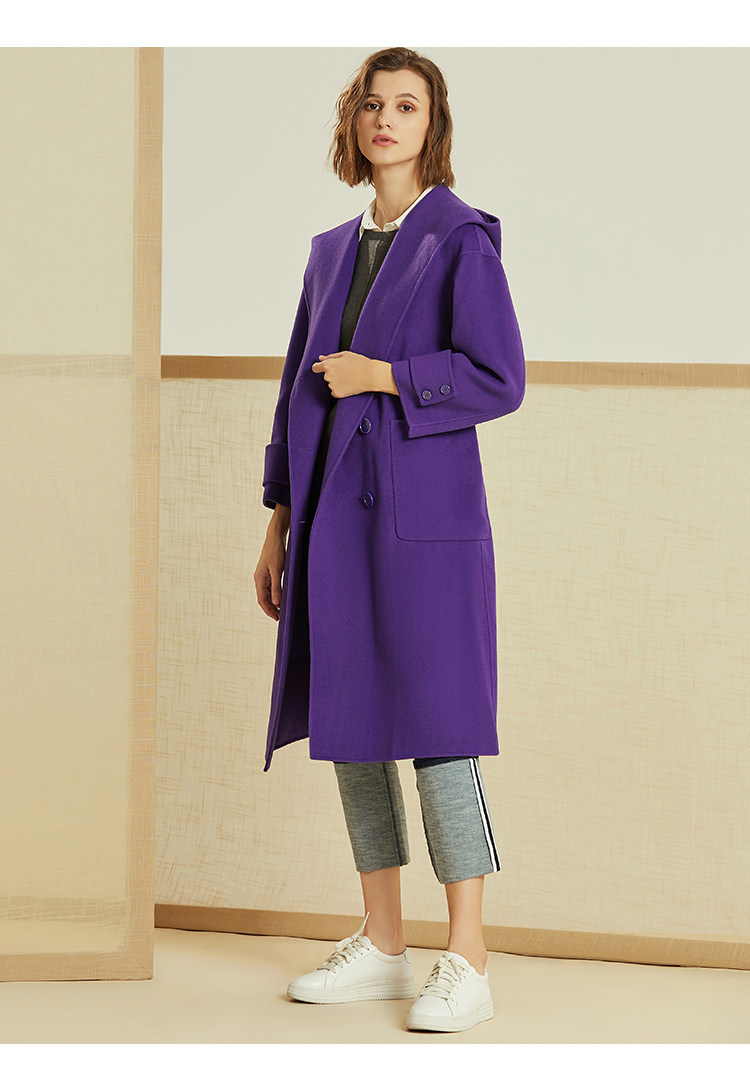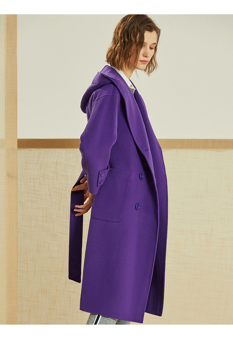 VIMAGE纬漫纪冬季双排扣英伦风连帽羊毛呢大衣中长款女V1214810