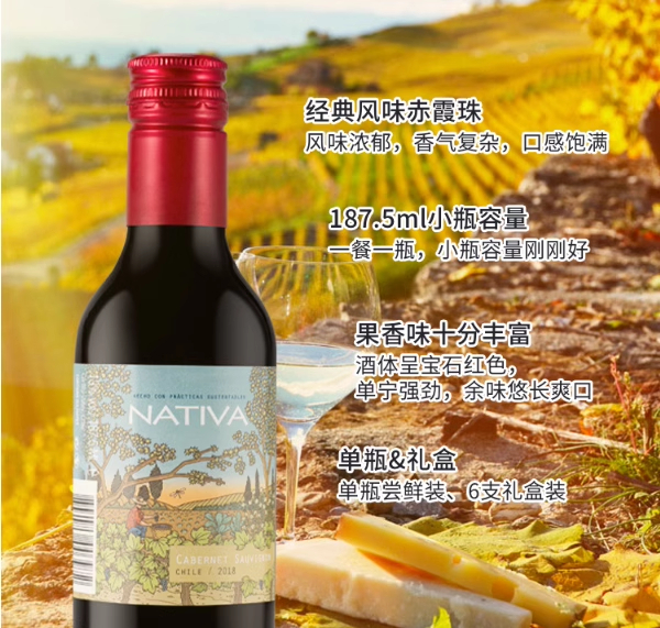 【6瓶装】智利娜缇瓦精选佳美娜干红葡萄酒187.5ml *6