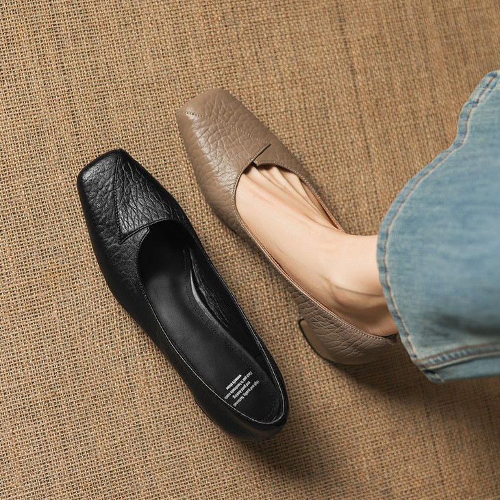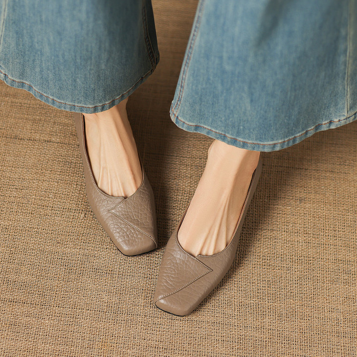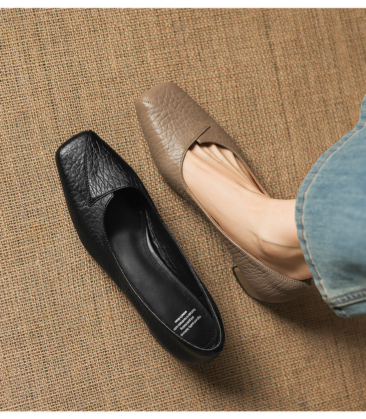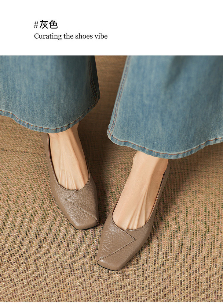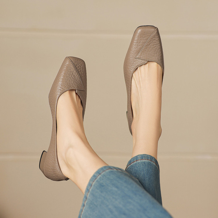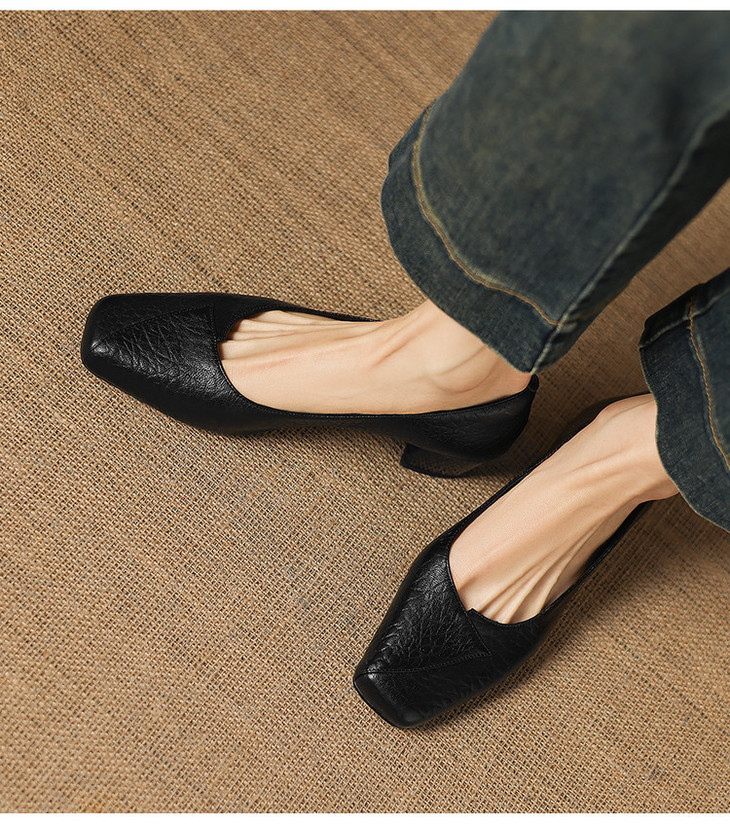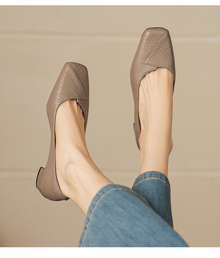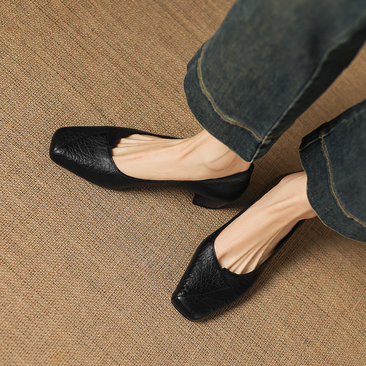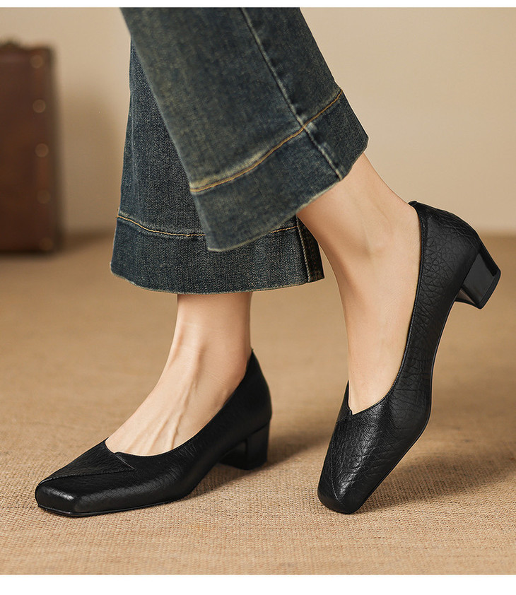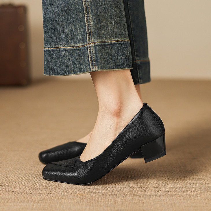 【预售5天】法式复古风方头浅口单鞋女粗跟百搭通勤小皮鞋四季女鞋百搭鞋NGMZR&72-8063