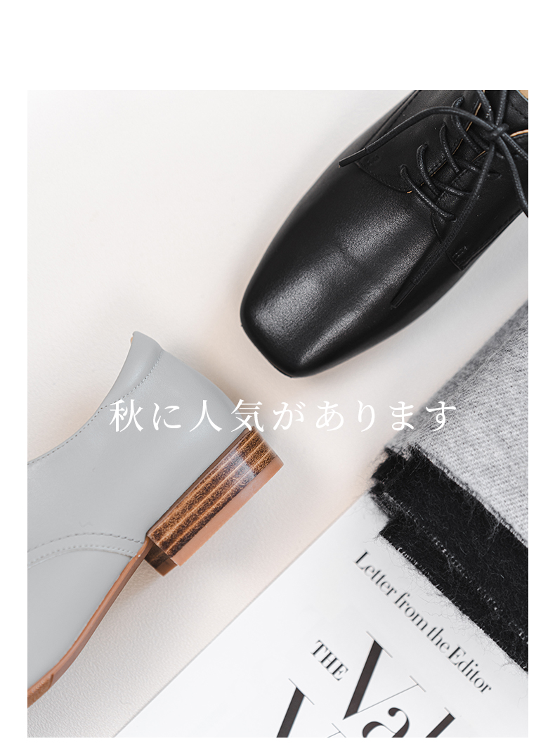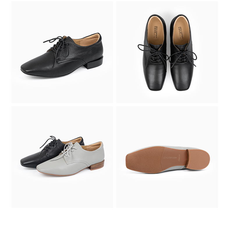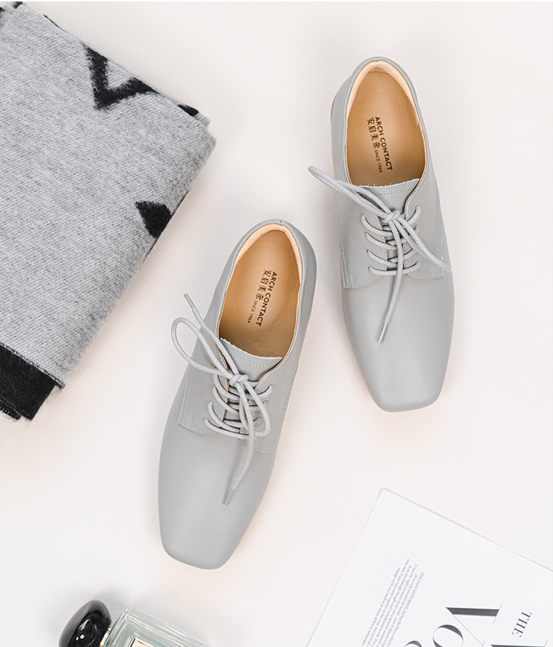 系带小羊皮鞋 | ARCHCONTACT安启美奈 复古学院风方圆头女鞋52841