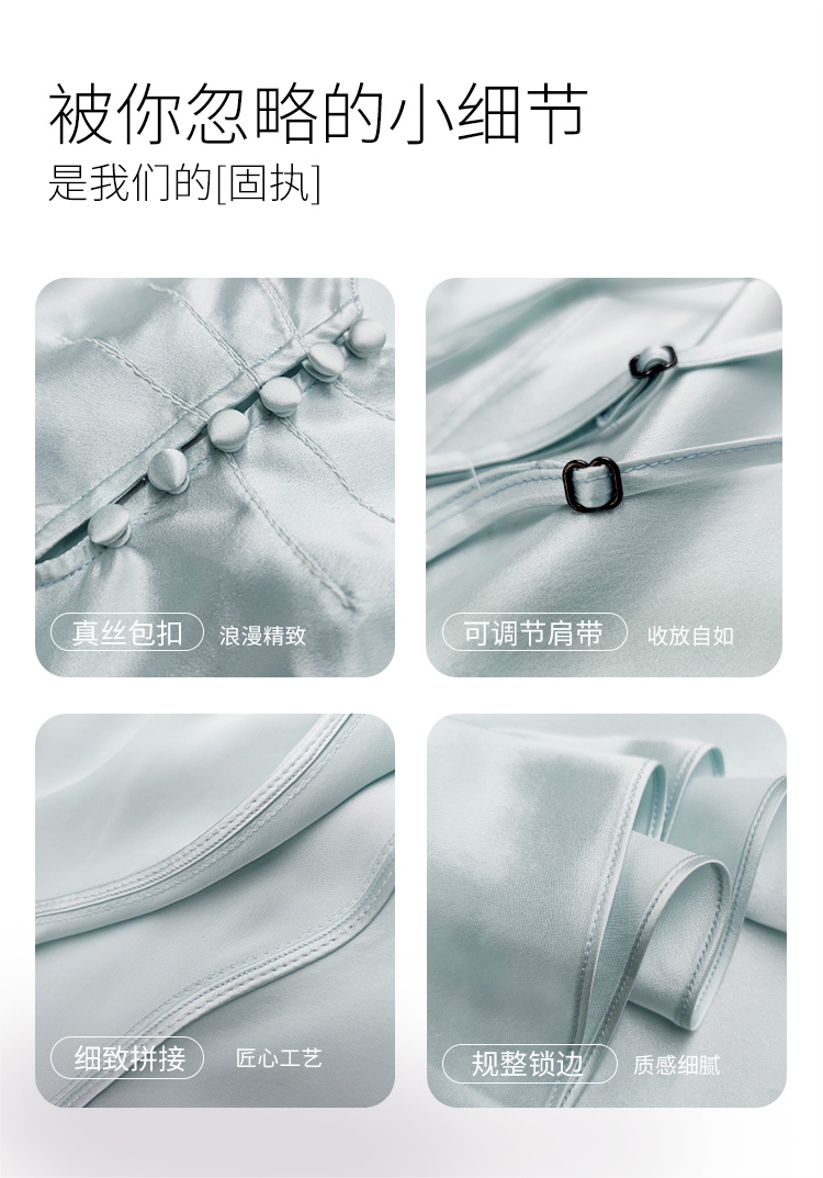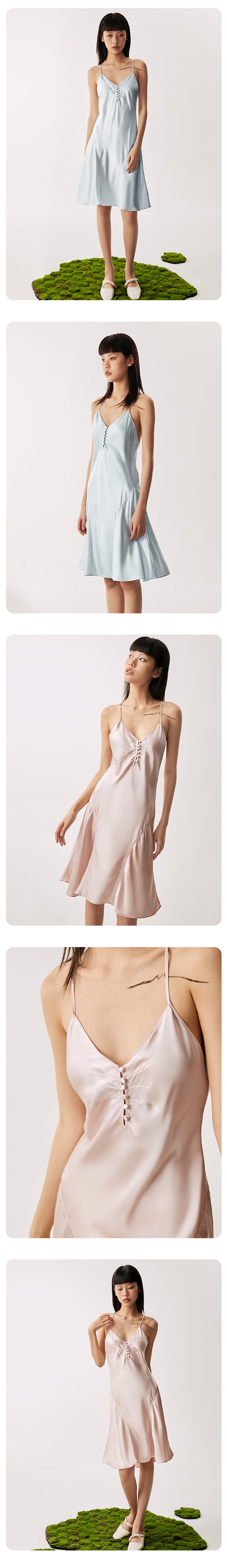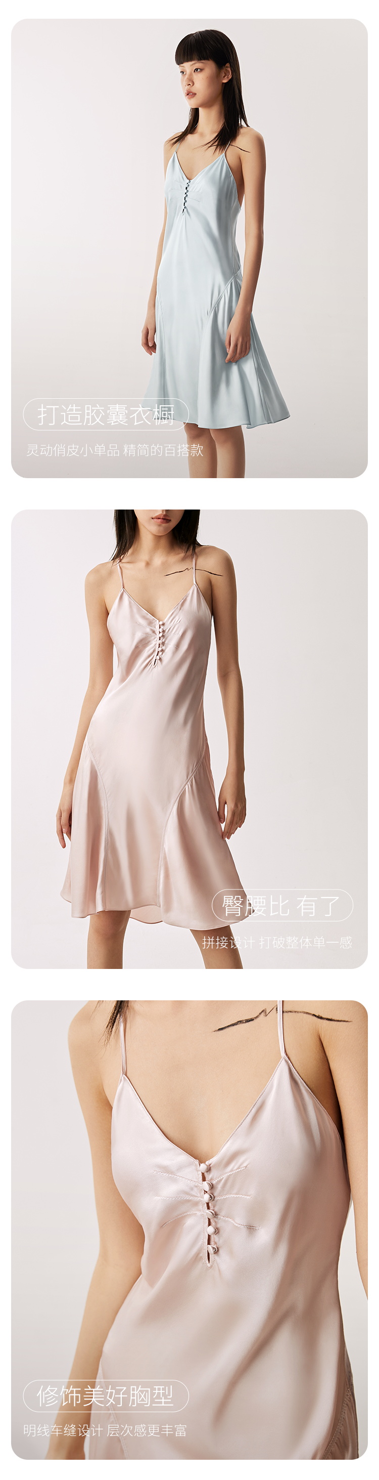SANGLUO桑罗 丝吊带睡裙修身轻法式性感不规则分割下摆100桑蚕丝睡衣
