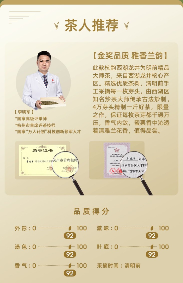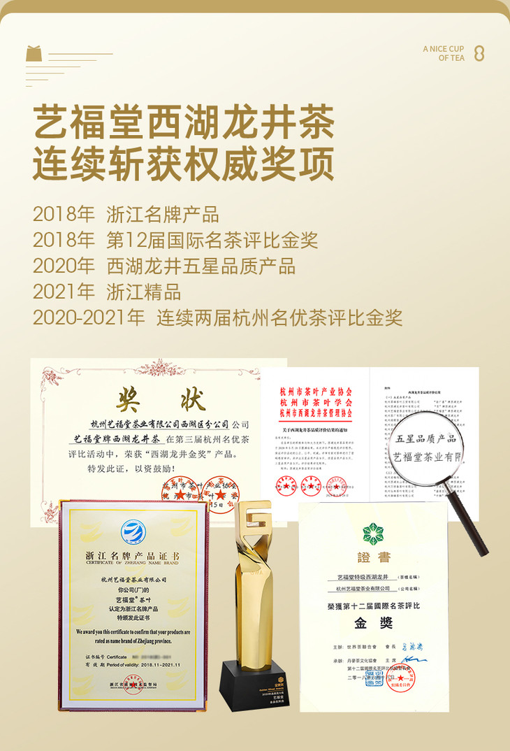 【品牌直发】艺福堂 明前特级西湖龙井茶 杭韵EFU14+ 2023新茶 250g/包