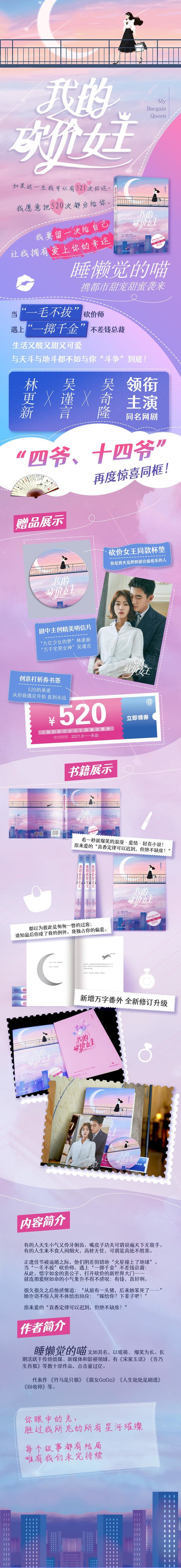 1、林更新、吴谨言、吴奇隆 领衔主演热门电视剧《我的砍价女王》原著小说,四爷、十四爷再度惊喜同框!2、看一秒就爆笑的浪漫·爱情·轻喜小说!暖萌小说代言人睡懒觉的喵超人气经典甜宠作品:当“一毛不拔”砍价师,遇上“身价千万”不差钱总裁——生活又酸又甜又可爱,与天斗与地斗都不如与你“斗争”到底! 3、甜蜜升级。新增万字“婚后鸡毛蒜皮小日子”番外,全新修订升级,值得细细赏读。