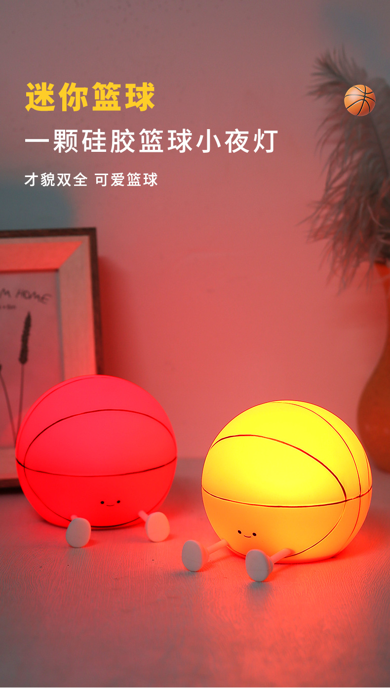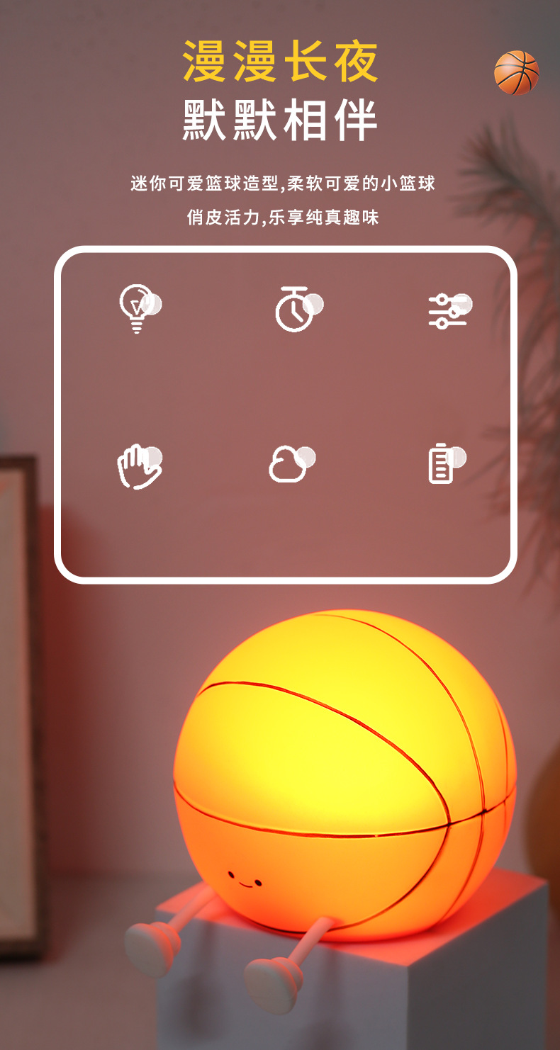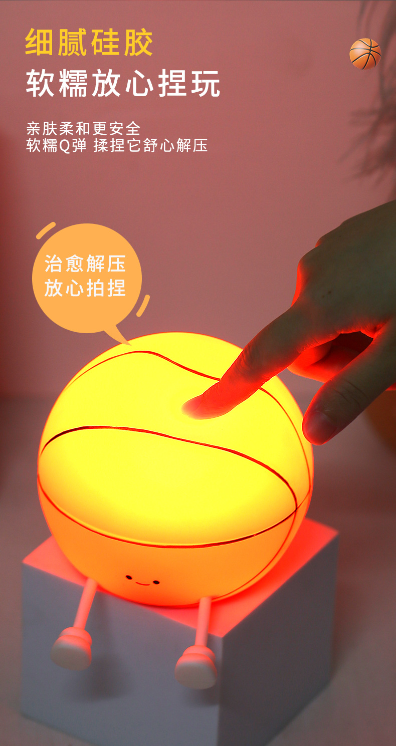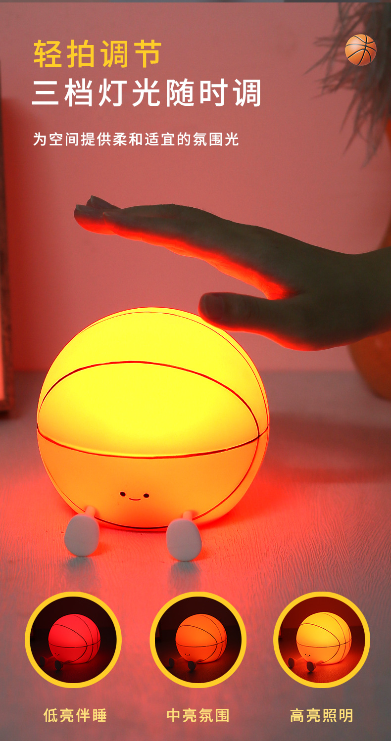 迷你篮球小夜灯USB拍拍定时调光夜灯儿童卧室充电护眼硅胶灯