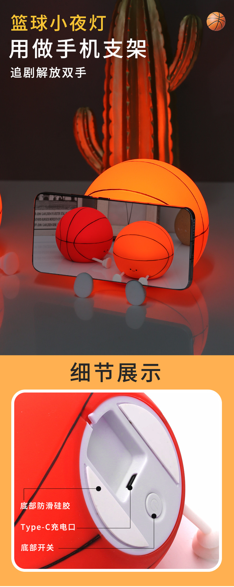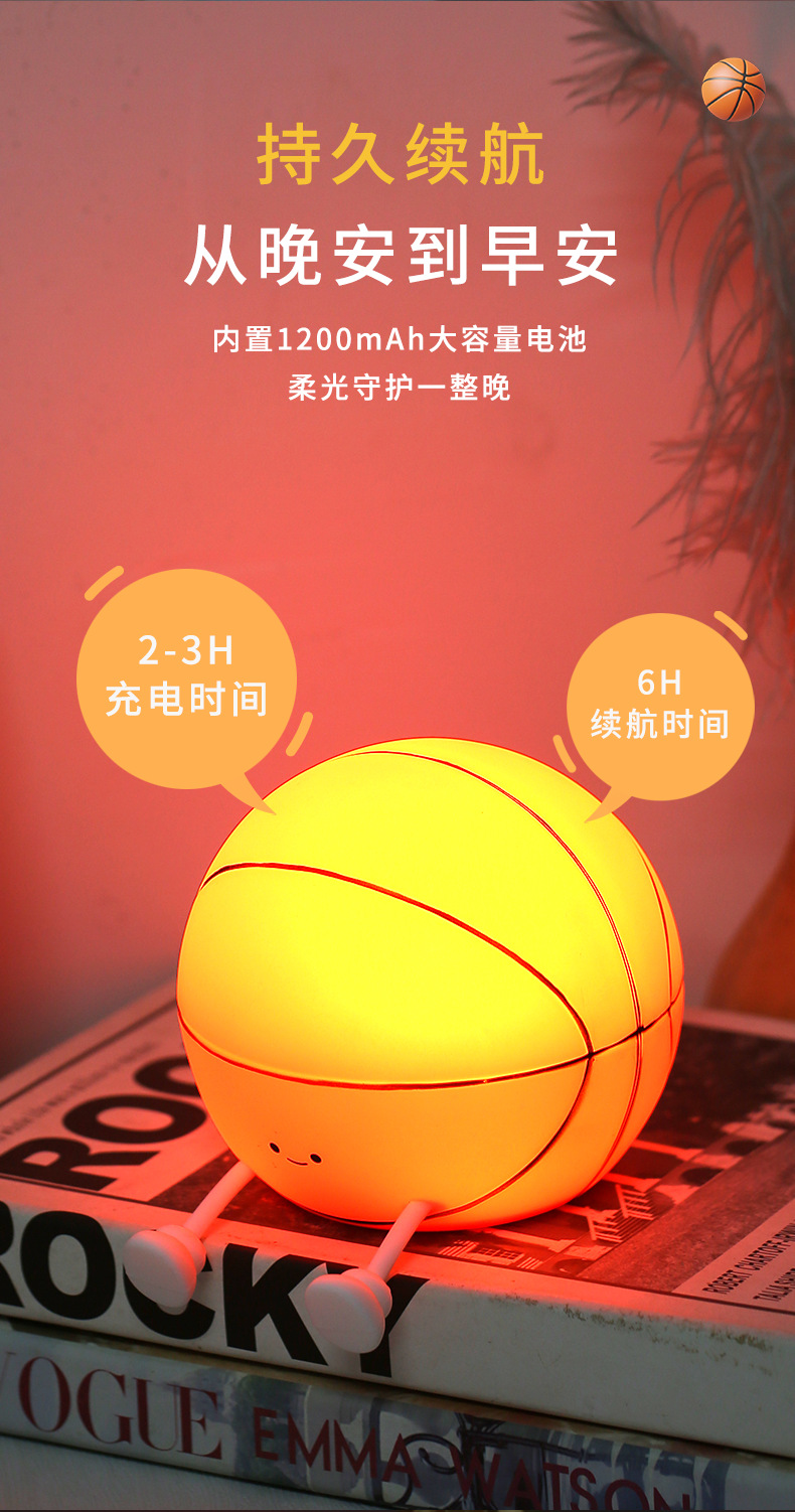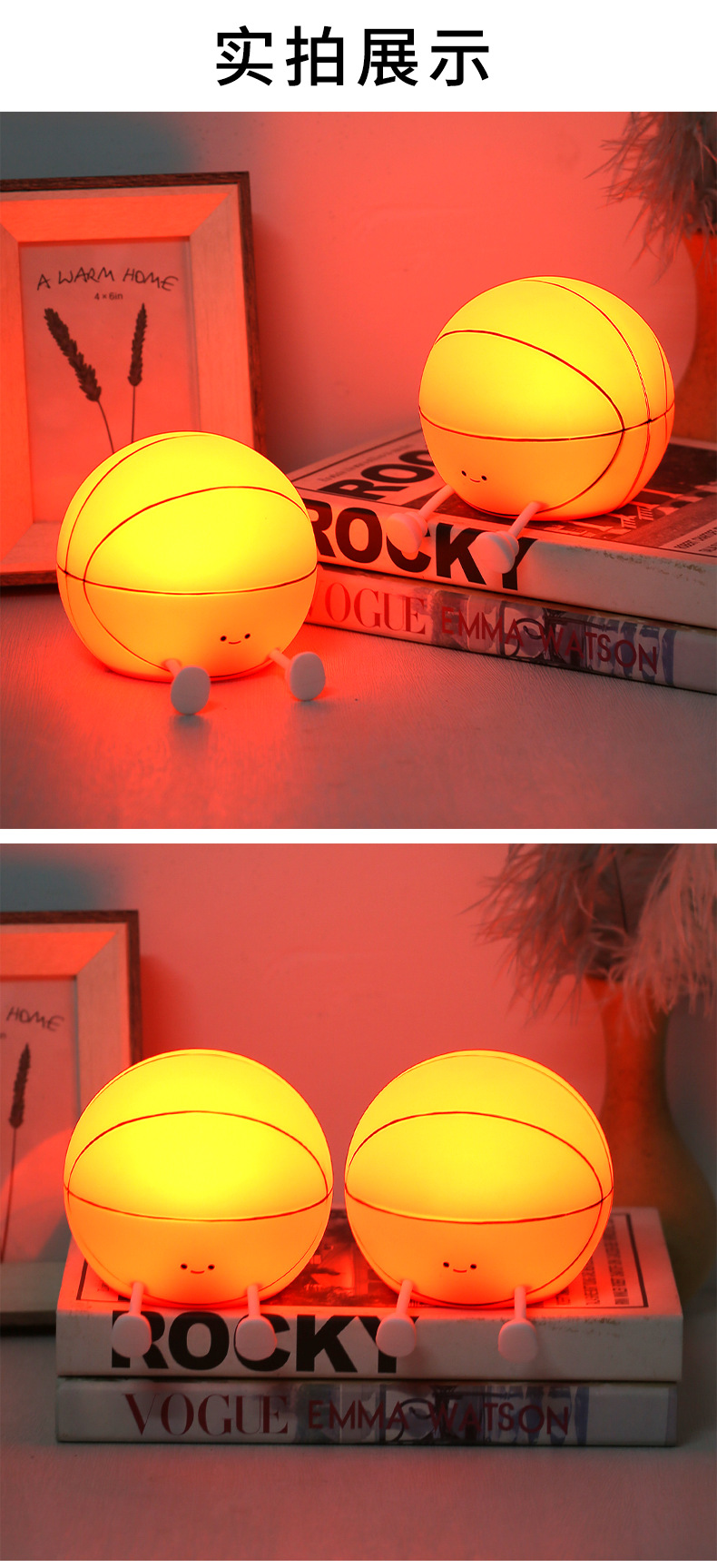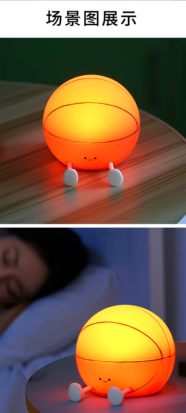 迷你篮球小夜灯USB拍拍定时调光夜灯儿童卧室充电护眼硅胶灯