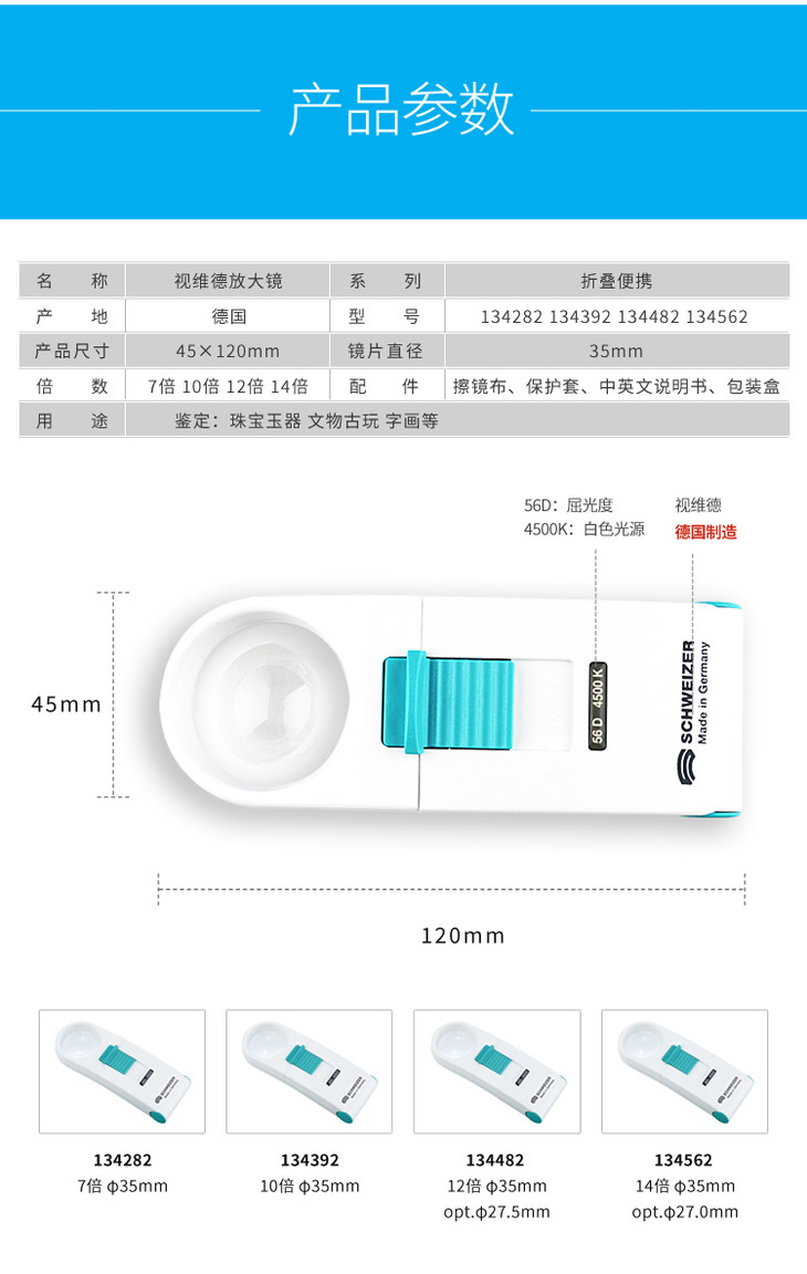 德国视维德古玩鉴定LED带灯放大镜珠宝玉器字画专用鉴定工具进口