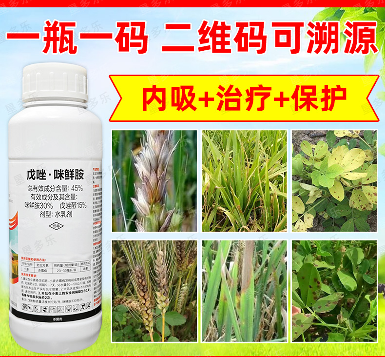 45%戊唑咪鲜胺花生水稻小麦赤霉病稻瘟病叶斑病农用老品牌杀菌剂