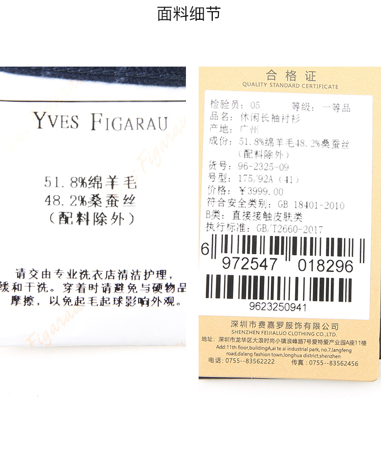 YvesFigarau伊夫·费嘉罗休闲长袖衬衫962325