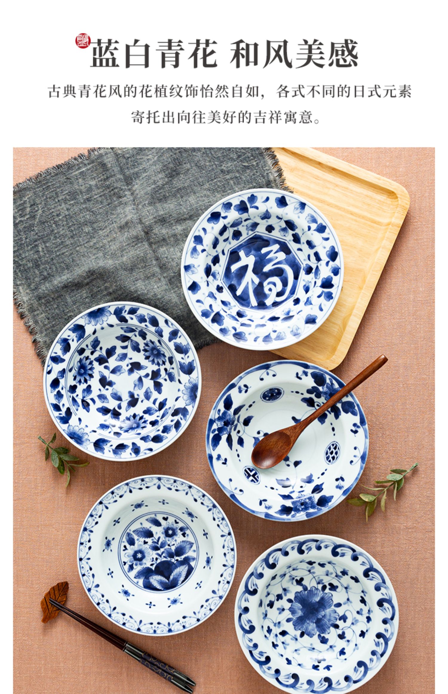 蓝凛堂浓福唐草8.3英寸汤盘(FDK21RP)
