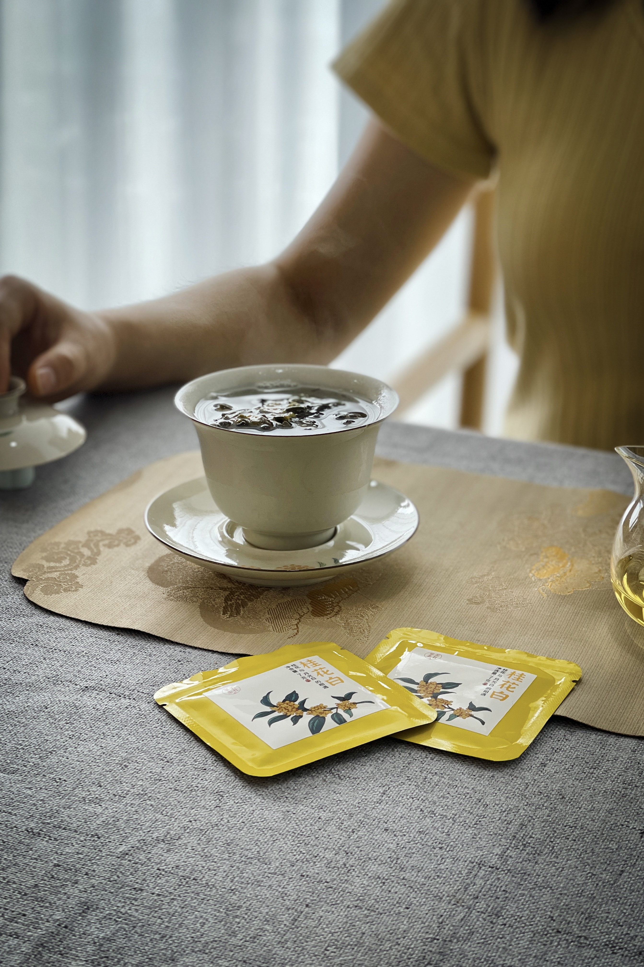 因单片密封包装,香气牢牢封存。桂花可以储存很多年,香味不散,与茶味交融。