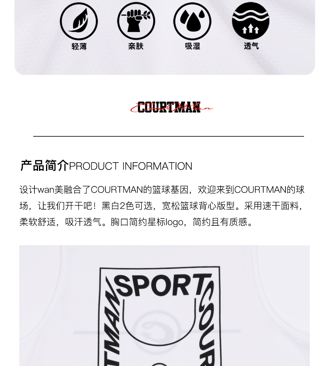 COURTMAN野球帝美式投篮背心跑步训练男女同款篮球坎肩球场系列