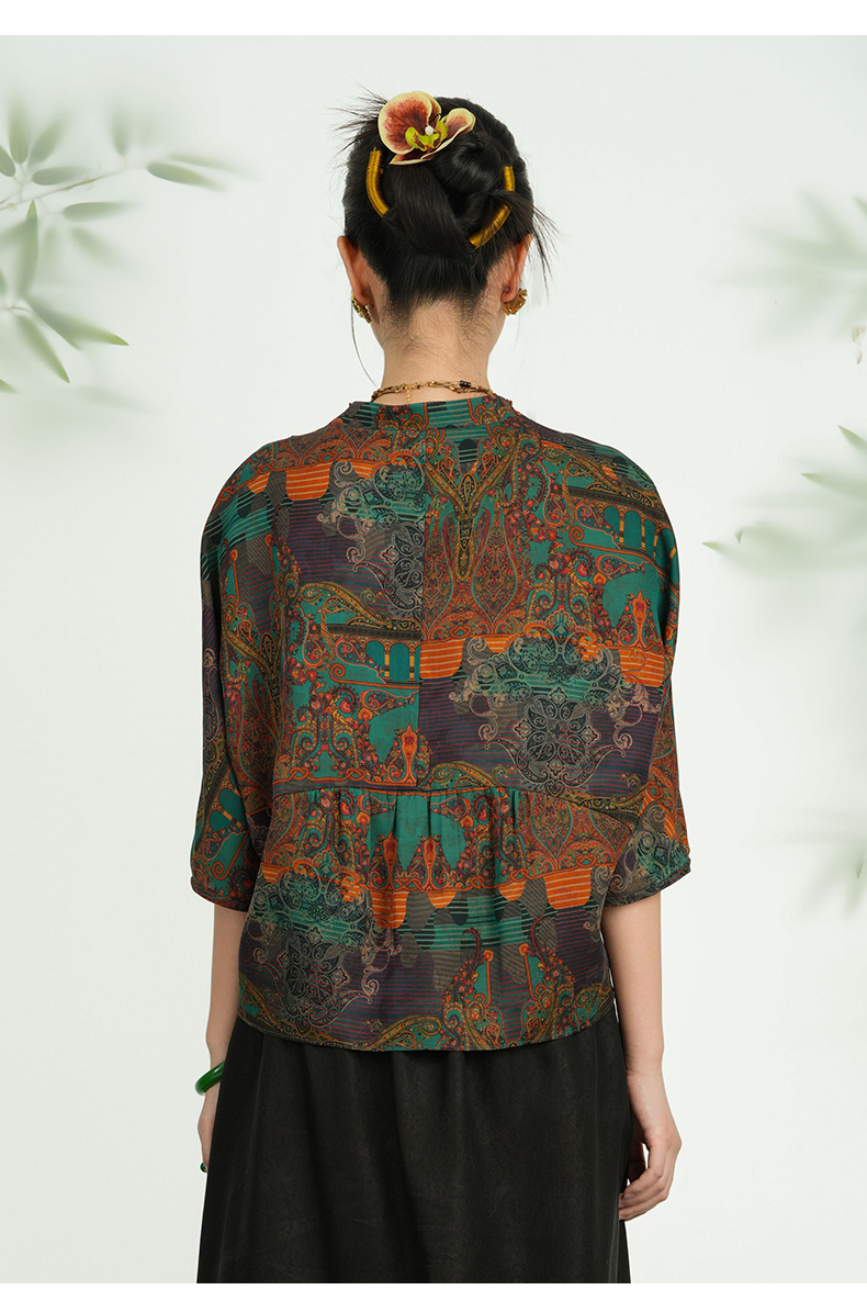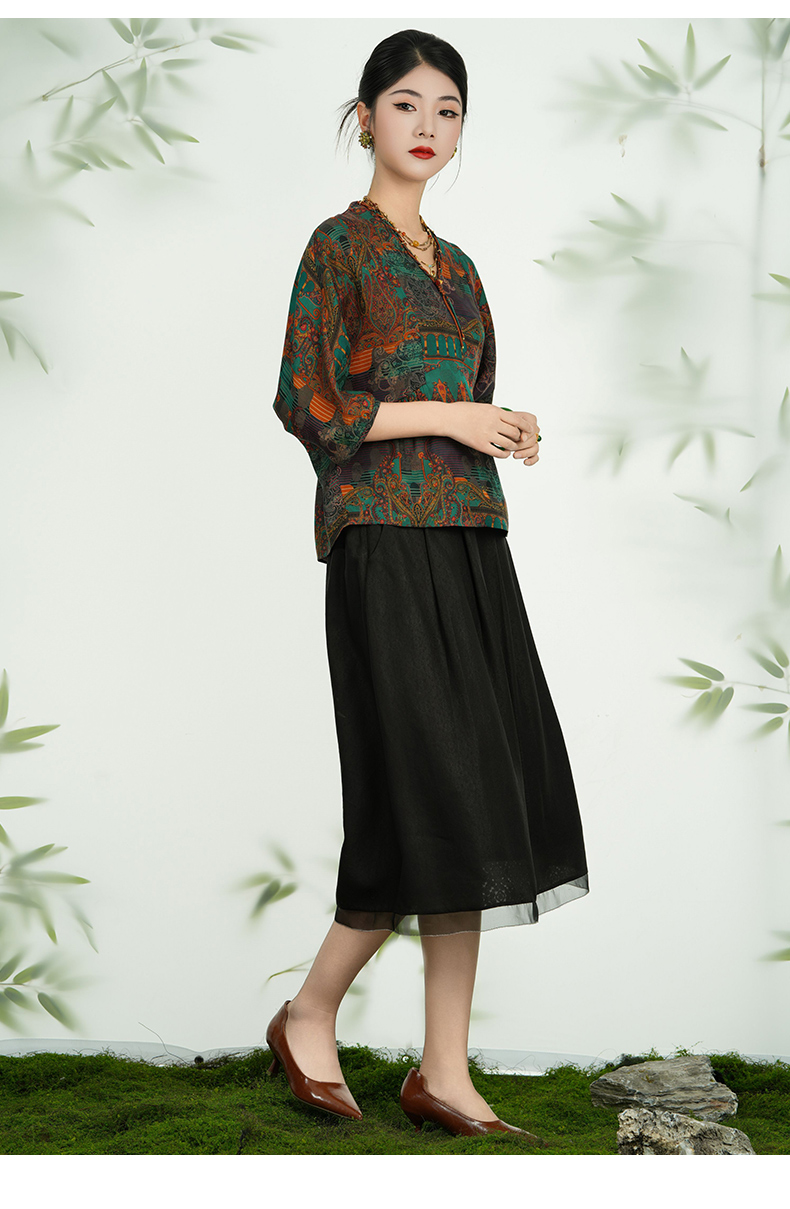 【金陵夜宴图】【香云纱】乔万尼新品100%真丝宽松V领衬衫上衣ED2C451