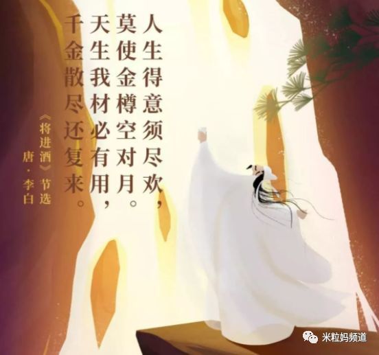 米粒妈觉得,古诗词对人影响最大的就是其中的精神力量。无论是从小就听米粒姥姥谆谆教诲的“谁知盘中餐,粒粒皆辛苦”,“一寸光阴一寸金,寸金难买寸光阴”;