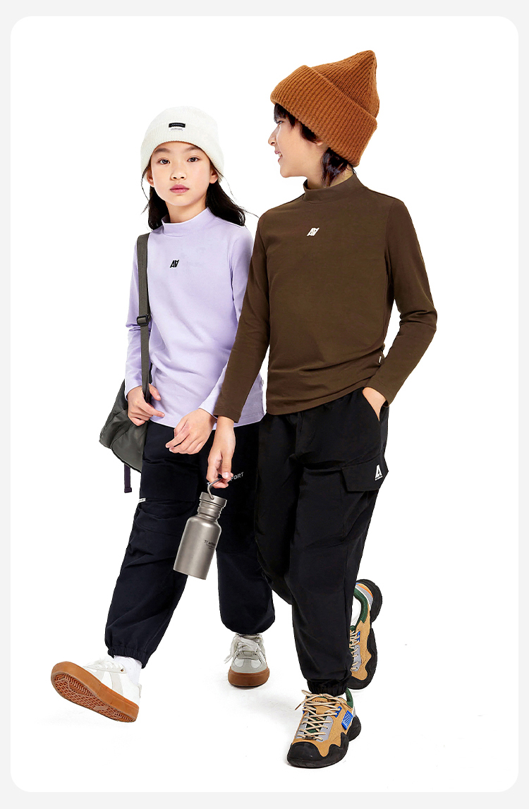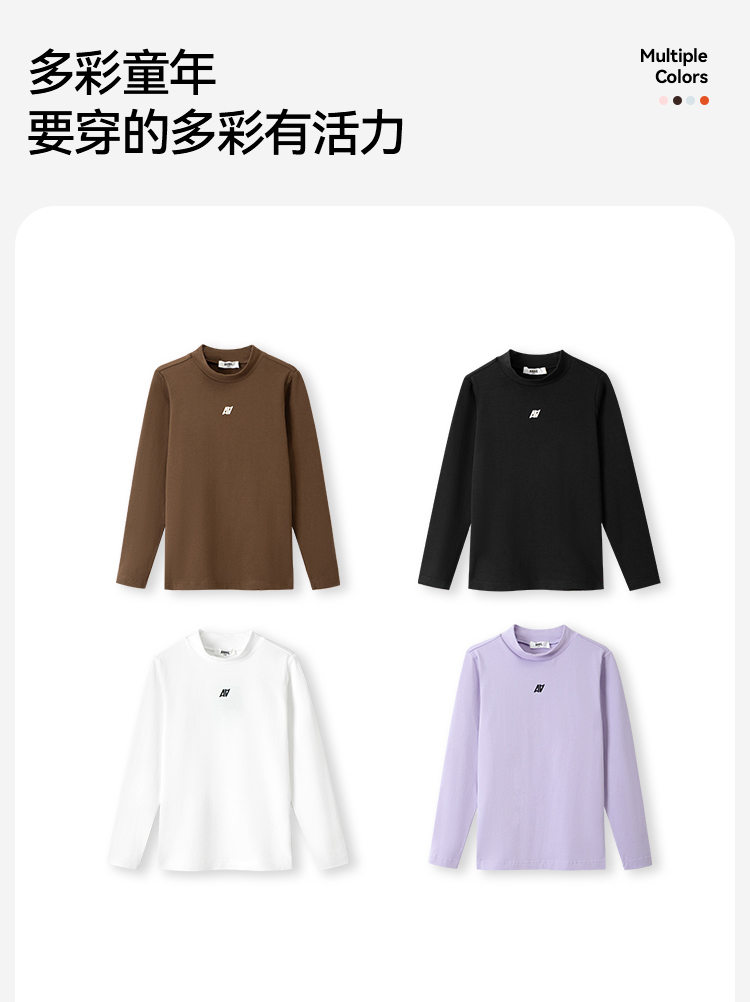 【5A级抗菌】男女童百搭亲子纯棉中领净色打底衫新款安奈儿童装EM431529