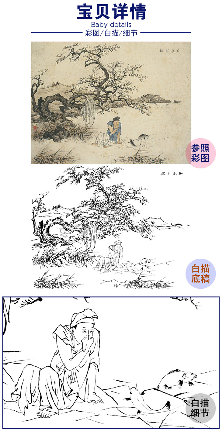白描底稿-陈少梅二十四孝图-24孝-卧冰求鲤-CT18