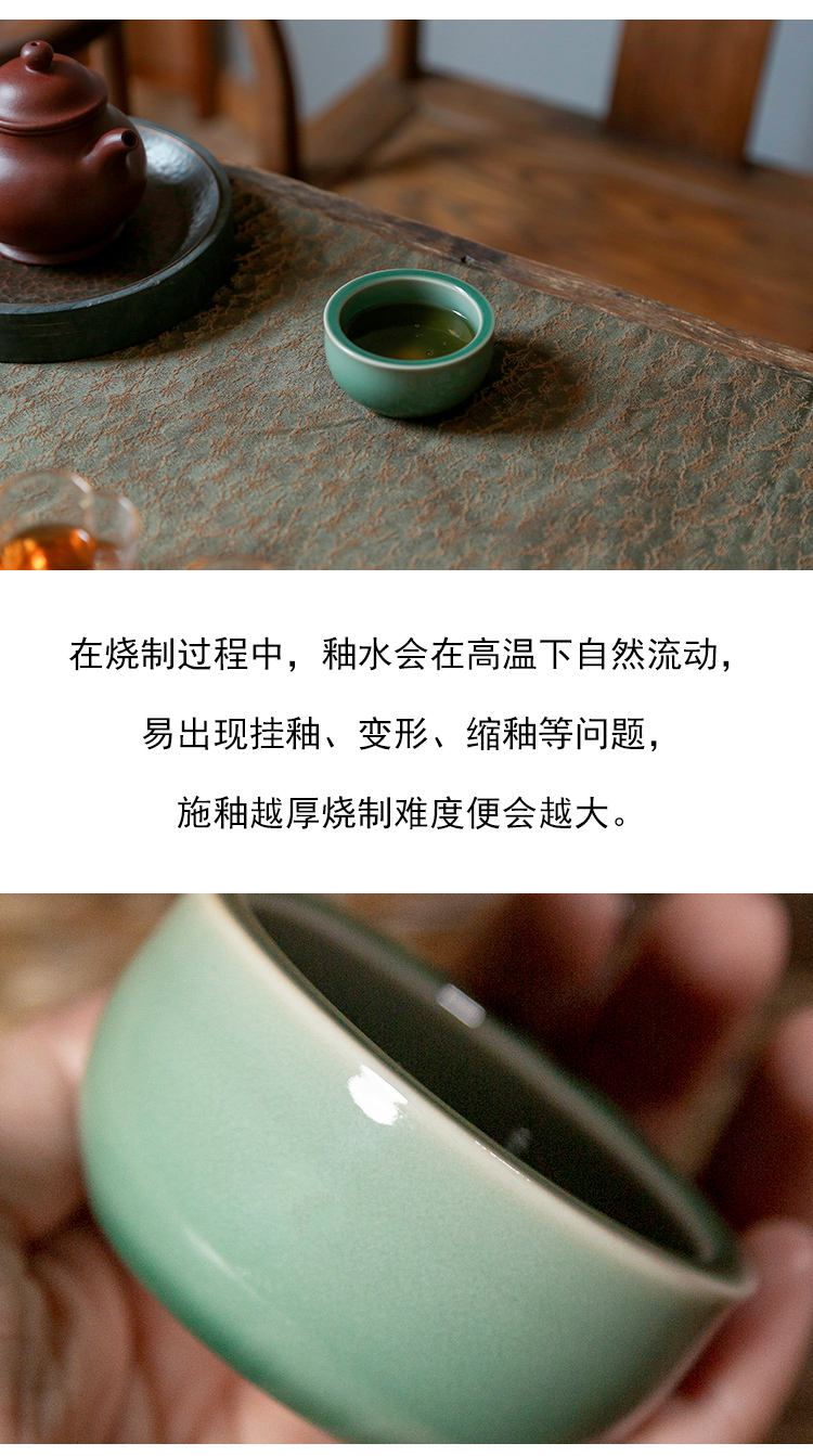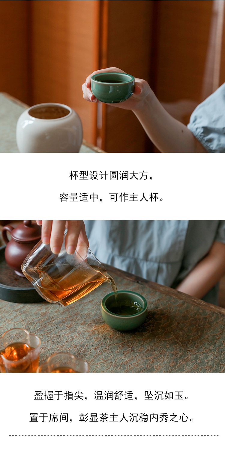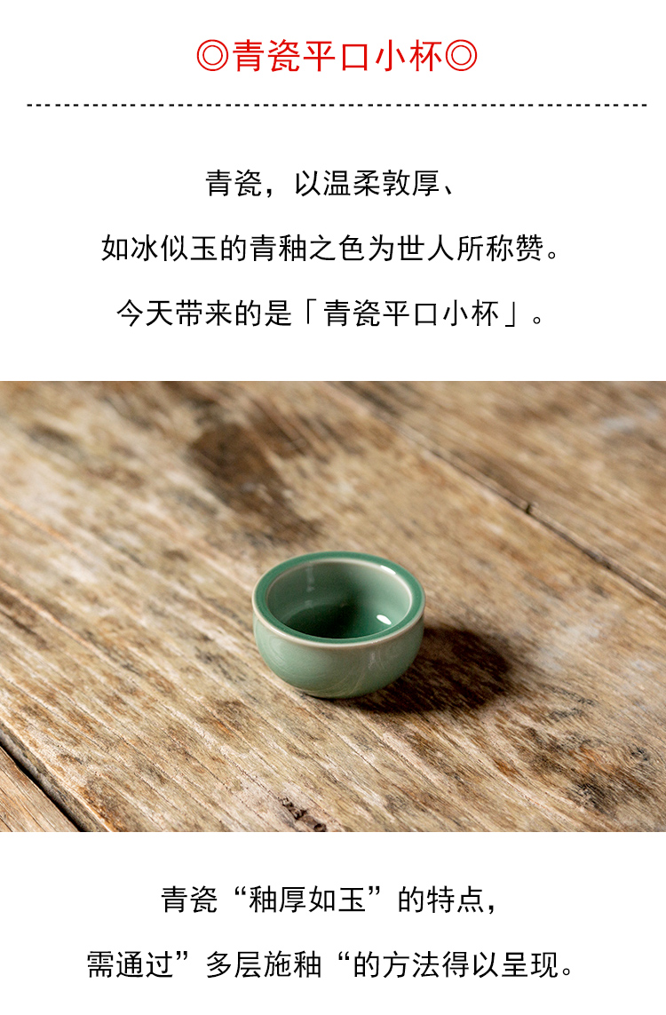 茶香记 青瓷平口小杯50ml莹润厚釉青翠动人陶瓷主人杯茶杯品茗杯