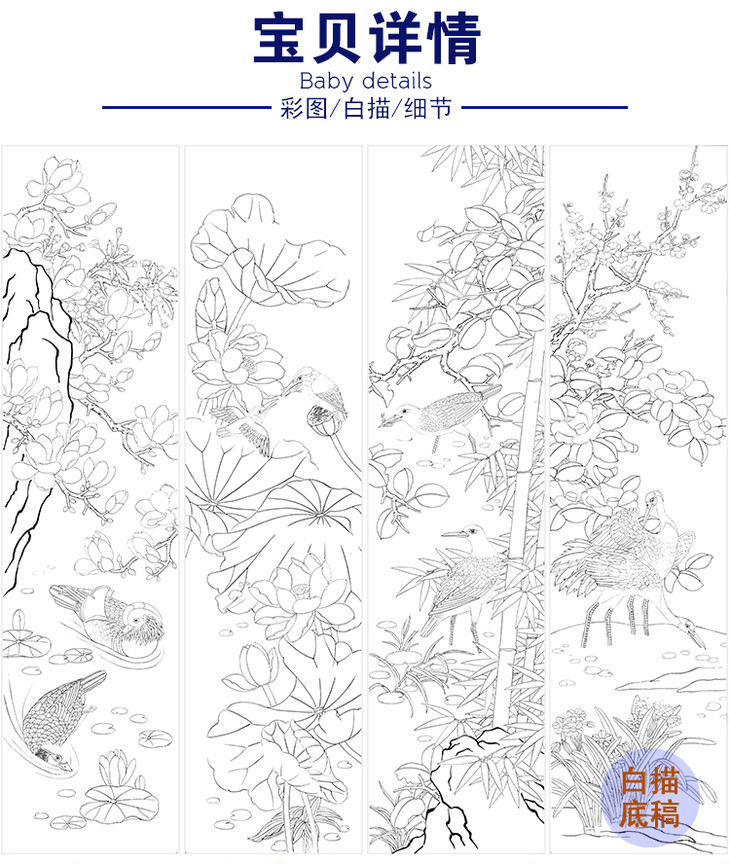 工笔花鸟白描底稿-花鸟四条屏-TP14