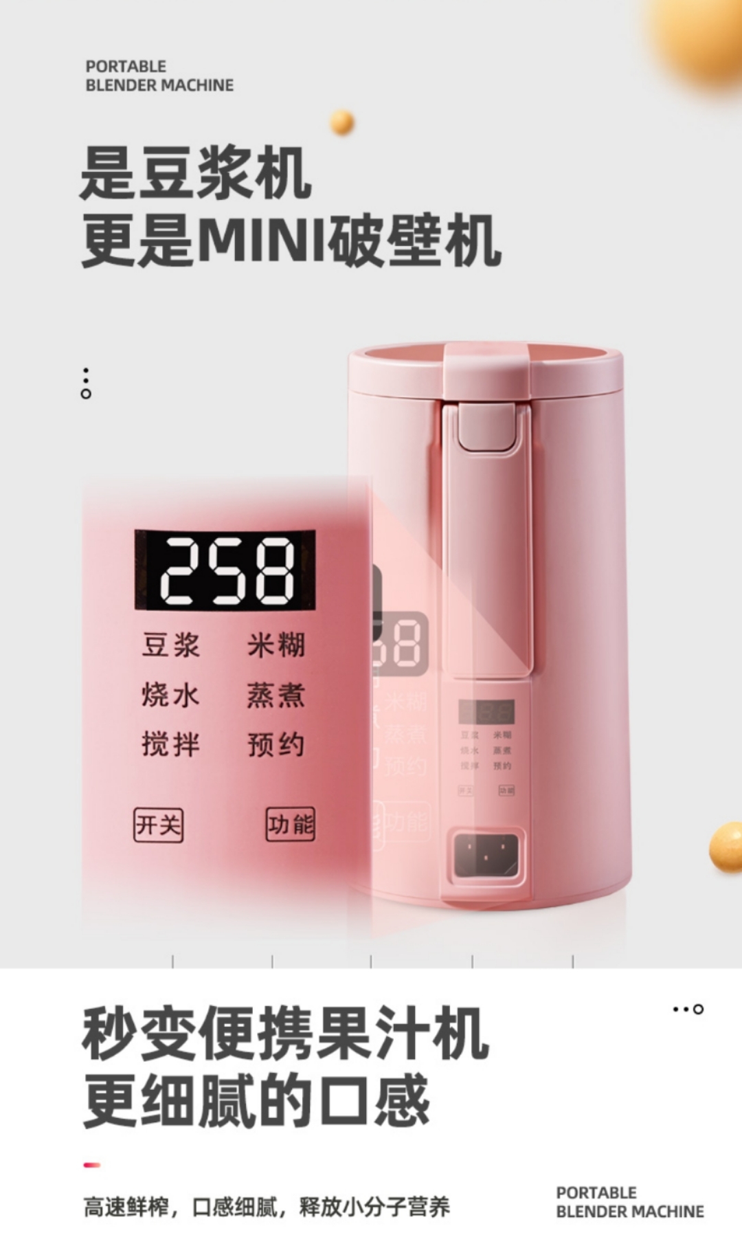 益可迷你破壁豆浆机干豆可打免滤直饮一键自动清洗6大功能
